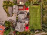 Set within a peaceful and private cul-de-sac, 5 Woodside Lane is a distinguished alpine estate that blends timeless elegance with contemporary refinement. Nestled on an expansive double lot of nearly 19,000 square feet, this property offers rare water and parkland frontage. The four-bedroom, four-and-a-half-bathroom home unfolds with a sense of considered grandeur. At its heart, the great room features a soaring ceiling with timber accents and a commanding stone fireplace. Expansive windows frame panoramic views of the surrounding peaks, forest, and sky. Designed for both gracious entertaining and quiet retreat, the home’s layout includes multiple gathering spaces and a thoughtfully appointed kitchen. The private bedroom suites provide comfort and seclusion, while the home’s lower level offers additional room to unwind or host extended family and guests. Outdoors, a private tennis court and sun-drenched backyard create a lifestyle rarely found in the Rockies.