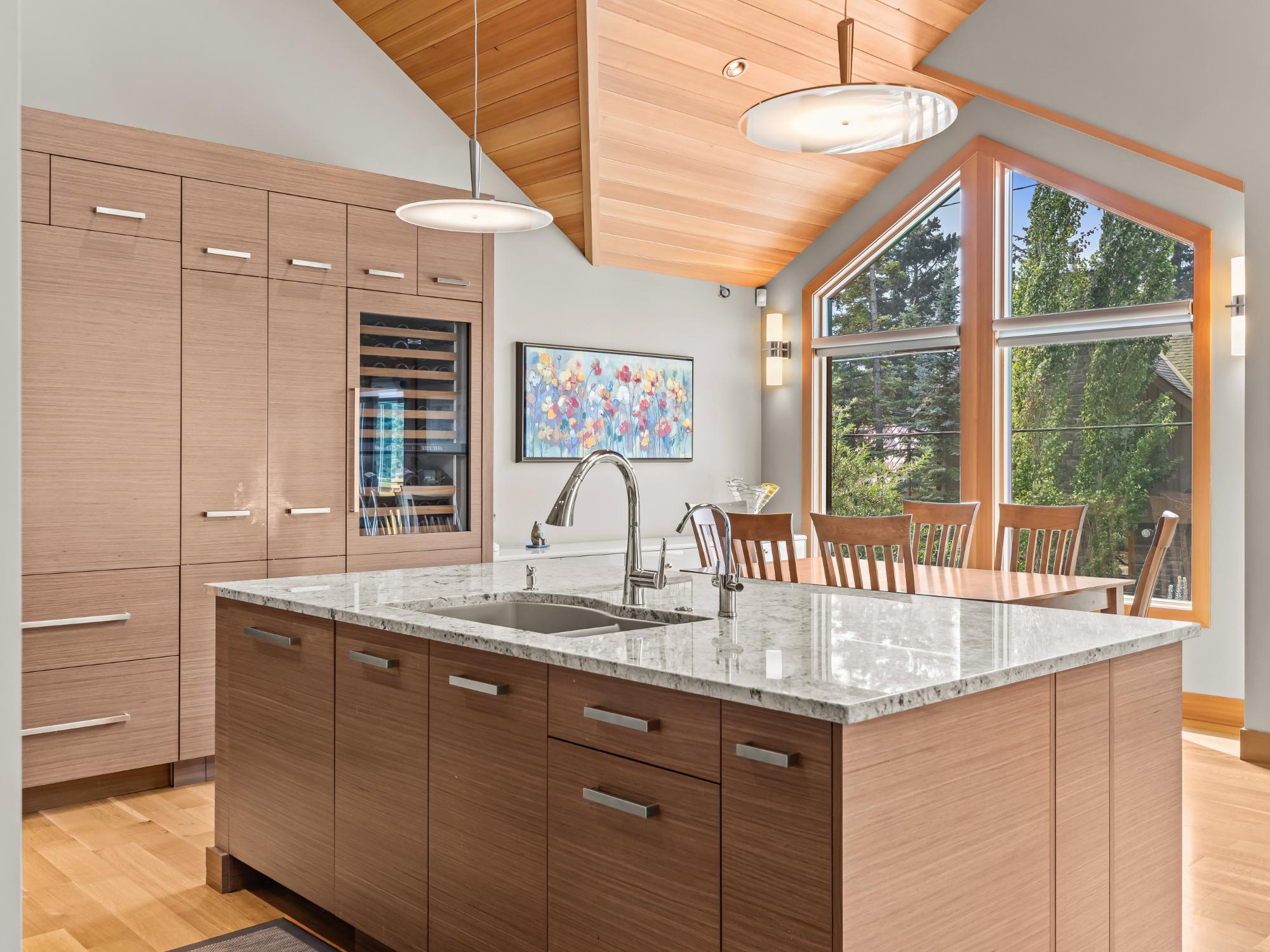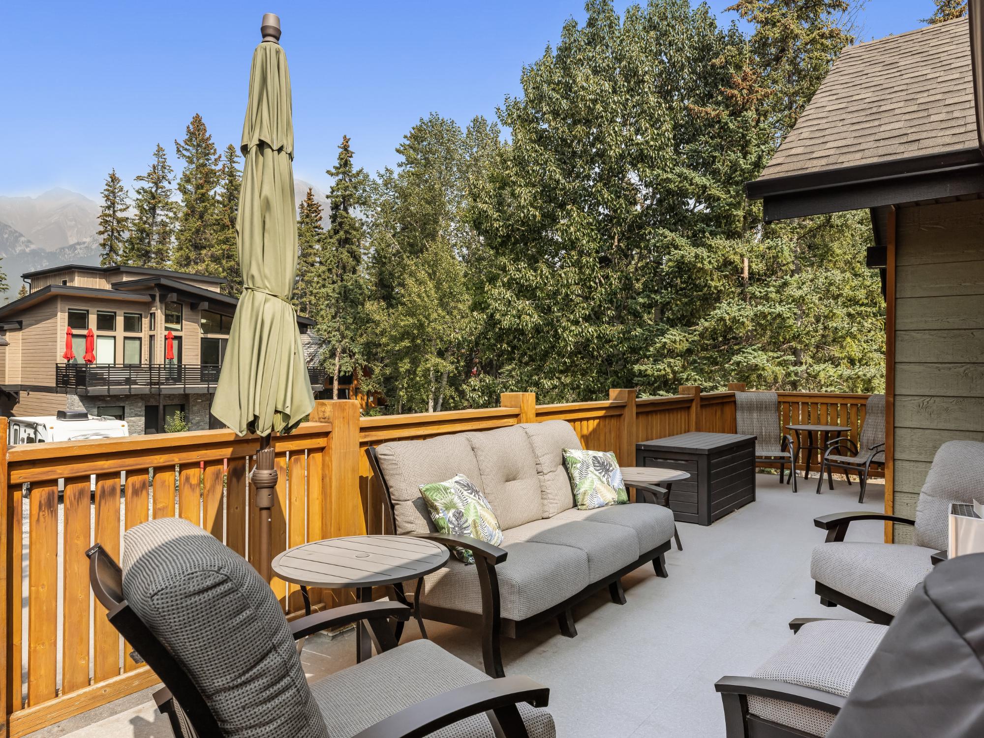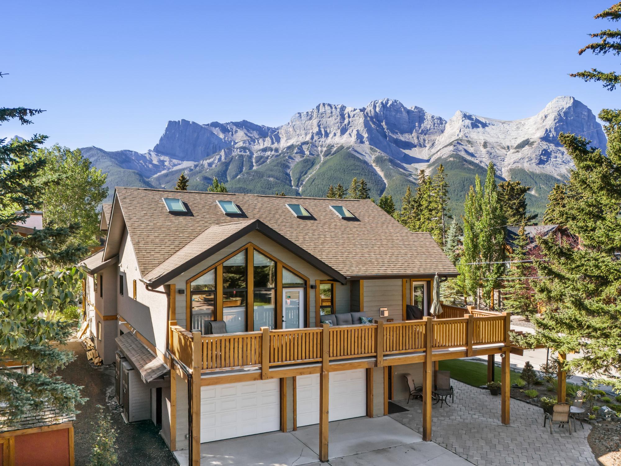 Perfectly positioned in South Canmore, this contemporary 4-bedroom, 4-bath home combines timeless craftsmanship with modern mountain design in a location that can’t be beat. White oak floors, open-riser solid oak stairs, and soaring fir vaulted ceilings set a warm and sophisticated tone. The custom walnut kitchen shines with a granite island, Sub-Zero and Wolf appliances, including wine fridge and clever details like an Everhot tap. Floor-to-ceiling vaulted windows and a concrete fireplace anchor the great room, while an expansive deck invites you to take in the mountain views. Two spacious primary retreats feature spa-like ensuites with steam showers, heated floors, and Toto bidet toilets, with the upper suite adding a soaker tub. A cozy family room, bright office, well-appointed laundry, 3rd and 4th bedrooms and baths, plus a heated double garage complete the home. Just steps to trails, Main Street and Spring Creek, this is an incredible property in the ultimate location!