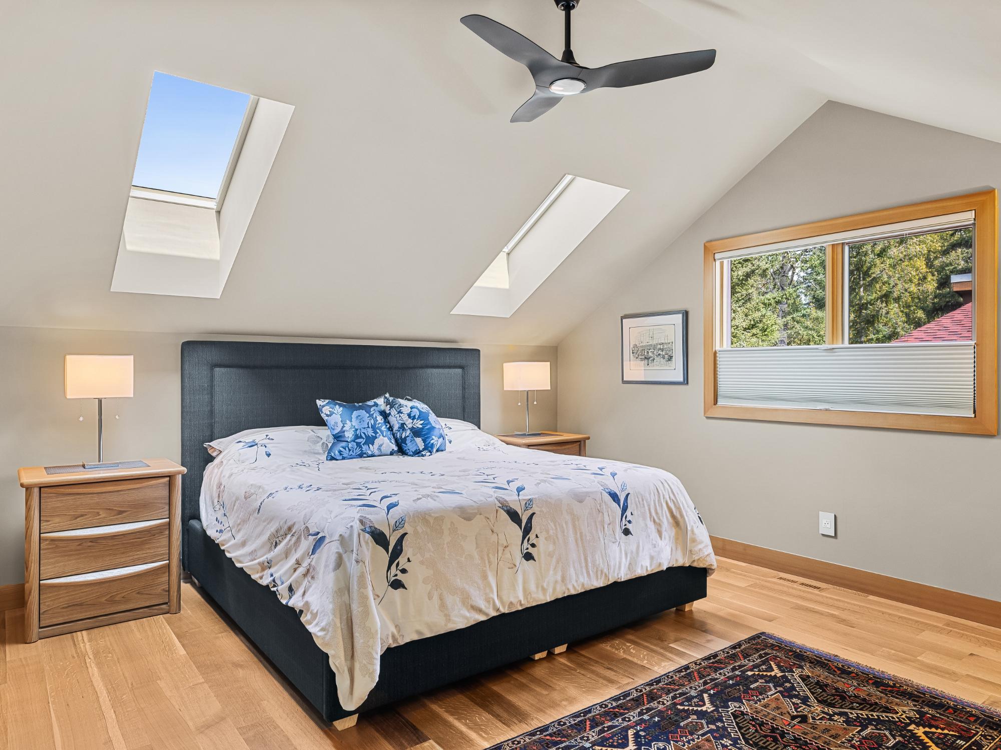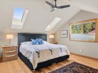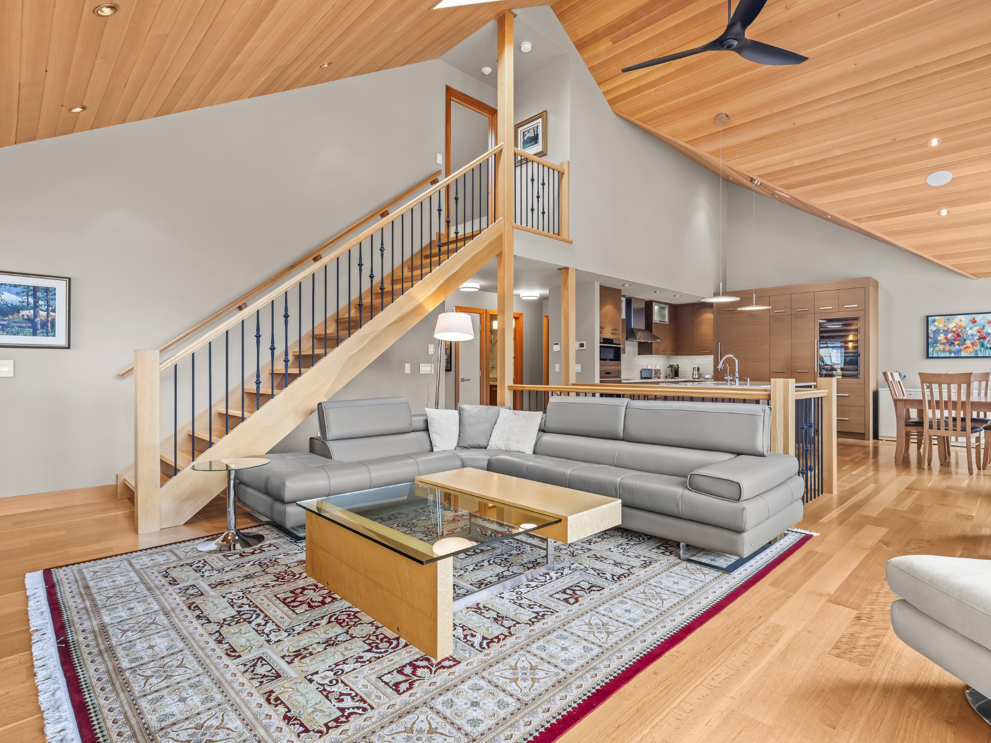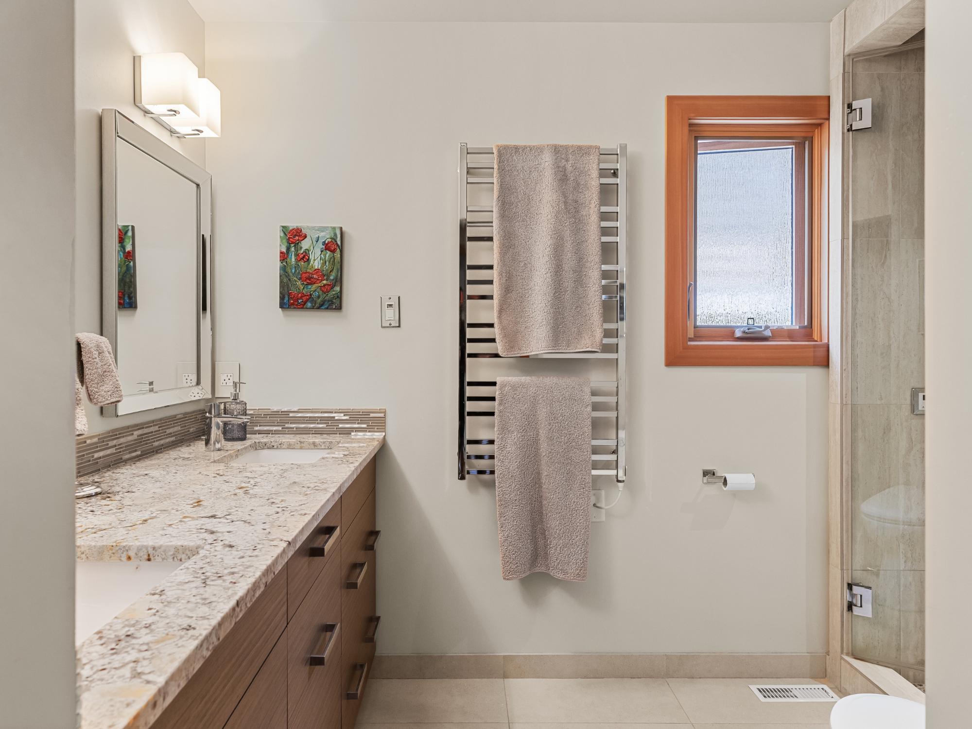 Perfectly positioned in South Canmore, this contemporary 4-bedroom, 4-bath home combines timeless craftsmanship with modern mountain design in a location that can’t be beat. White oak floors, open-riser solid oak stairs, and soaring fir vaulted ceilings set a warm and sophisticated tone. The custom walnut kitchen shines with a granite island, Sub-Zero and Wolf appliances, including wine fridge and clever details like an Everhot tap. Floor-to-ceiling vaulted windows and a concrete fireplace anchor the great room, while an expansive deck invites you to take in the mountain views. Two spacious primary retreats feature spa-like ensuites with steam showers, heated floors, and Toto bidet toilets, with the upper suite adding a soaker tub. A cozy family room, bright office, well-appointed laundry, 3rd and 4th bedrooms and baths, plus a heated double garage complete the home. Just steps to trails, Main Street and Spring Creek, this is an incredible property in the ultimate location!