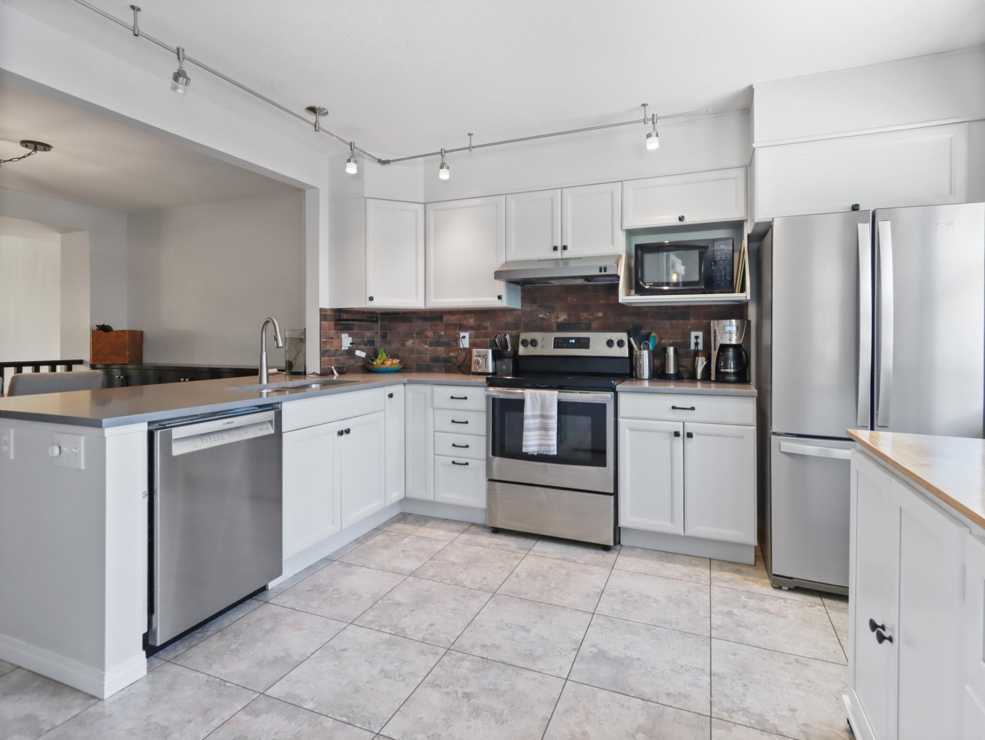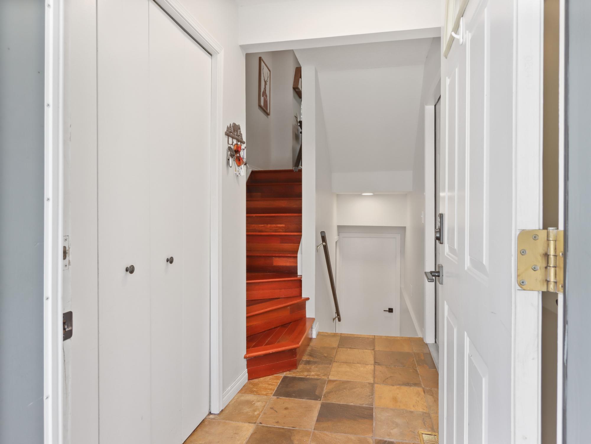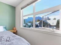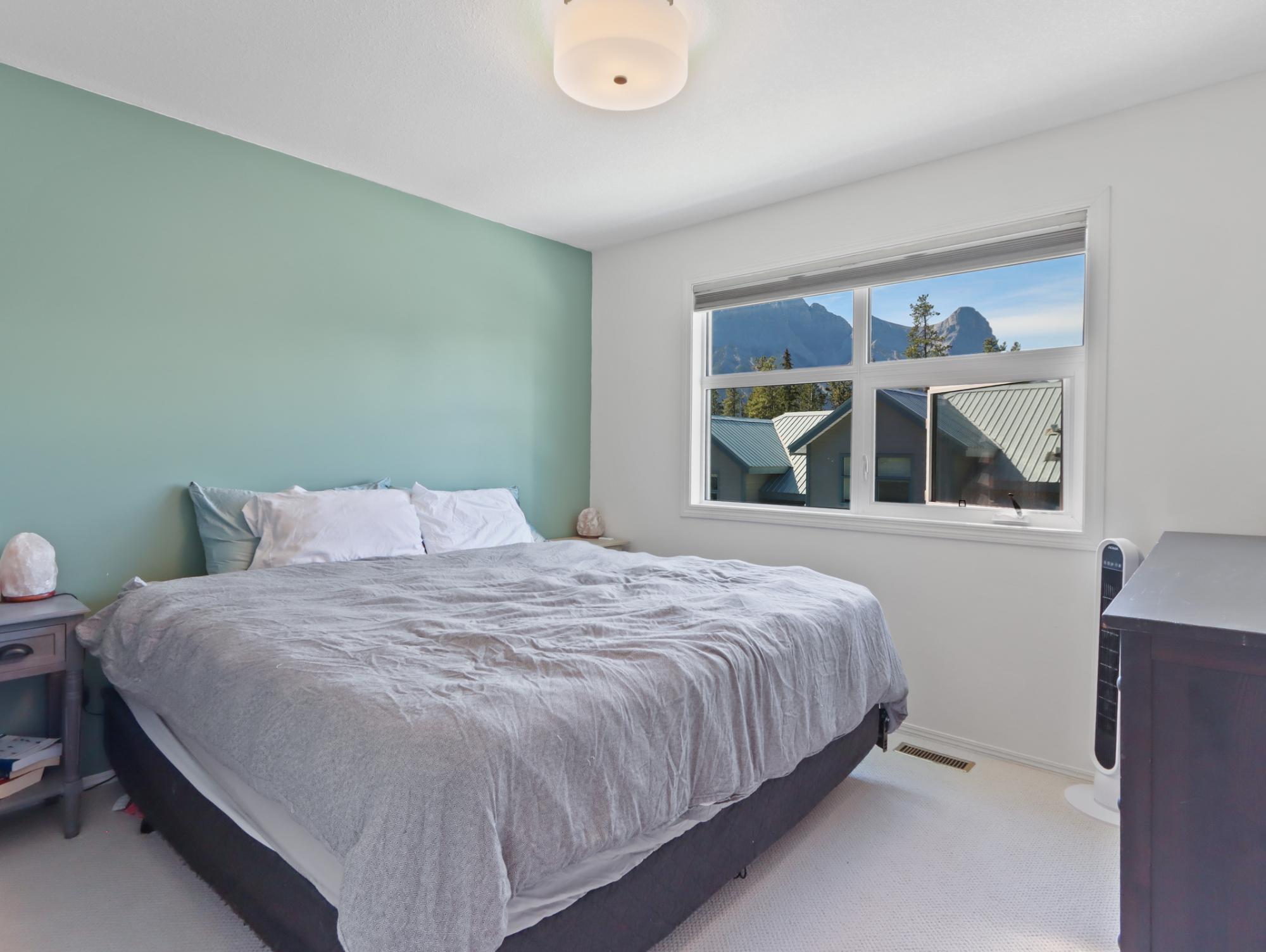 This lovely 1,535 sqft three bedroom, two and a half bath townhome in the desirable Benchlands area offers a thoughtful split-level design with space for family and guests to spread out. The welcoming living room features hardwood floors, a cozy gas fireplace, and access to a private deck with forest reserve views. A half flight up, the generous kitchen boasts stainless appliances, stone counters, eating bar, and direct access to a south-facing BBQ deck. The adjoining dining area overlooks the living room, enhancing the bright, open flow. Upstairs, both bedrooms include private ensuites; the primary offers a large walk-in closet. The lower level provides a versatile flex room or third bedroom with oversized windows, plus a separate laundry. Added features include a half bath on the main level, central vacuum, and a single-car insulated garage offering secure parking, storage, or workspace—an inviting mountain retreat near trails, school, and downtown.