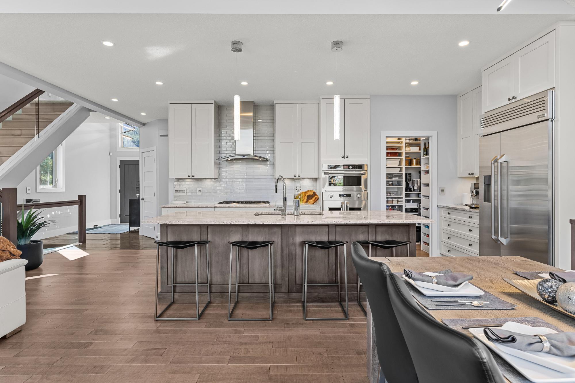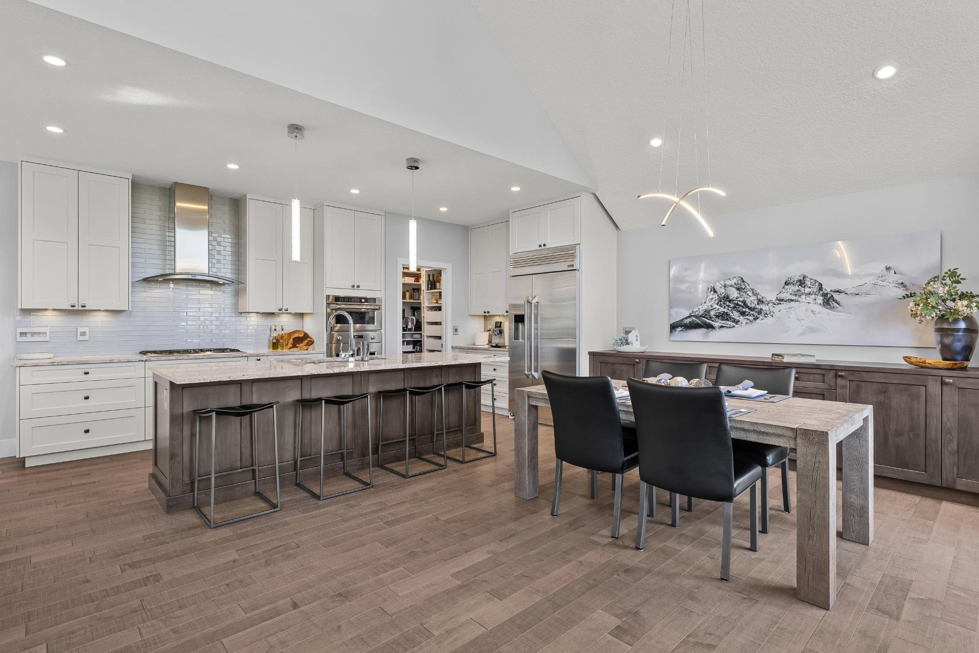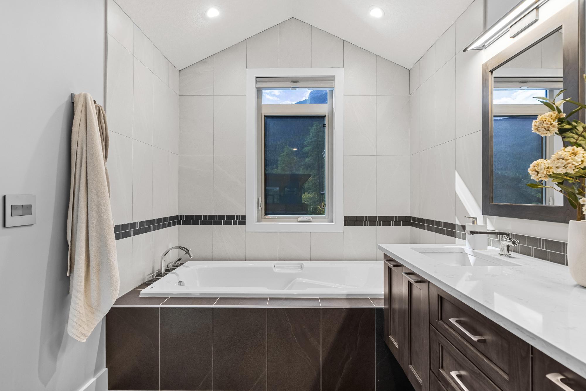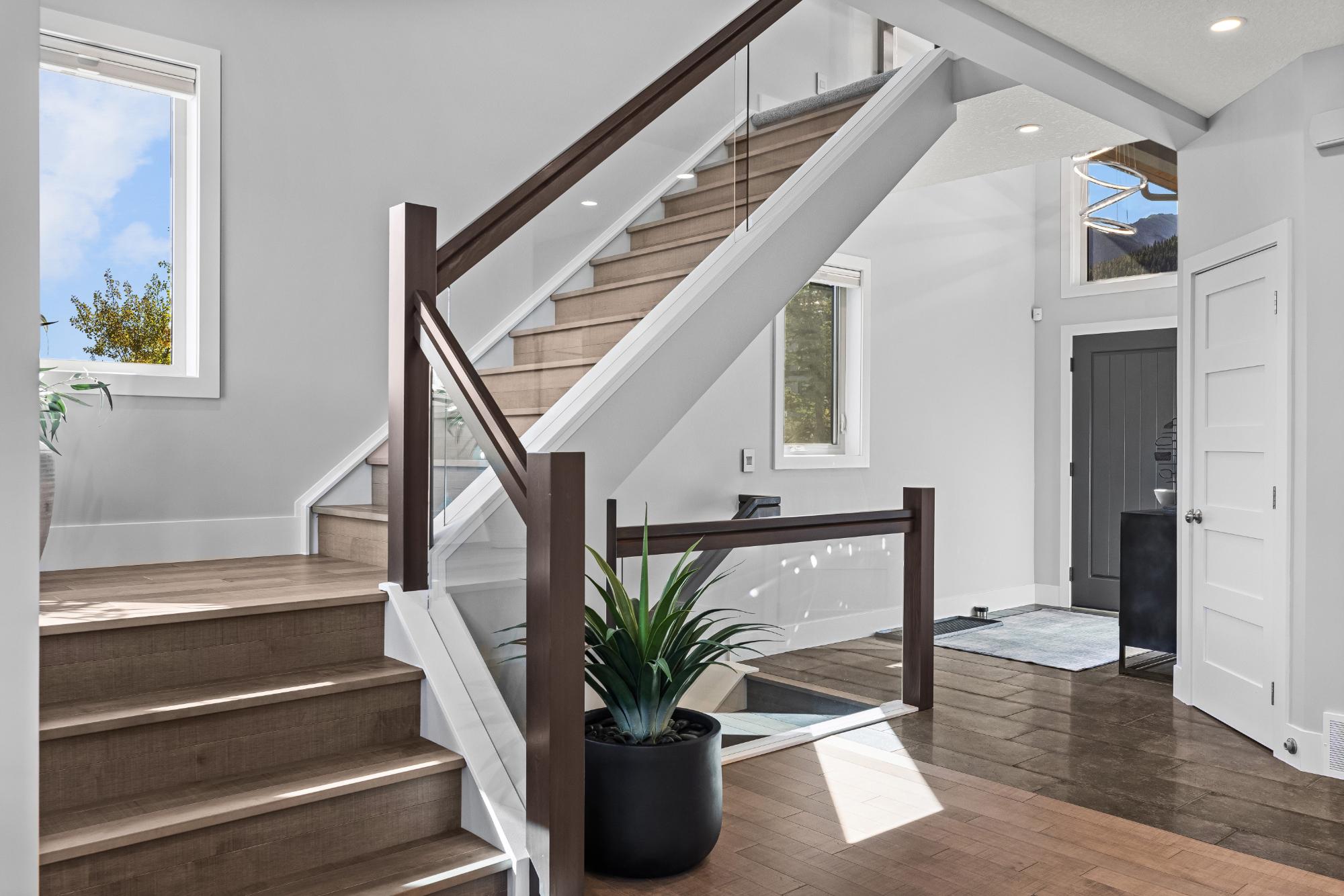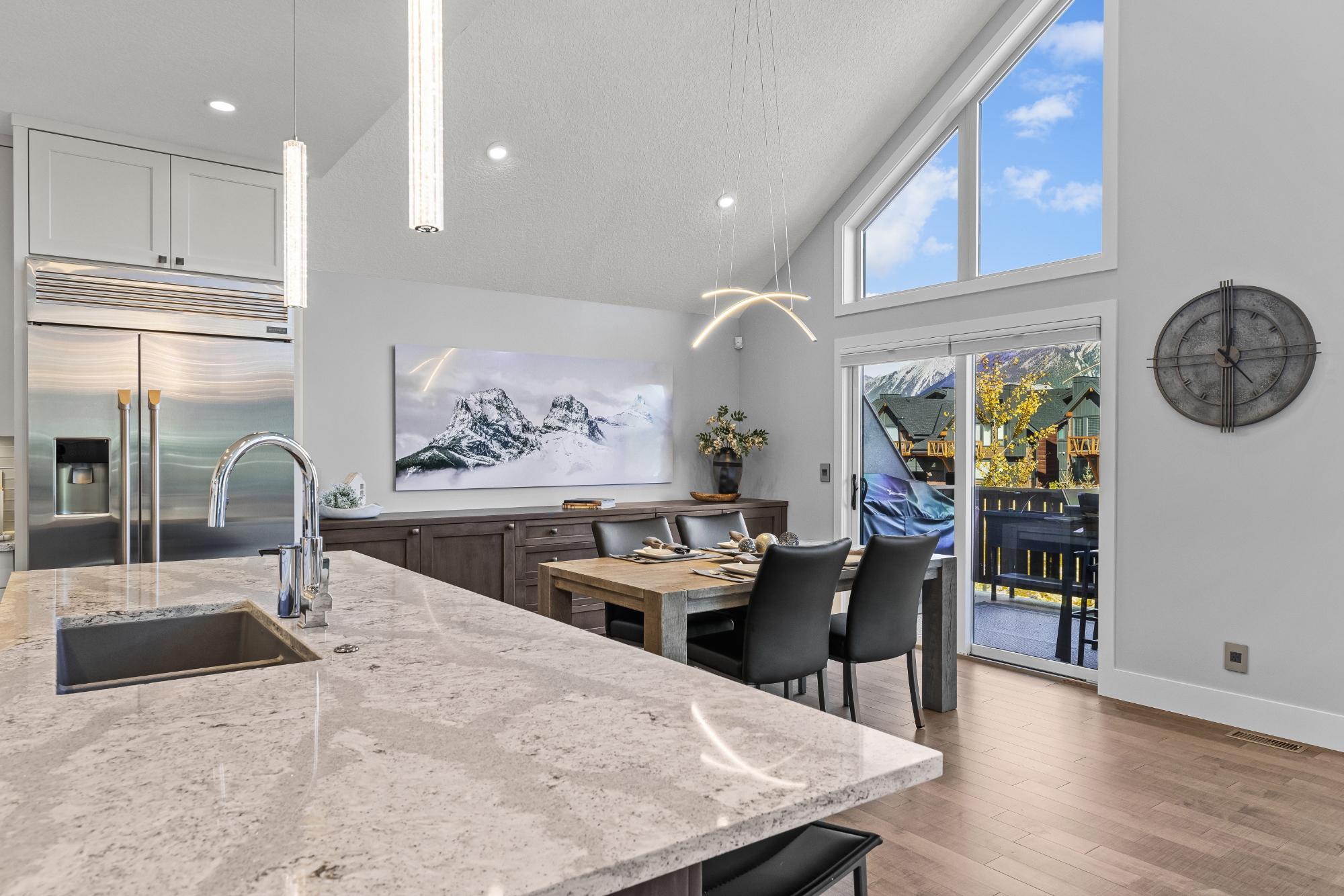 Sitting on one of the largest lots in the neighborhood, this home offers 4 beds 4 baths & over 3000SF. With 360° panoramic views, no expense was spared bringing the backyard retreat to life! Built for every occasion, enjoy a blend of low-maintenance hardscaping & lush/vibrant greenspace (w/ irrigation) from the sunken firepit, private hot tub & multiple patios/seating areas. W/ vaulted ceilings & wall to wall windows every room was designed to maximize natural light & capture the beauty of the surrounding peaks. The open-concept living/kitchen/dining area is perfect for gatherings w/ Monogram appliances/ample cabinetry/a generous walk in pantry & gas fireplace. The walkout basement features tall ceilings, a thoughtfully designed family room w/ custom built-ins & a practical fitness/games area. Set w/in one of Canmore’s most thoughtfully designed neighborhoods, prioritizing connection to the outdoors, the heated 2car garage ensures parking & storage are never a concern.