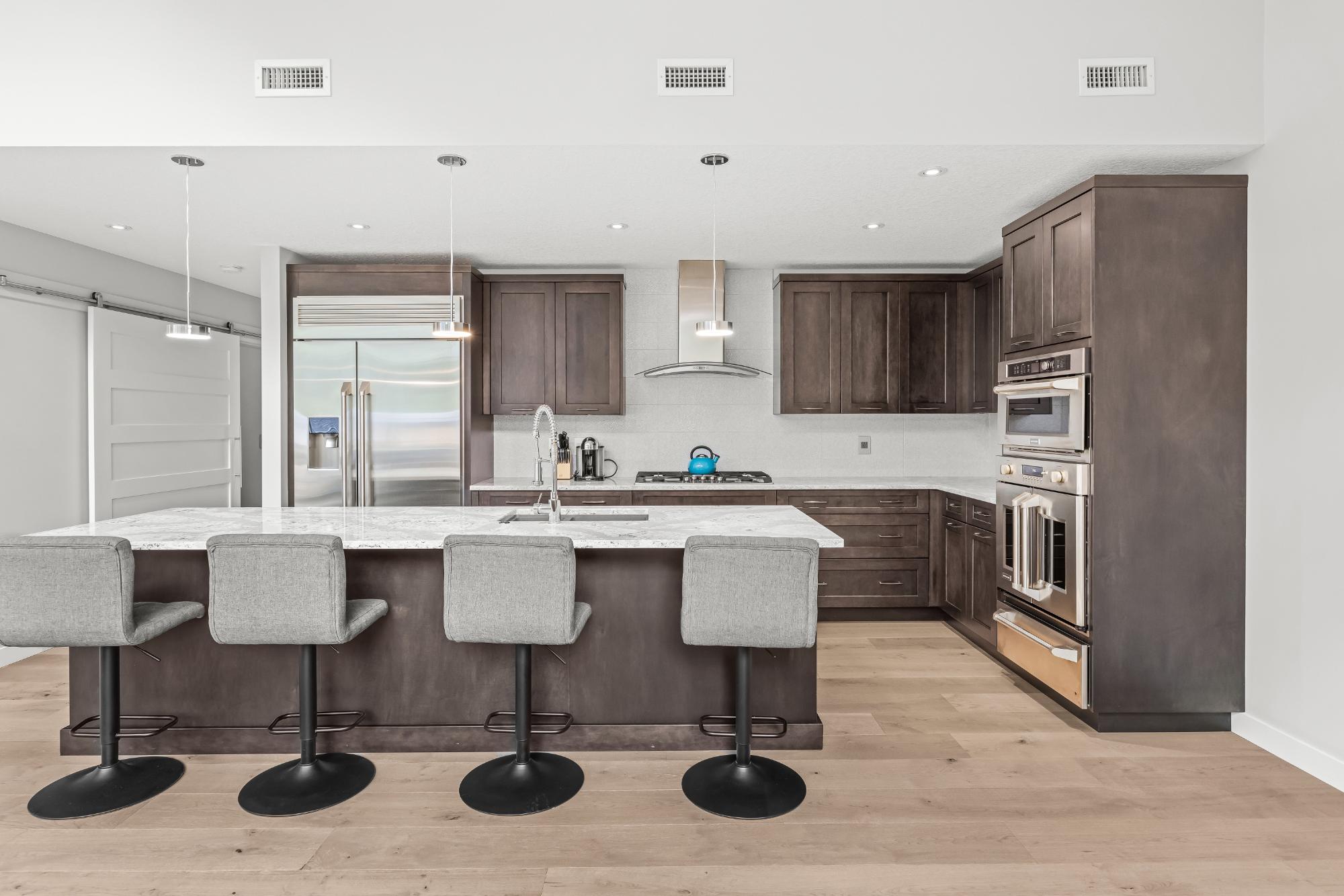 This luxurious penthouse in the serene Three Sisters community offers an unparalleled mountain living experience, with breathtaking views from every room. Bathed in natural light through expansive floor-to-ceiling windows, the two-storey layout features soaring vaulted ceilings that create an impressive sense of space. With over 2,800SF and two primary suites on the main level, each with a private ensuite, walk-in closet, and balcony, this home delivers both comfort and sophistication. Two large south-facing decks provide ideal spaces for relaxing or entertaining against a stunning mountain backdrop. Low condo fees and a quiet, well-maintained complex make this residence a rare opportunity. Additional highlights include ample storage, an attached garage, and a spacious kitchen with premium Monogram appliances—perfect for daily living or hosting in style.