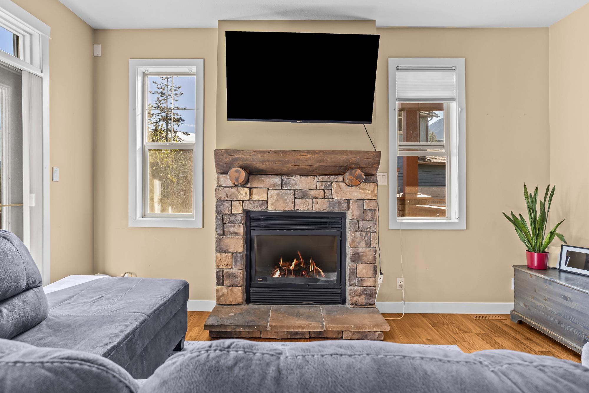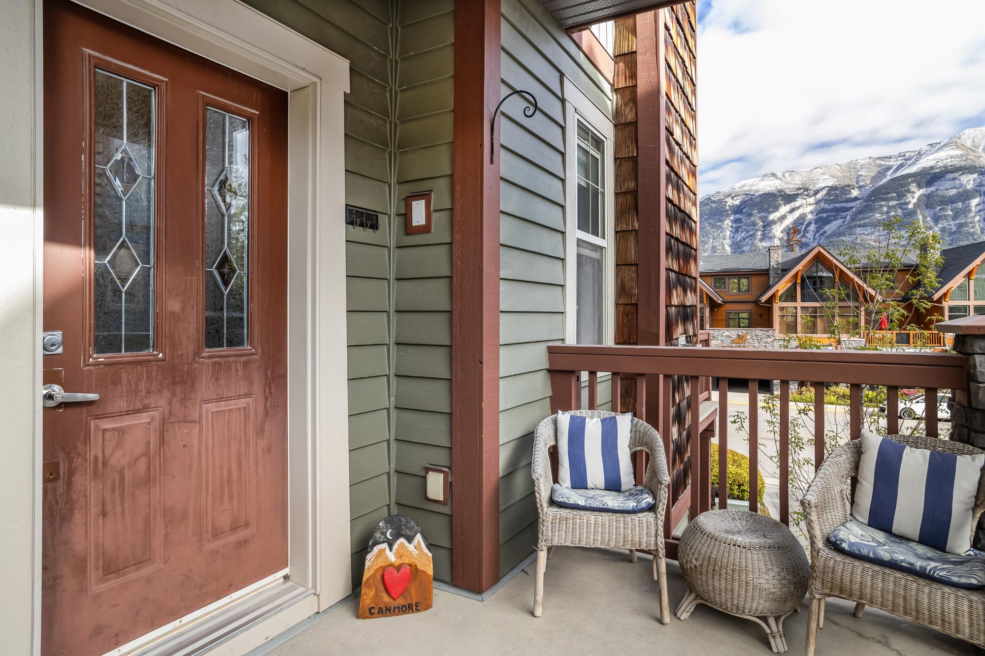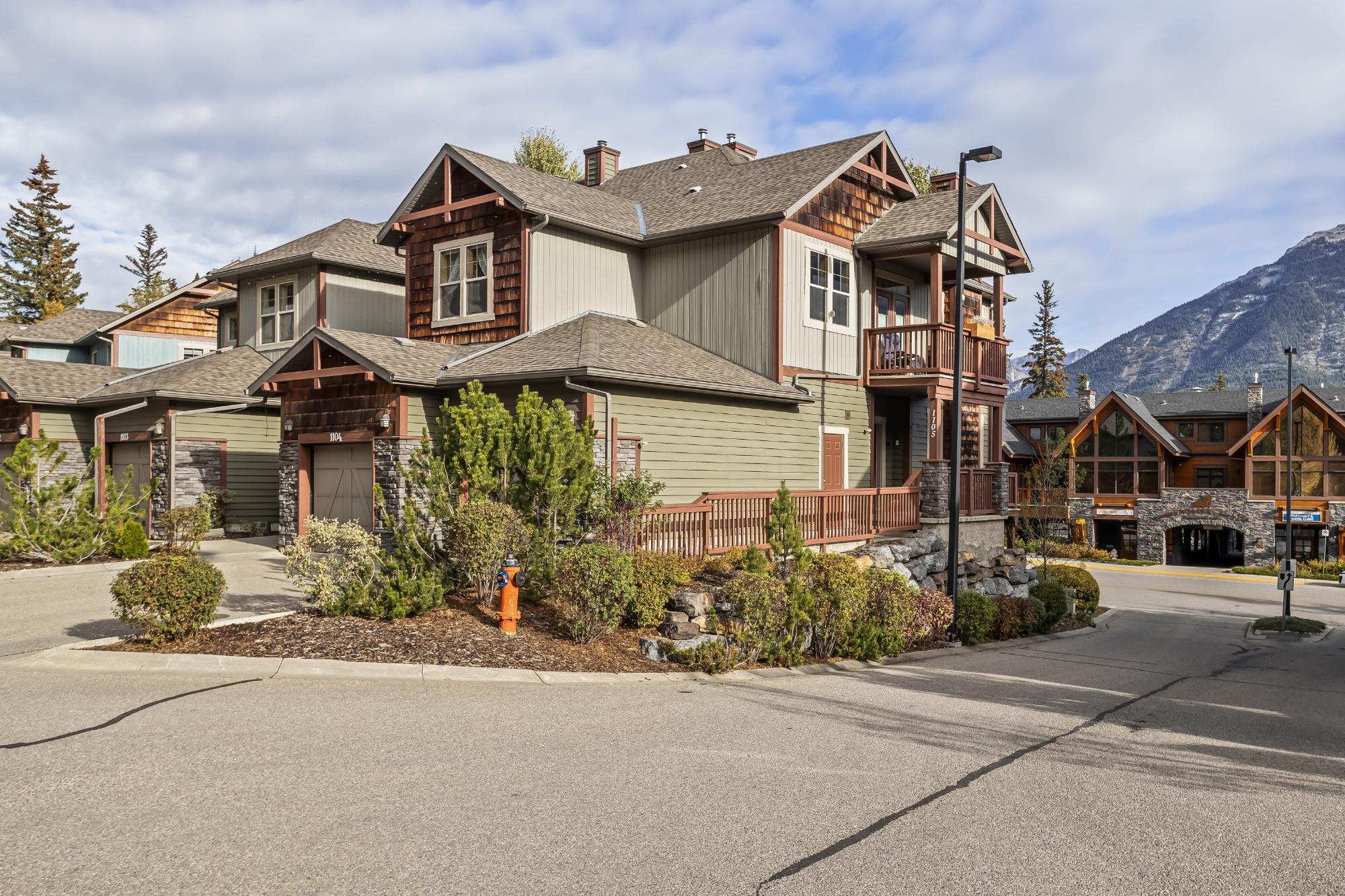 Beautiful corner townhouse in the sought-after Collier’s Ridge community, offering over 1,000 sq. ft. of bright, open living space and stunning mountain views. The main level features an inviting open-concept kitchen, dining, and living area with 9’ ceilings and a cozy gas fireplace with a charming log mantle. Step out from the dining area onto the spacious deck and take in the unobstructed views. The entry level also includes a powder room and a single attached garage for added convenience. The walkout lower level hosts two generous bedrooms with heated floors, a 4-piece bath, laundry, and a private patio off the primary suite. This well-managed complex is just steps from hiking and biking trails and minutes from Stewart Creek Golf Course — the perfect blend of comfort, style, and mountain living.
