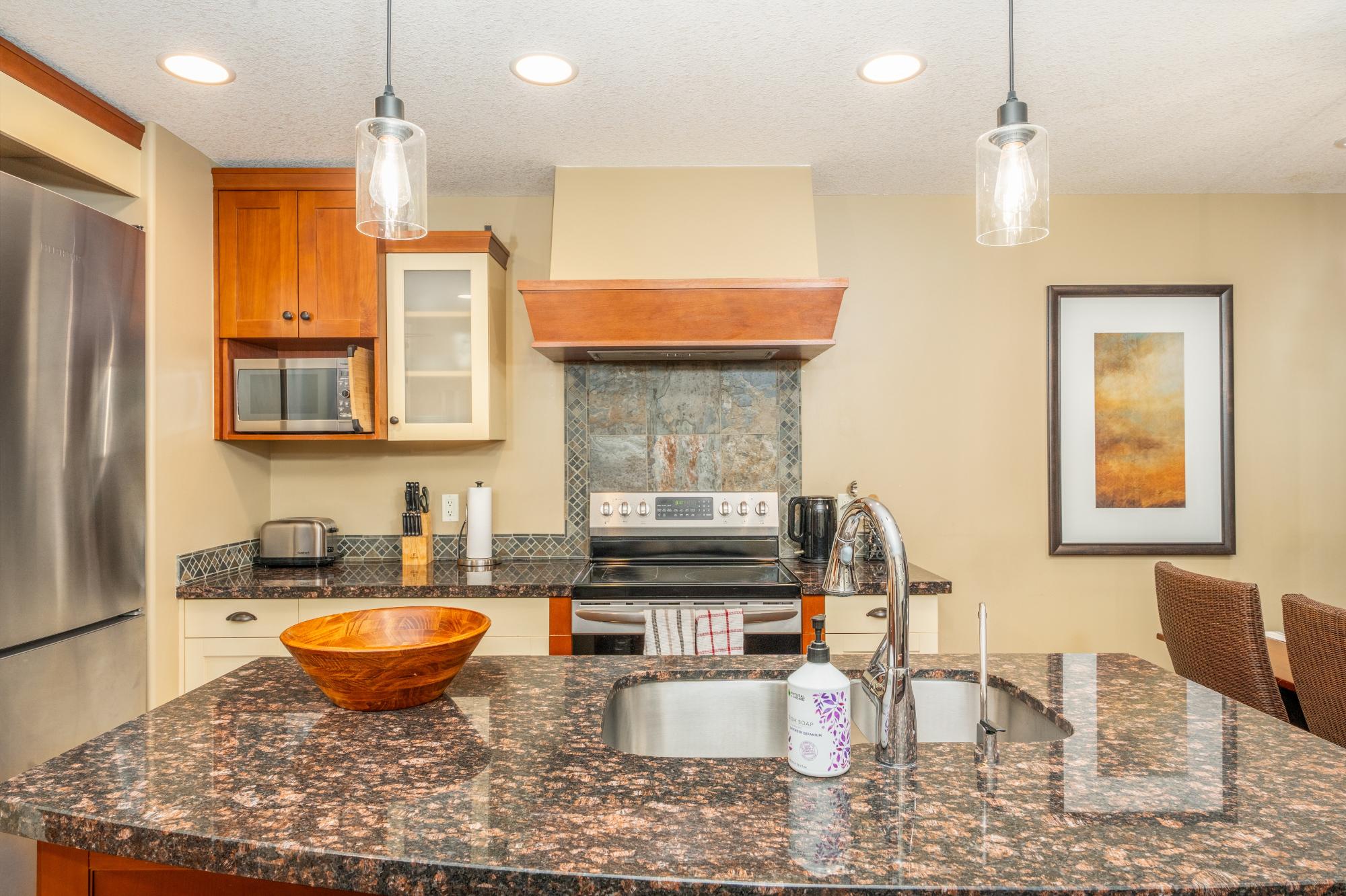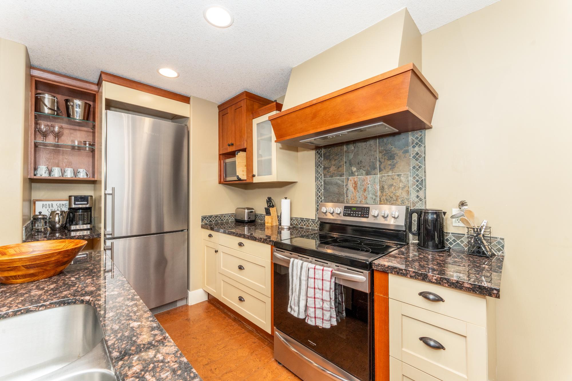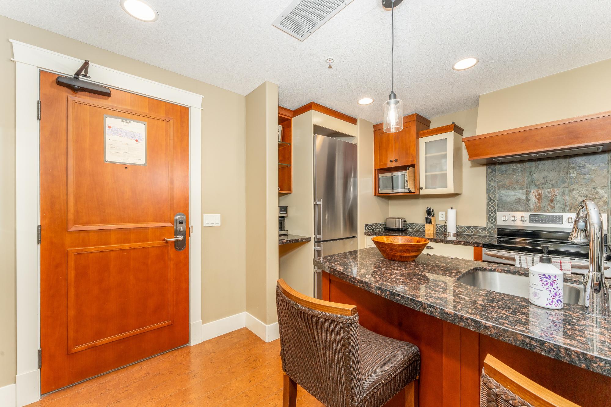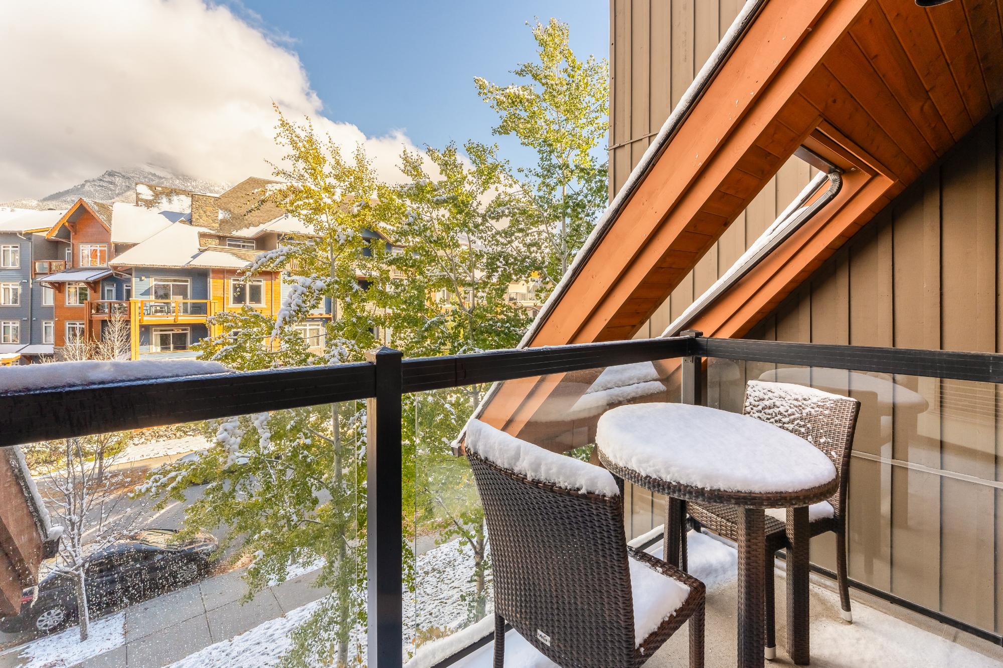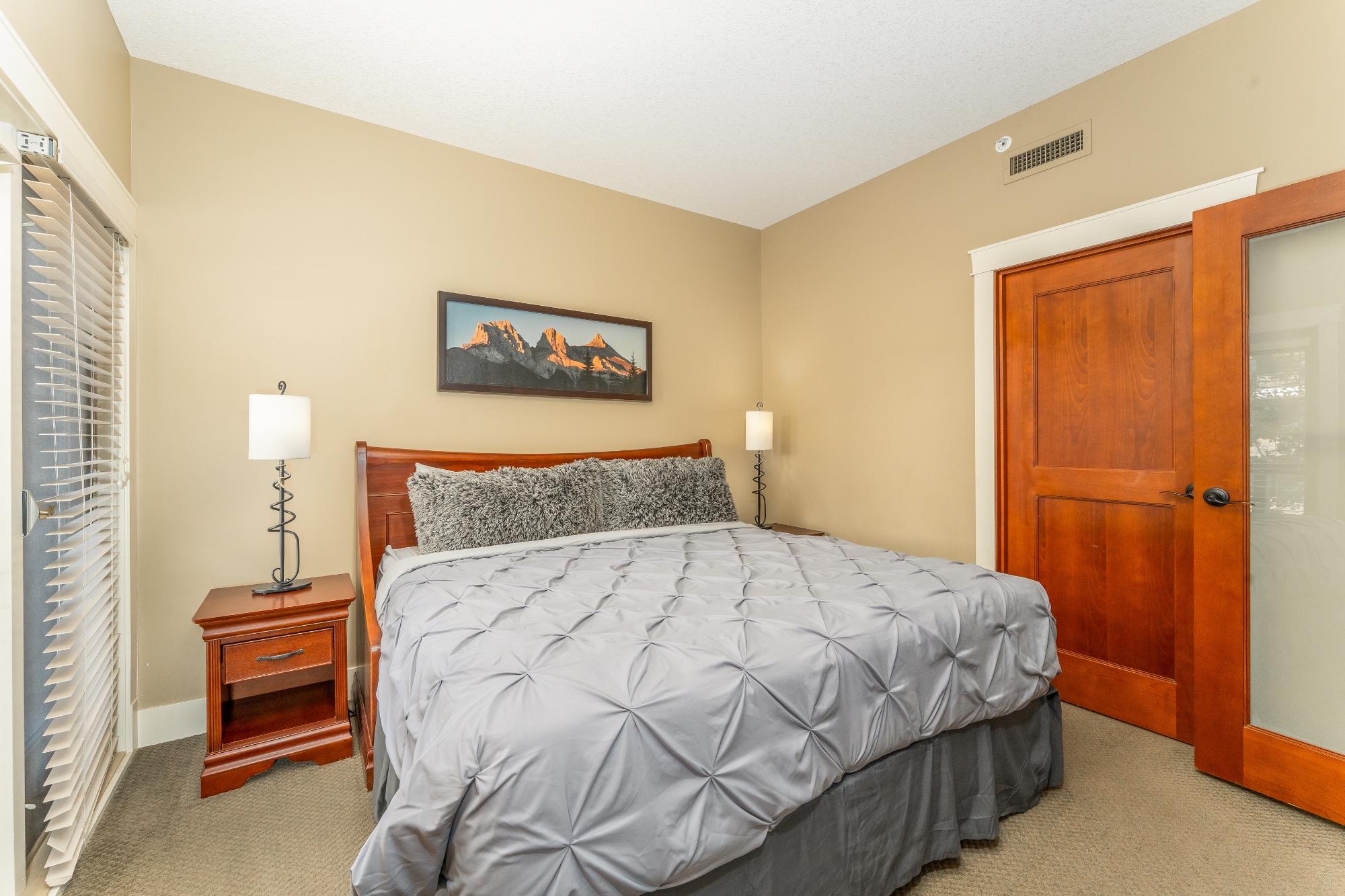 Step into mountain living at its finest in this spacious two-bedroom lock-off suite at Solara Resort & Spa. After a day exploring Canmore’s endless trails, rivers & slopes, return to comfort & connection. The gourmet kitchen boasts sleek two-tone cabinetry, granite counters, a generous island, imported cork flooring & stainless appliances—everything you need to prepare meals. Gather at the dining table for six, then relax in the living room where a plush sofa (converting to a queen bed) faces a glowing fireplace. Step onto one of two private balconies to savour morning coffee or stargaze against the Rockies. Recharge in the spa-inspired bathroom before retreating to bed. The lock-off design transforms one bedroom into a self-contained suite with corridor access—ideal for hosting or rental income. Resort amenities: indoor pool, hot tub, One Wellness Spa & Fitness, Axis Bar & Kitchen, MainSpace venue & Epic Liquor. Heated underground parking & storage add peace of mind. Zoned for ni