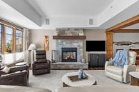 This single-floor residence spans 2,819 sq ft and offers truly unmatched panoramic mountain vistas and its expansive outdoor spaces. Entertain or relax on the south-facing primary balcony, or step out from primary suites onto a second private balcony. The gourmet kitchen, featuring quartz countertops and a walk-in pantry, offers a culinary experience where the Three Sisters mountains serve as a breathtaking backdrop. The first of the two primary retreats is a luxurious haven, boasting a corner gas fireplace, a dedicated sitting area, a walk-in closet, and a spa-inspired ensuite with a steam shower. All-room sound system, in-floor heating in en-suites. Completing this exceptional layout are two additional rooms—ideal for guest bedrooms or private offices with a three-piece bath. Includes two heated underground parking stalls and a massive storage—exercise room in the building. All furniture is included, but all art is excluded.