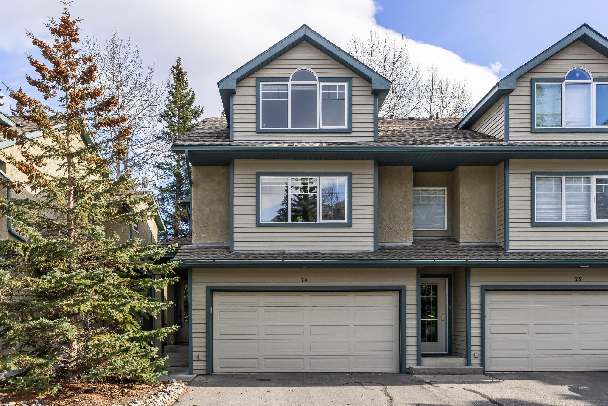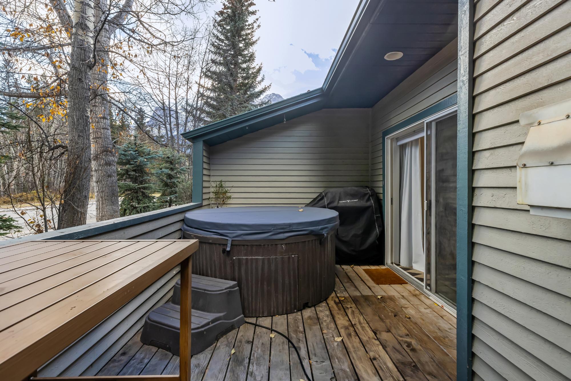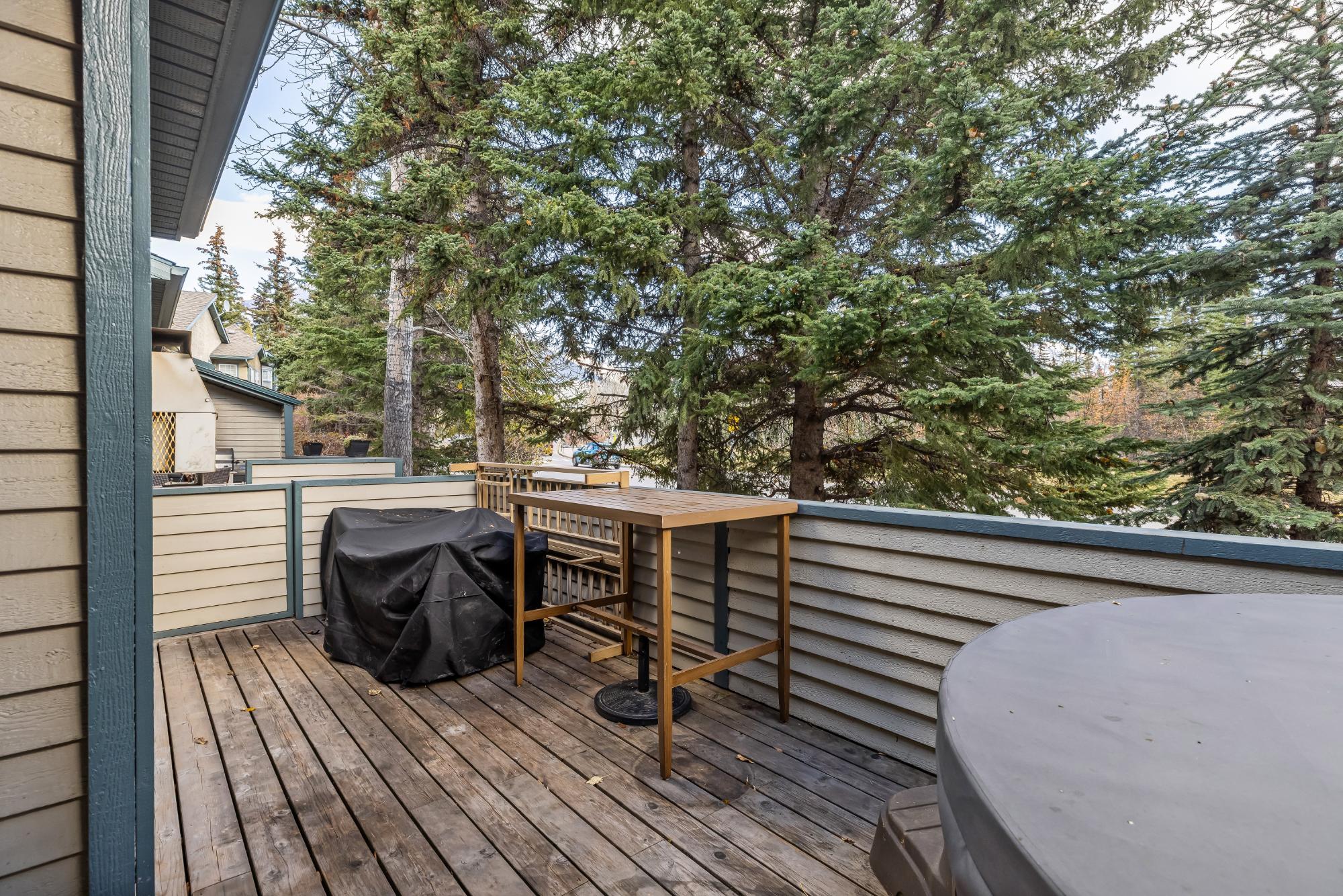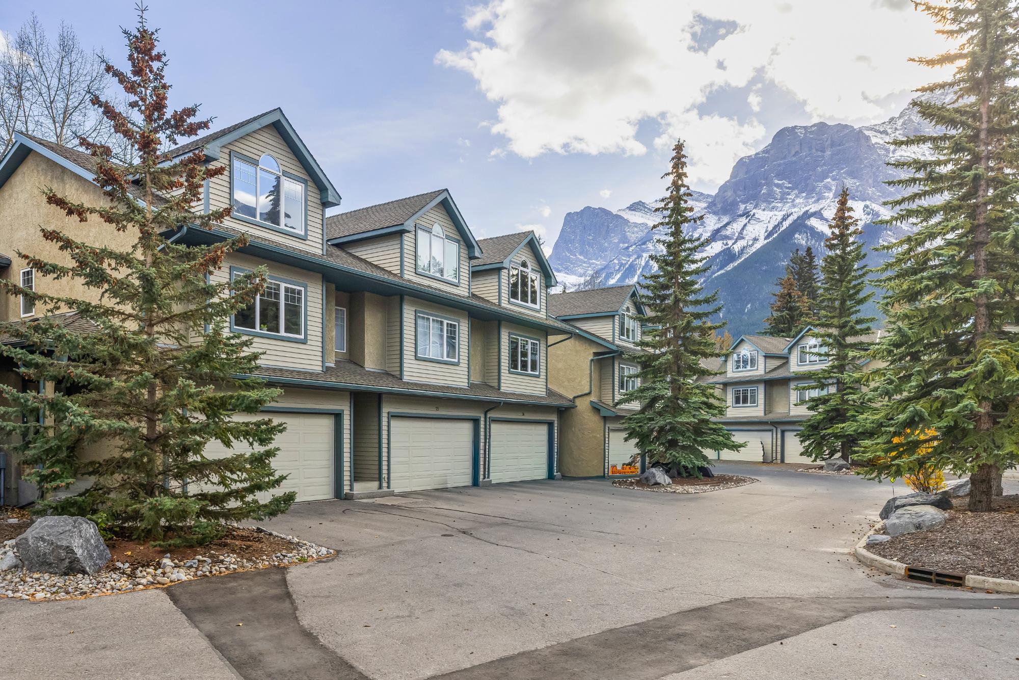 Fully renovated from top to bottom this stunning 3 bed 3 bath townhome offers over 2100SF of beautifully designed living space. The reimagined kitchen is a showpiece, featuring an oversized marble island w/ hidden storage, black SMEG appliances, brass accents, & sleek marble backsplash. Warm wood tones flow through the open-concept living area, complemented by a cozy gas fireplace, large skylights, & soft lighting that leads to a spacious deck w/ a private hot tub. Upstairs enjoy new carpet, railings, & lighting that enhance the space. Sunny mountain views fill the primary bedroom, accompanied by a fully updated ensuite w/ double sinks & tiled shower while 2 guest beds share a modern full bath. The flexible top-floor loft makes for a great home office, media room, kids zone, fitness area. Every detail has been thoughtfully curated to blend comfort, character, & modern elegance, creating a truly move-in-ready home in the heart of Canmore. PLUS enjoy a large 2car garage & driveway.