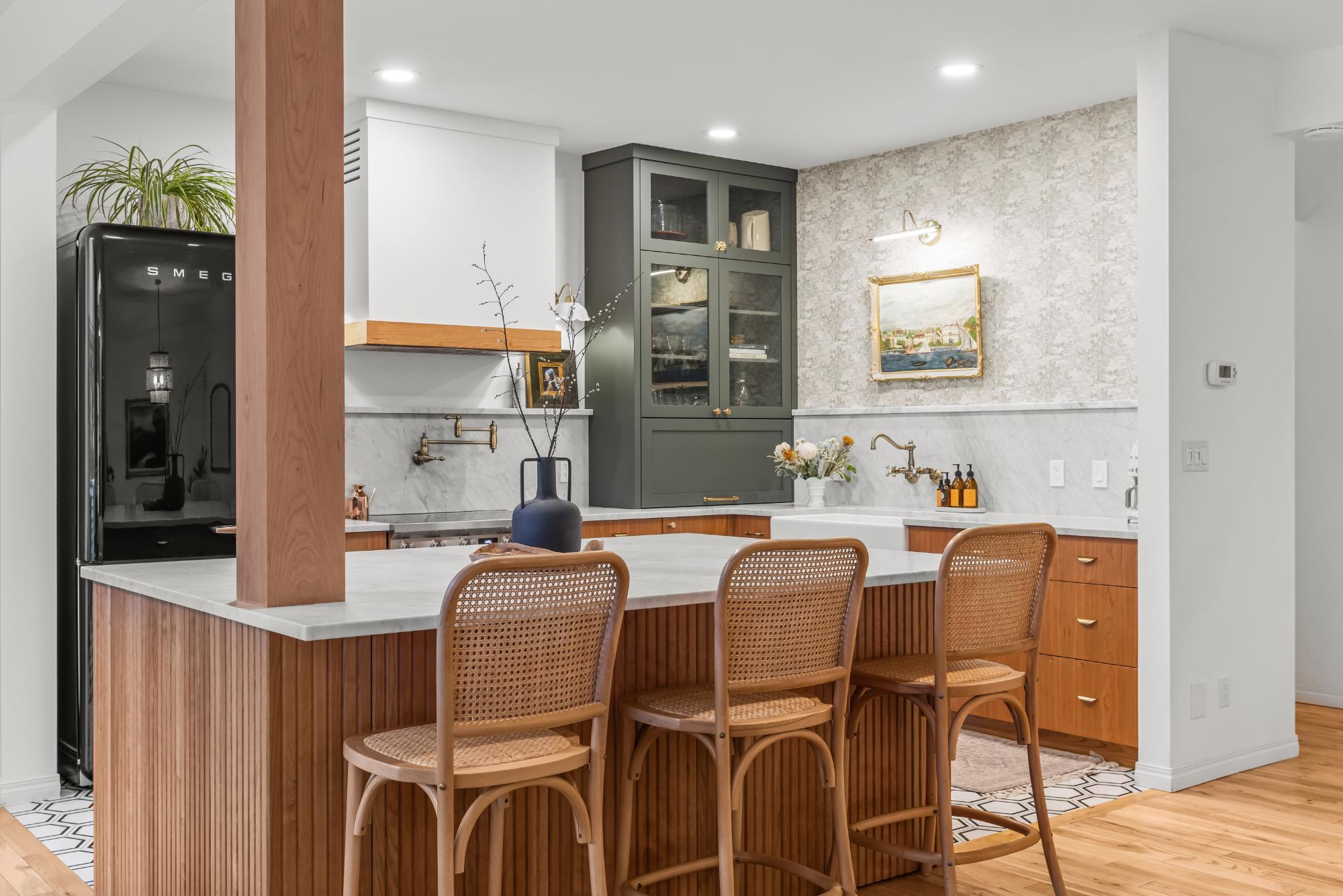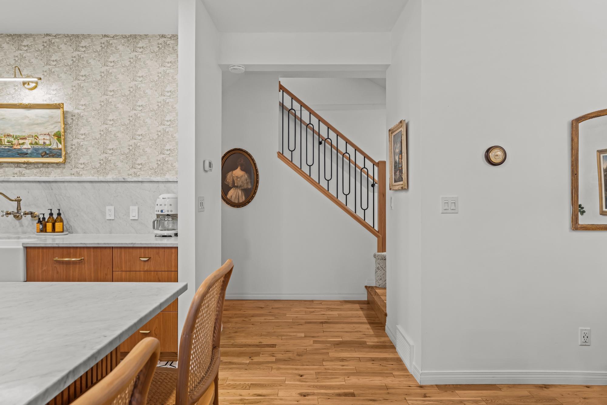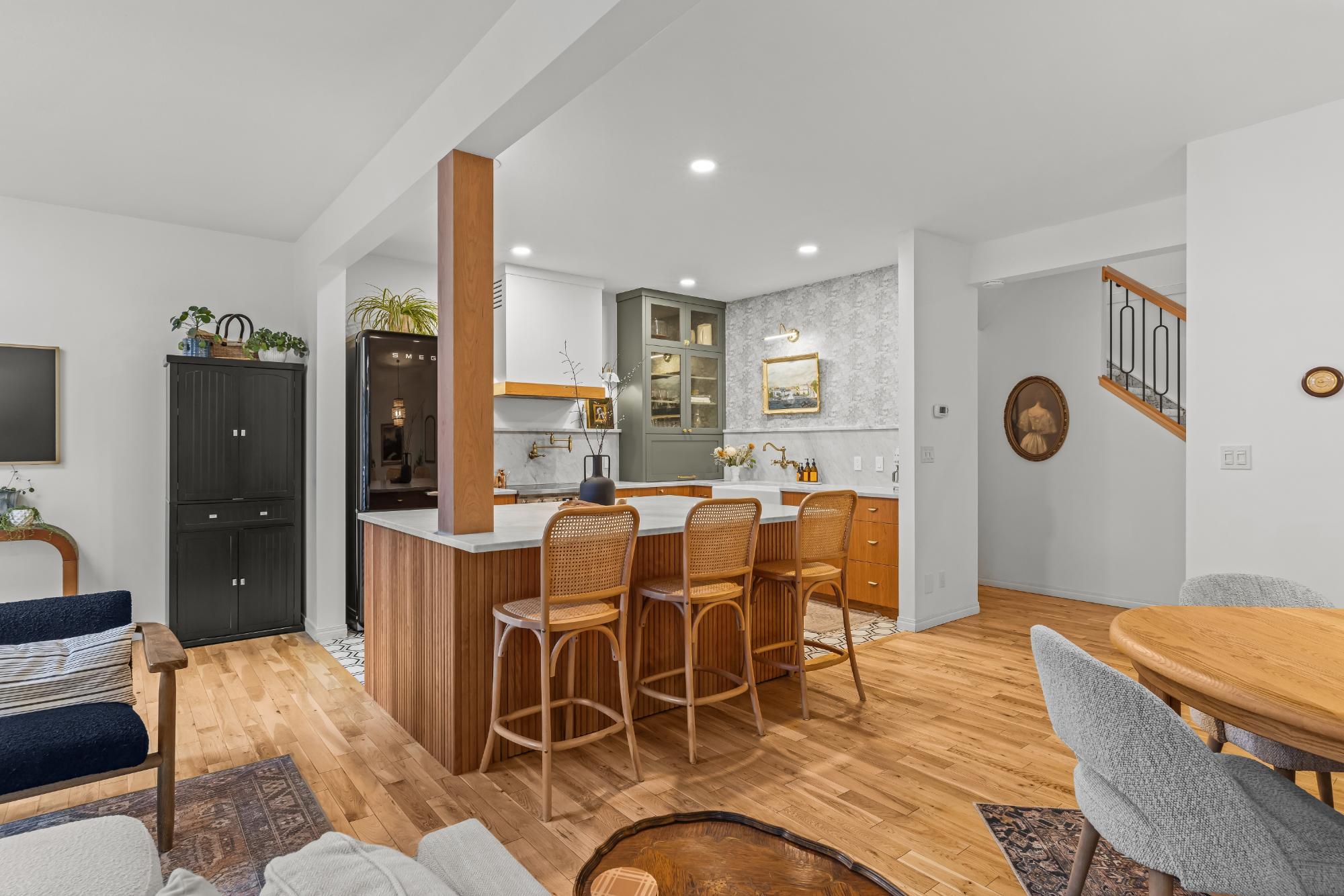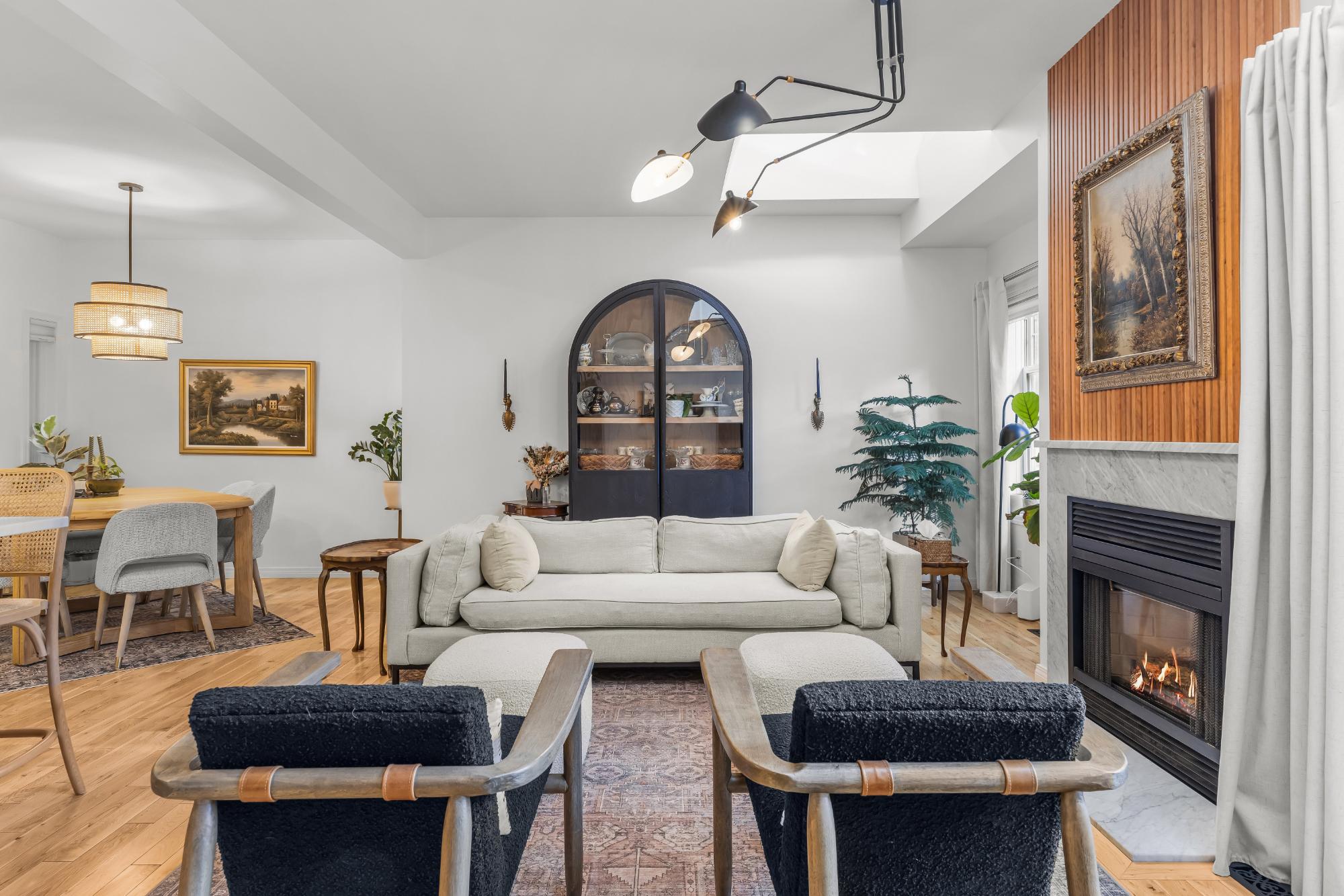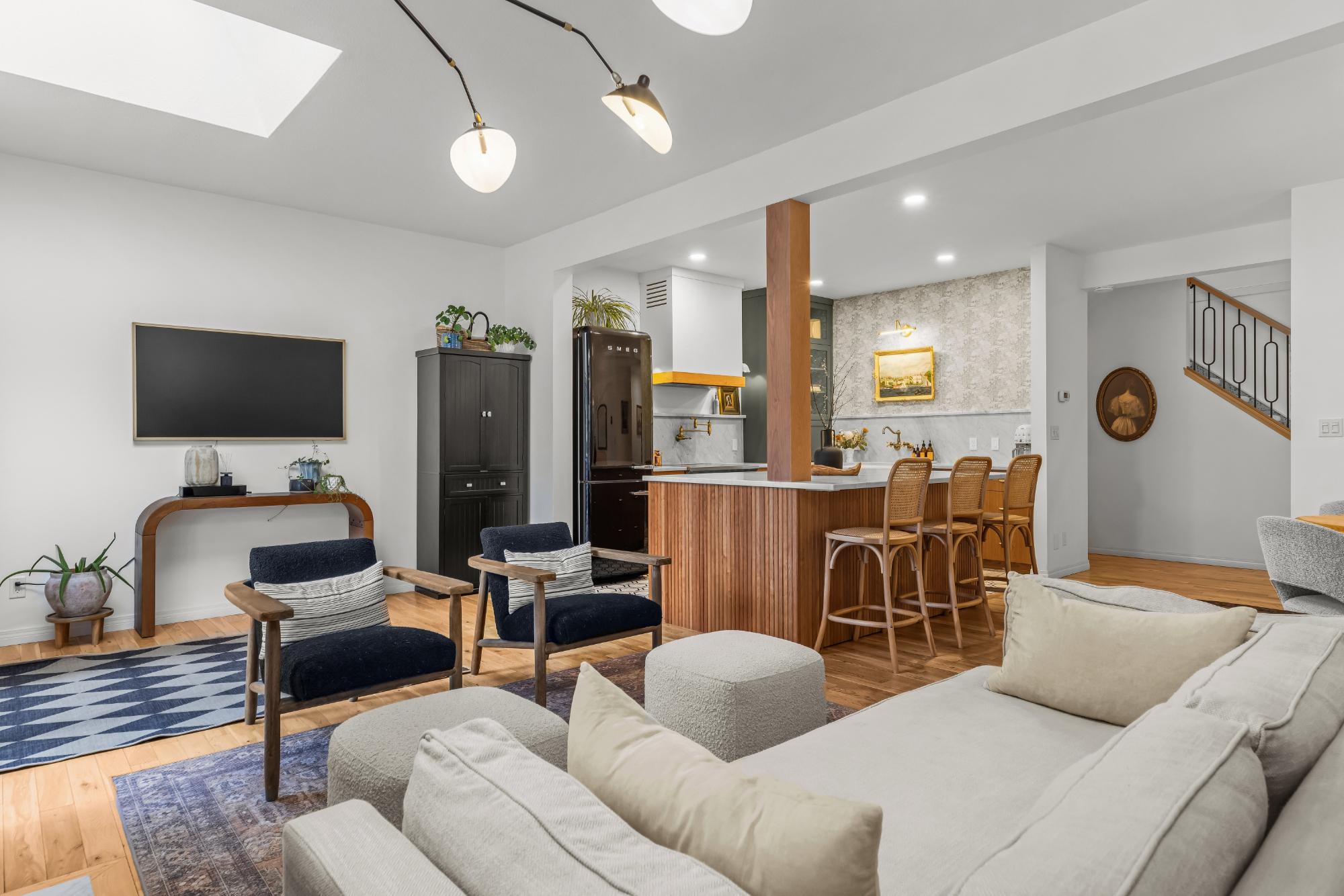 Fully renovated from top to bottom this stunning 3 bed 3 bath townhome offers over 2100SF of beautifully designed living space. The reimagined kitchen is a showpiece, featuring an oversized marble island w/ hidden storage, black SMEG appliances, brass accents, & sleek marble backsplash. Warm wood tones flow through the open-concept living area, complemented by a cozy gas fireplace, large skylights, & soft lighting that leads to a spacious deck w/ a private hot tub. Upstairs enjoy new carpet, railings, & lighting that enhance the space. Sunny mountain views fill the primary bedroom, accompanied by a fully updated ensuite w/ double sinks & tiled shower while 2 guest beds share a modern full bath. The flexible top-floor loft makes for a great home office, media room, kids zone, fitness area. Every detail has been thoughtfully curated to blend comfort, character, & modern elegance, creating a truly move-in-ready home in the heart of Canmore. PLUS enjoy a large 2car garage & driveway.