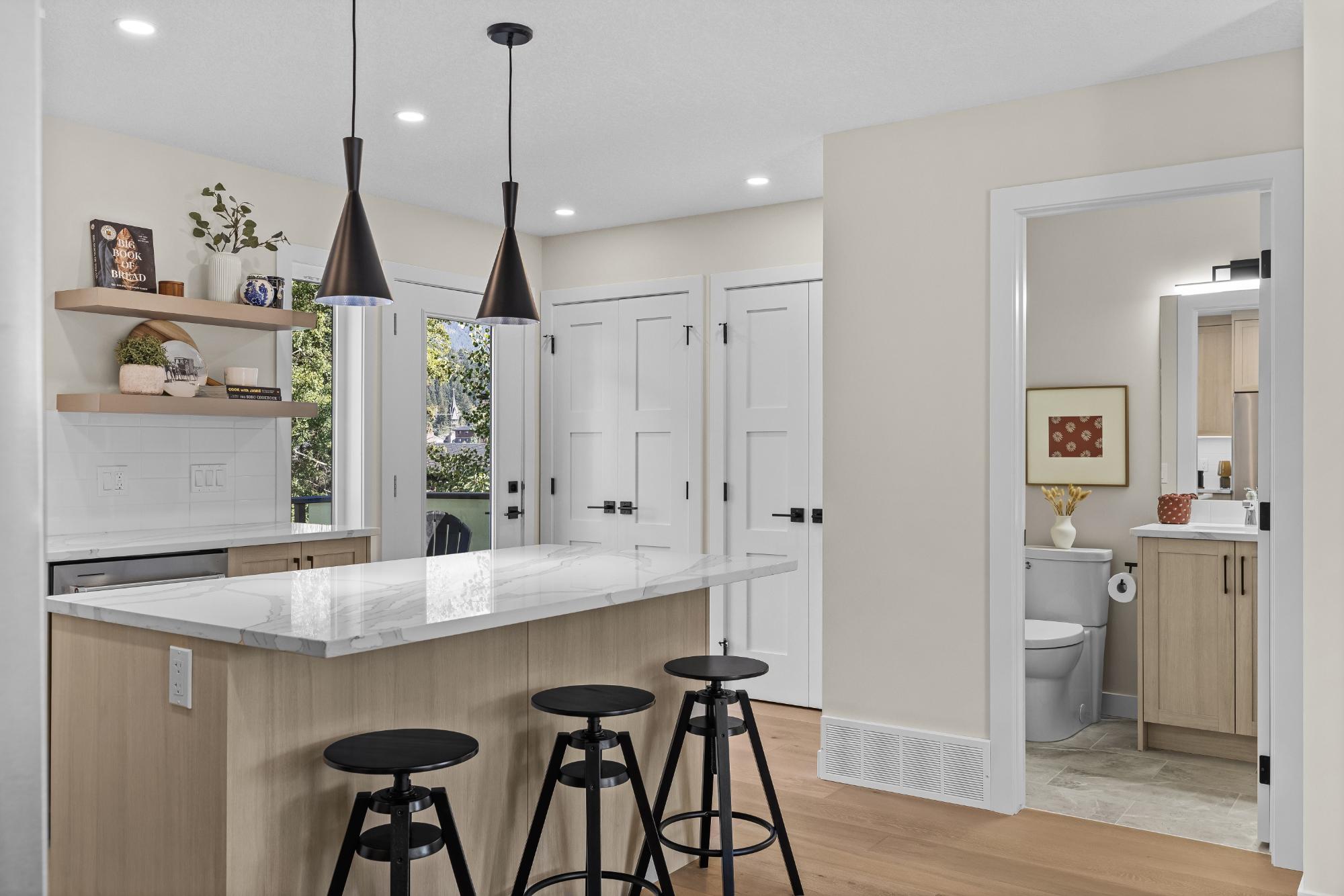 Bald Eagle Peak Chalets offers brand-new 4 bedroom, 3.5 bath homes with attached garages, private yards, and quiet south-facing outdoor spaces with big mountain views. Thoughtful layouts, quality finishes, and strong natural light make these homes work well for real life. The main level has a bright great room, gas fireplace, and a kitchen with a large island. Upstairs features 3 bedroom including a comfortable primary suite. The lower level adds a 4th bedroom with its own bath for family, guests, or future rental potential depending on town approval. The location is central with quick access to Main Street, cafés, restaurants, trails, and parks. The developer is offering a limited-time incentive on select interior units with up to $45,000 toward the first year of mortgage payments. 1st-time buyers may also qualify for the GST rebate. Reach out for details and a private showing.
