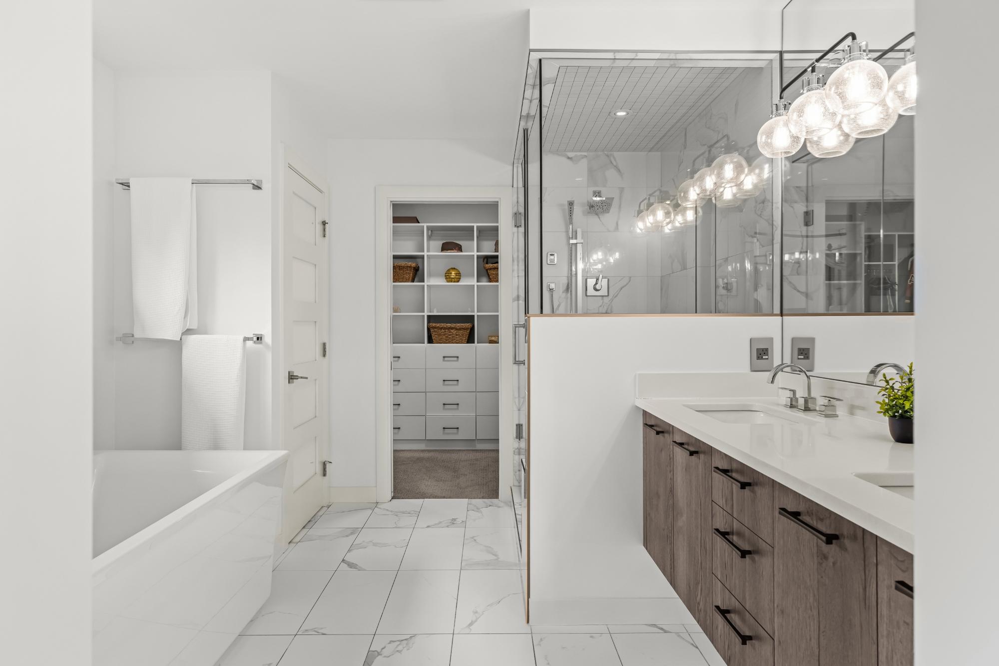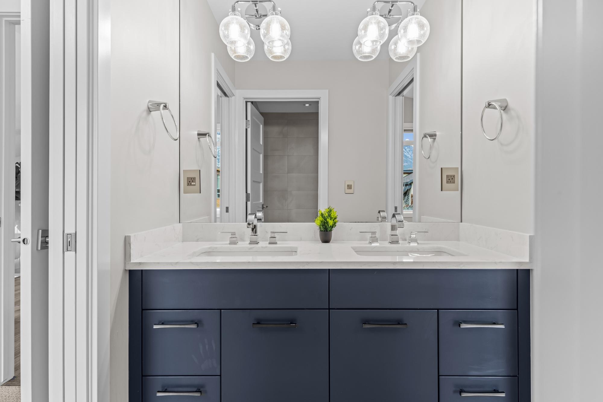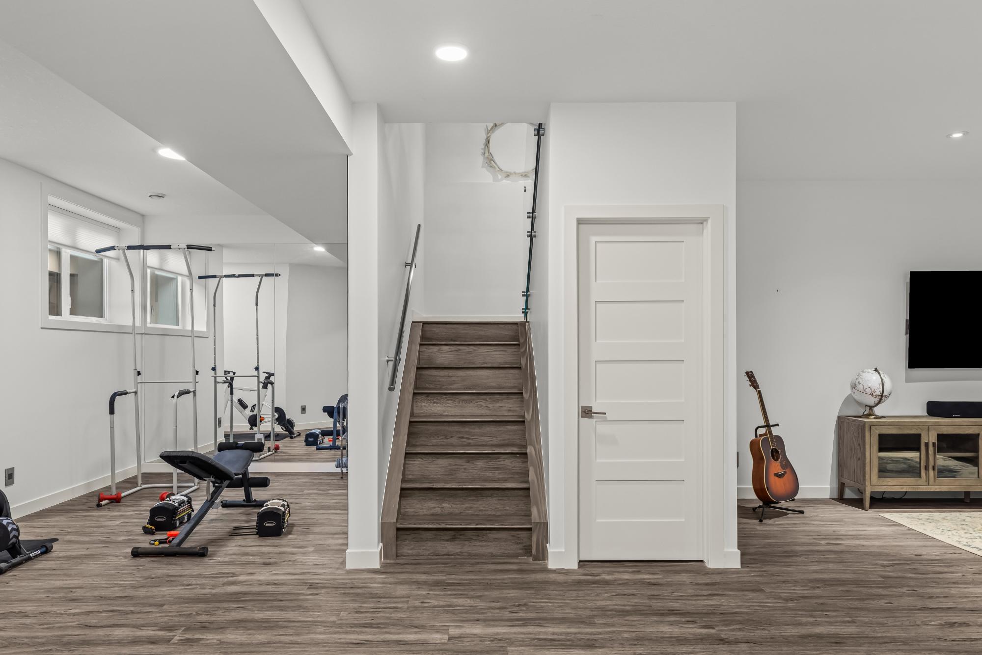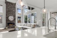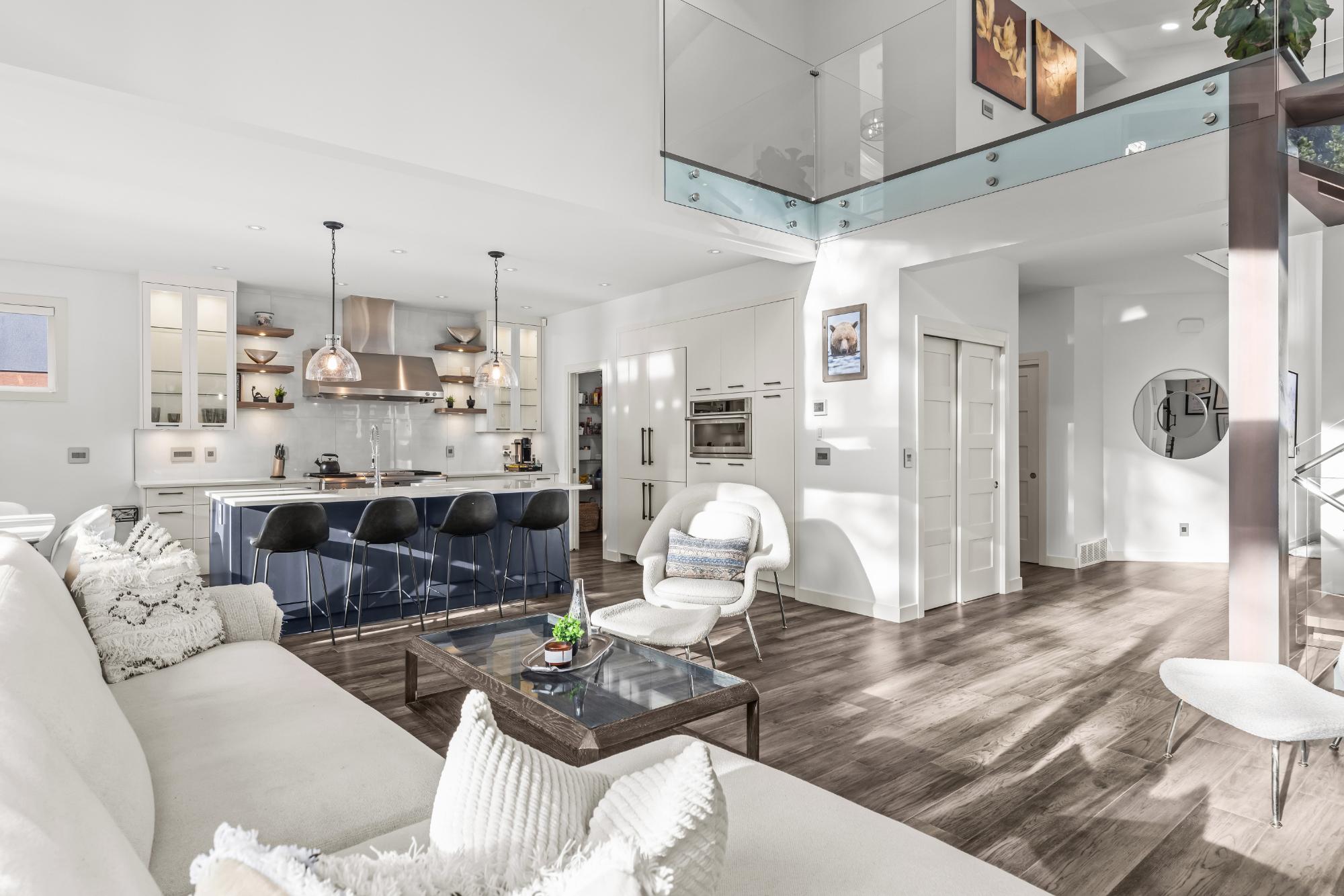 Discover mountain-modern living on the 10th hole of Stewart Creek Golf Course. This thoughtfully designed 4-bed, 4-bath home offers over 3,500 sq ft of bright, functional space with timber beams, large windows, and a warm alpine aesthetic. Enjoy an unobstructed and private backdrop ,creating a sense of calm and separation rarely found. Built with environmental and safety features, including solar panels and Fire-Smart roof sprinklers, the home blends modern efficiency with mountain style. The open-concept main level connects the kitchen, dining, and living areas, ideal for everyday living and entertaining. The private yard is a true retreat, featuring a sunken hot tub, fire pit, underground sprinklers, and thoughtful landscaping. Upstairs offers bright bedrooms and a welcoming primary suite, while the lower level provides flexible space for a gym, media room, or guests. Set in a quiet, scenic neighborhood with direct access to mountain recreation, this home