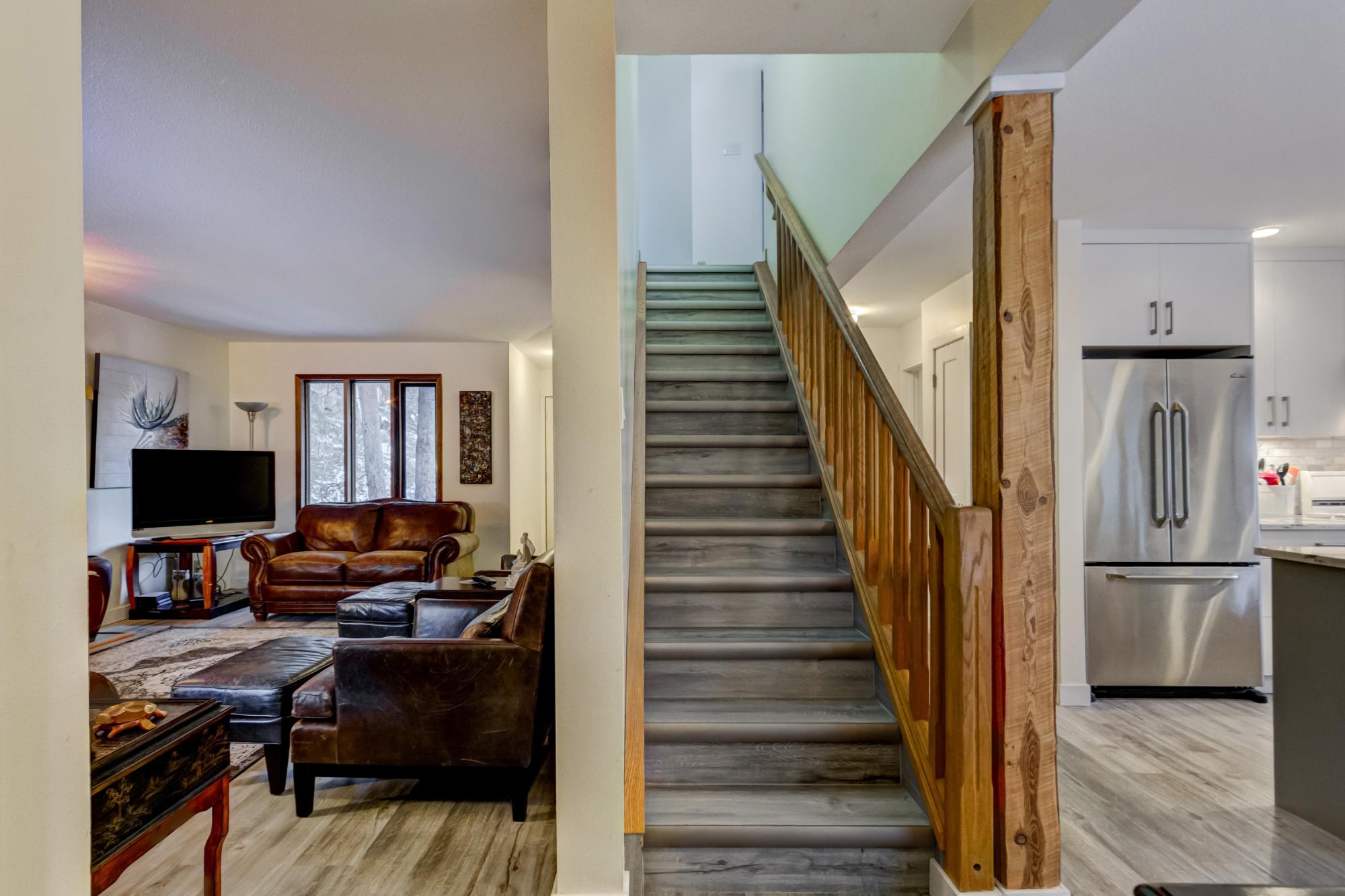 Situated in one of Canmore’s most sought-after neighbourhoods, this beautifully updated home offers four bedrooms, three bathrooms. A welcoming foyer leads into a bright, open kitchen that flows seamlessly into the dining room, where a wall of oversized windows brings in natural light and opens onto a generous outdoor deck. The inviting living room features a cozy fireplace, this level also includes a convenient bedroom and full bathroom - ideal for guests or home office needs. Upstairs, the primary suite is complemented by an additional bedroom, full bathroom and ample storage options. The fully developed lower level includes its own kitchen, creating the perfect setup for guests or roommates. The attached garage features a single door with the footprint of a double. Set on a spacious, private lot, this home blends character, comfort and practicality. With immediate access to world-class outdoor recreation - including the Canmore Nordic Centre and Quarry Lake.