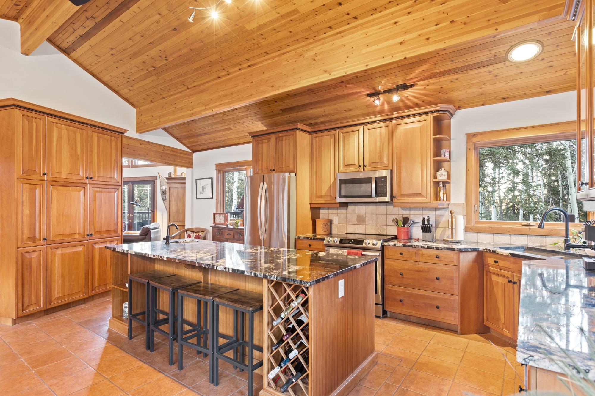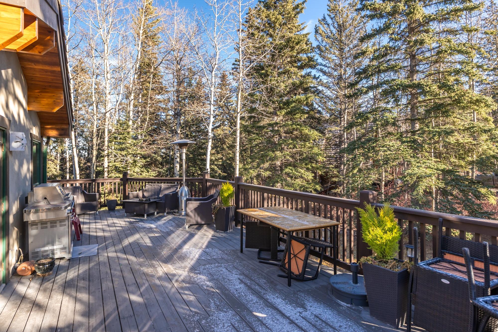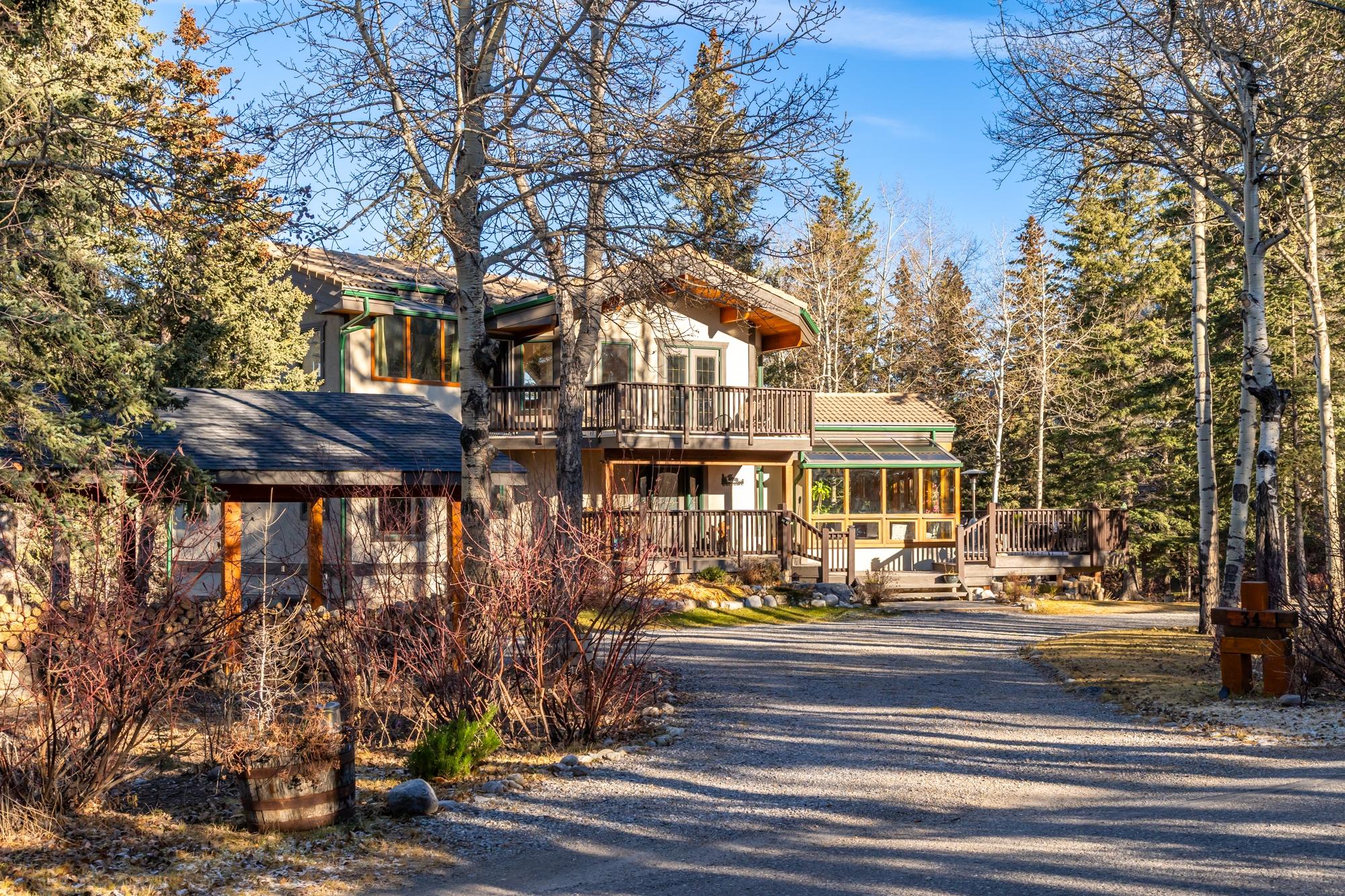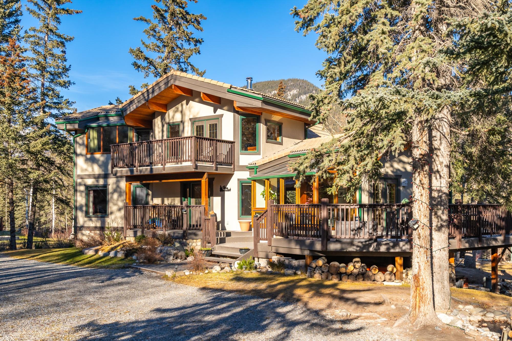 This half-acre walkout estate in peaceful Lac des Arcs offers uninterrupted Rocky Mountain views and over 3,400 sq ft of developed living space. Warm and inviting, it blends comfort with a strong connection to the outdoors. The bright main floor features maple hardwood, vaulted ceilings, a custom river-rock fireplace, and a chef-inspired kitchen with cherry cabinetry and a 9-ft island. A sun-filled solarium dining room frames stunning views, while a main-floor primary suite adds convenience with a 4-piece ensuite and nearby laundry. Upstairs, a second large primary includes a walk-in closet, full ensuite, and access to a shared balcony and loft. The fully developed walkout level is perfect for guests or multigenerational living, offering a second kitchen, huge rec room, two bedrooms, a full bath, and ample storage. Enjoy wrap-around deck access and close proximity to trails, climbing, the Bow River, Grotto Canyon, and a quick 10–15 minute drive to Canmore.