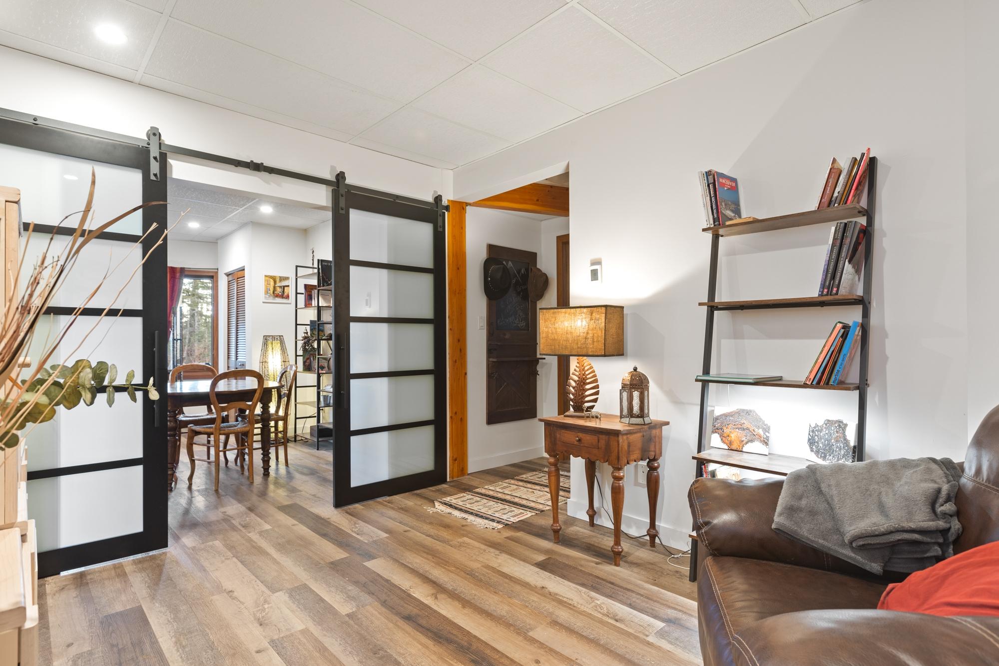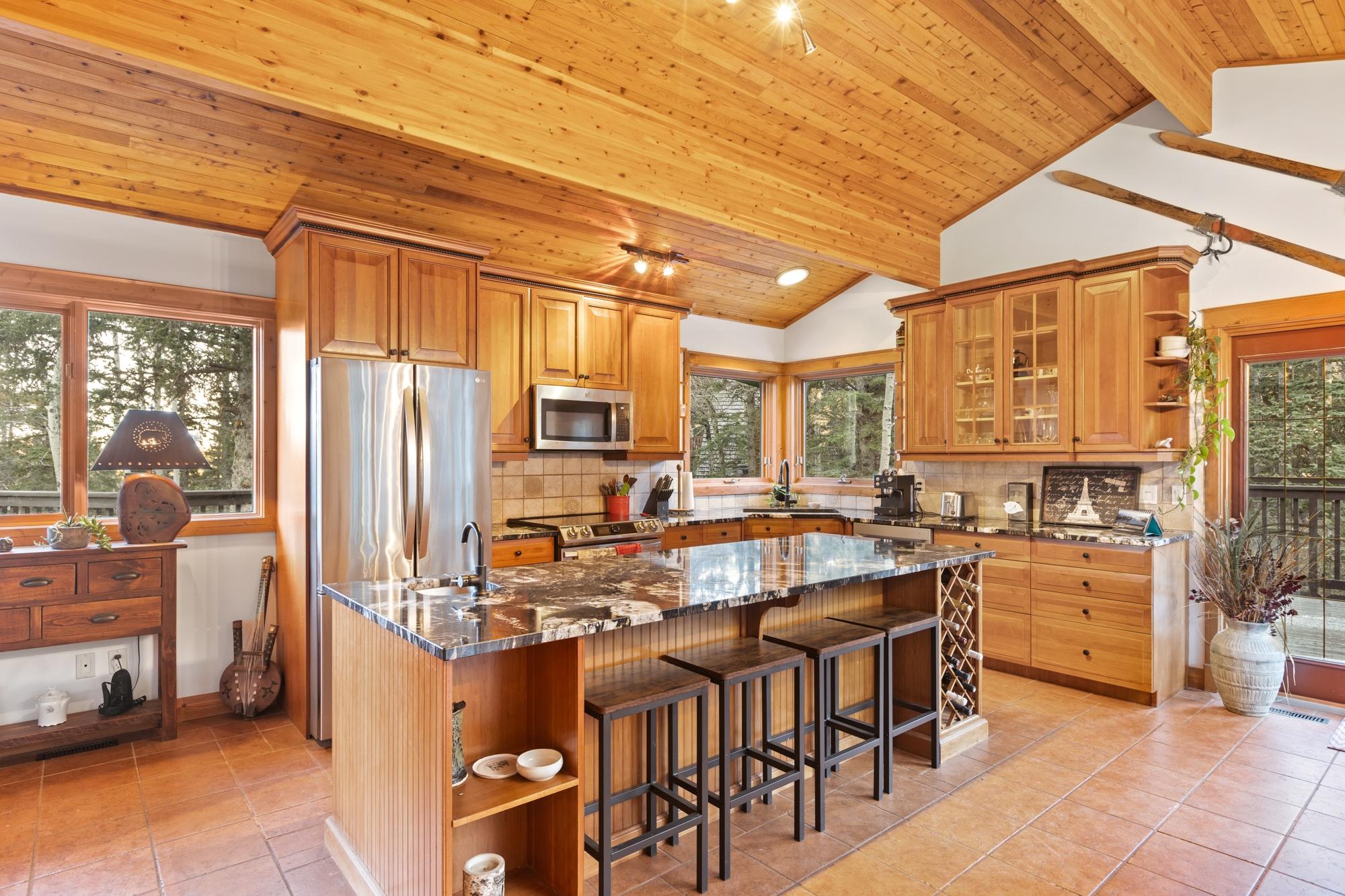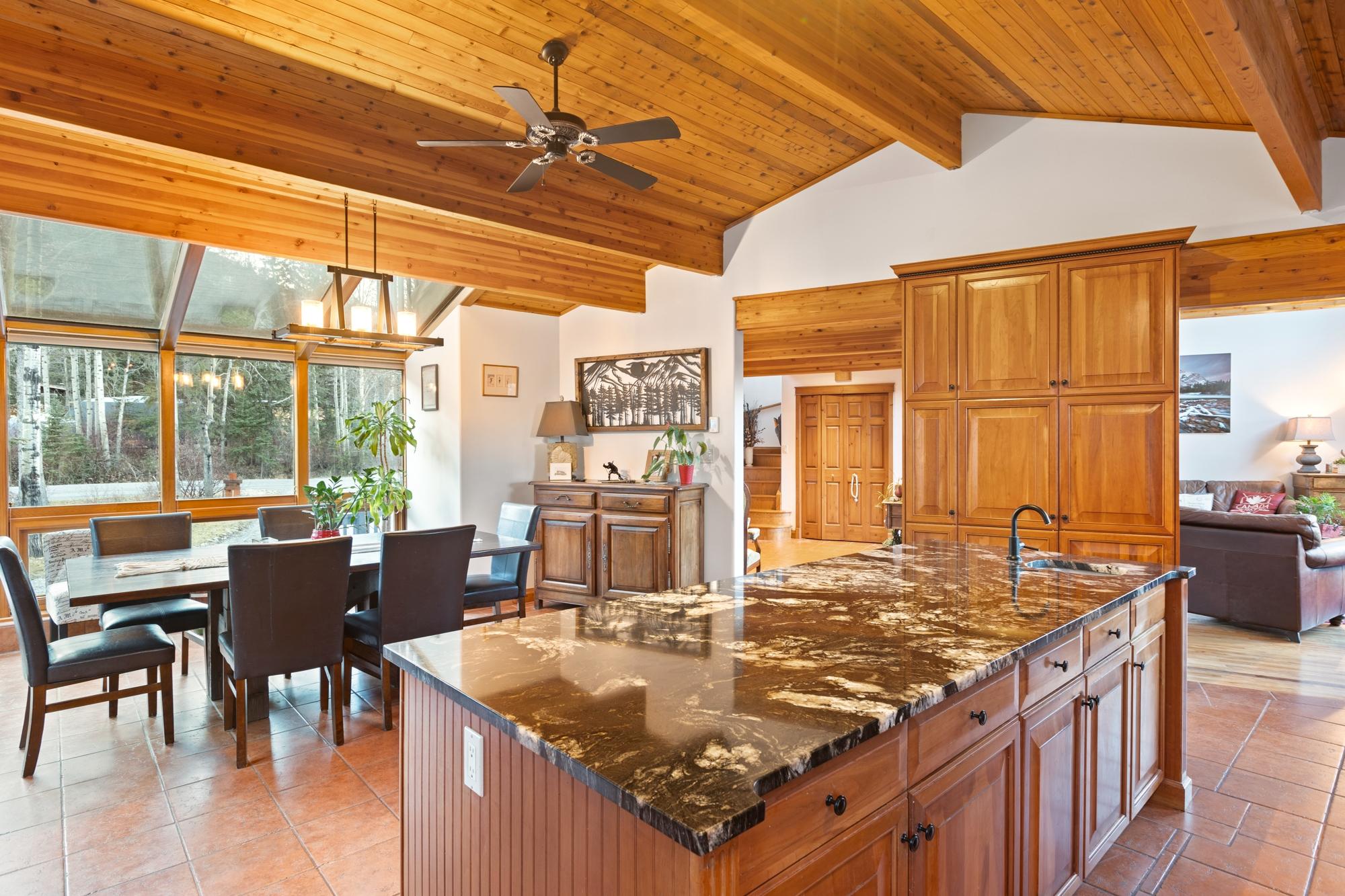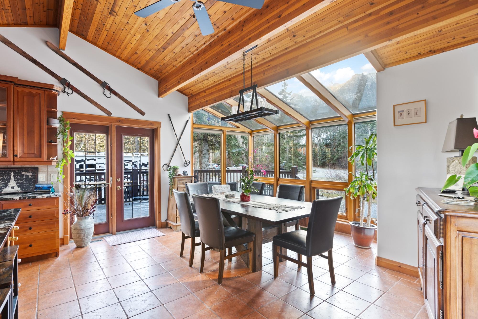 This half-acre walkout estate in peaceful Lac des Arcs offers uninterrupted Rocky Mountain views and over 3,400 sq ft of developed living space. Warm and inviting, it blends comfort with a strong connection to the outdoors. The bright main floor features maple hardwood, vaulted ceilings, a custom river-rock fireplace, and a chef-inspired kitchen with cherry cabinetry and a 9-ft island. A sun-filled solarium dining room frames stunning views, while a main-floor primary suite adds convenience with a 4-piece ensuite and nearby laundry. Upstairs, a second large primary includes a walk-in closet, full ensuite, and access to a shared balcony and loft. The fully developed walkout level is perfect for guests or multigenerational living, offering a second kitchen, huge rec room, two bedrooms, a full bath, and ample storage. Enjoy wrap-around deck access and close proximity to trails, climbing, the Bow River, Grotto Canyon, and a quick 10–15 minute drive to Canmore.