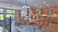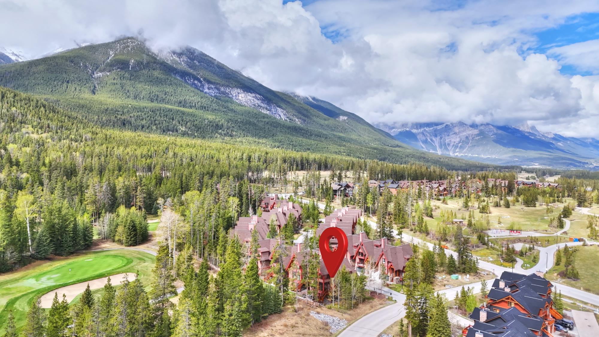 Quick possession now possible! Welcome to a beautifully designed multi-level townhome tucked into a quiet, forested pocket near Stewart Creek Golf Course. Surrounded by trees and mountain views, this home offers a peaceful setting and massive interior space totalling 2816sqft . The highly practical open-concept main floor features a cozy stone fireplace, hardwood floors, and a spacious dining area flowing into a well-equipped kitchen with granite counters and stainless appliances. Large windows fill the space with natural light, and the walkout lower level offers flexibility as a family room, guest area, or office. Upstairs, three bright bedrooms offer comfort and great views, while two outdoor living areas—a sunny main-floor deck and a private lower patio—connect you with nature. The double garage includes a storage nook and built-in storage cabinets. Whether for full-time living or weekend retreats, this is an ideal Canmore getaway. P.S. you can upgrade this townhouse to a 4 BED