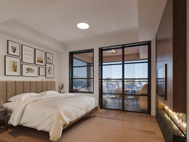 Experience refined mountain living in this modern studio suite at Rundle Park, offering 434 sq ft of thoughtfully designed living space. This stunning unit features elevated contemporary finishes, a 3-piece bath, stainless steel appliances, a cozy fireplace, and an inviting indoor/outdoor solarium — perfect for soaking in the mountain air year-round. Rundle Park sets a new standard for alpine lifestyle with Nordic-inspired amenities designed for relaxation and rejuvenation. Enjoy a sophisticated hydrotherapy experience complete with an outdoor pool featuring two temperature zones, a sunken firepit lounge, and sauna pods, cabanas, and a warming room that create a true spa-like escape. Families will appreciate the outdoor playground and the Airstream trailer playroom, while fitness enthusiasts can stay active in the state-of-the-art fitness studio framed by a stunning mountain backdrop. Don't miss the opportunity to make this retreat your own!