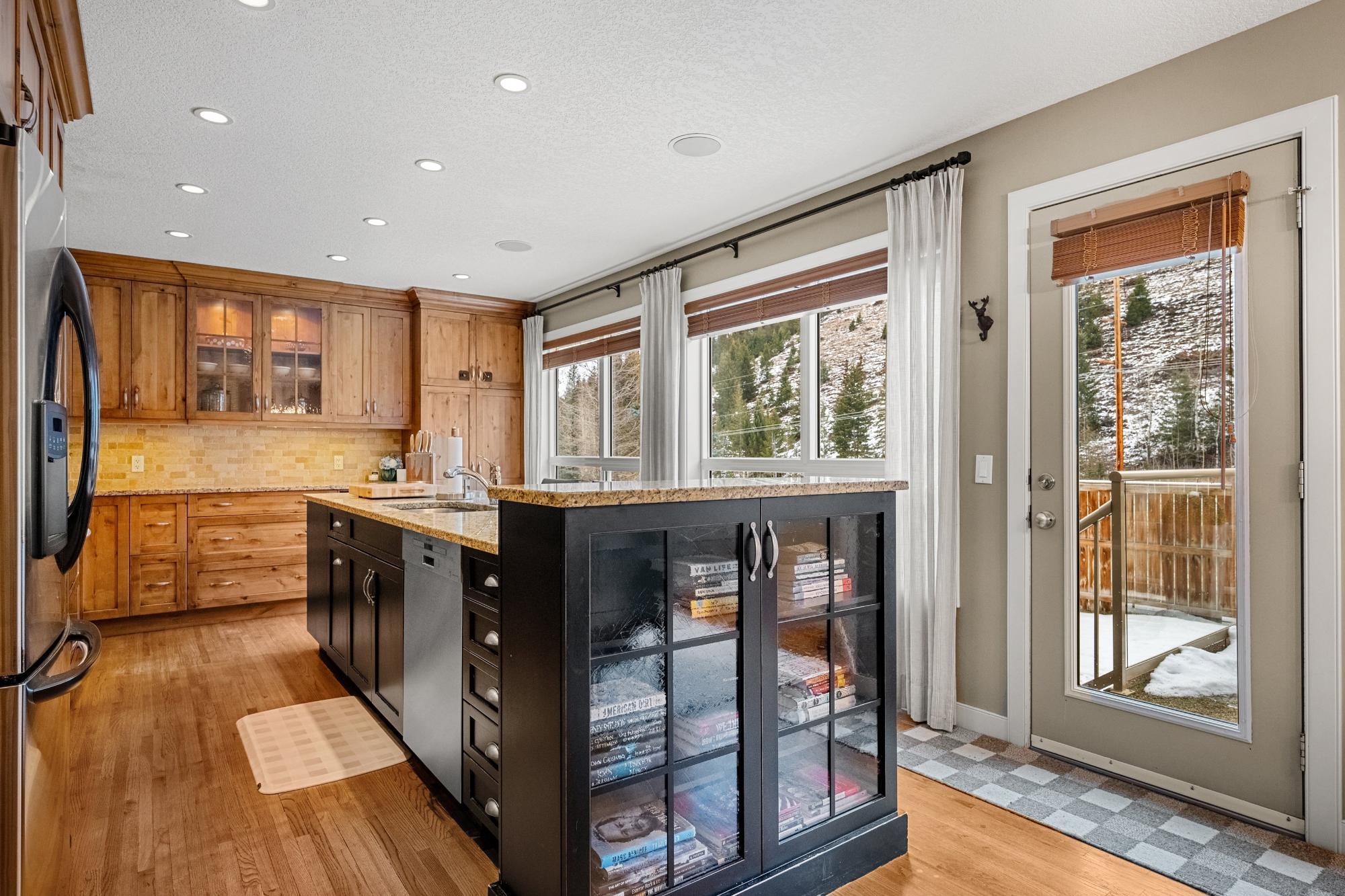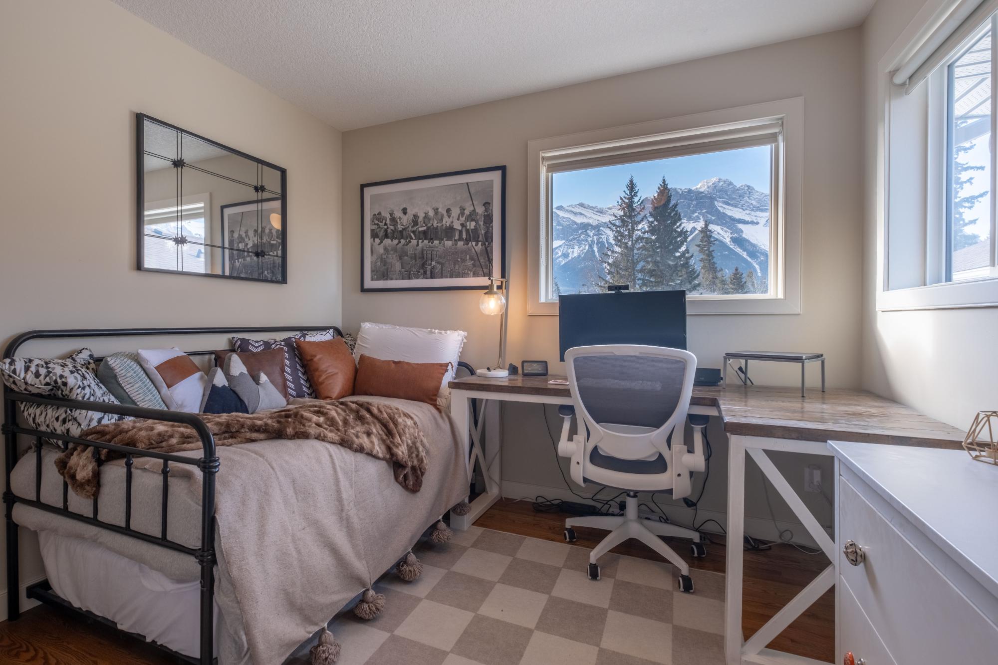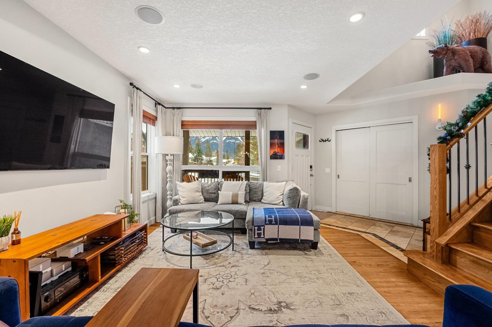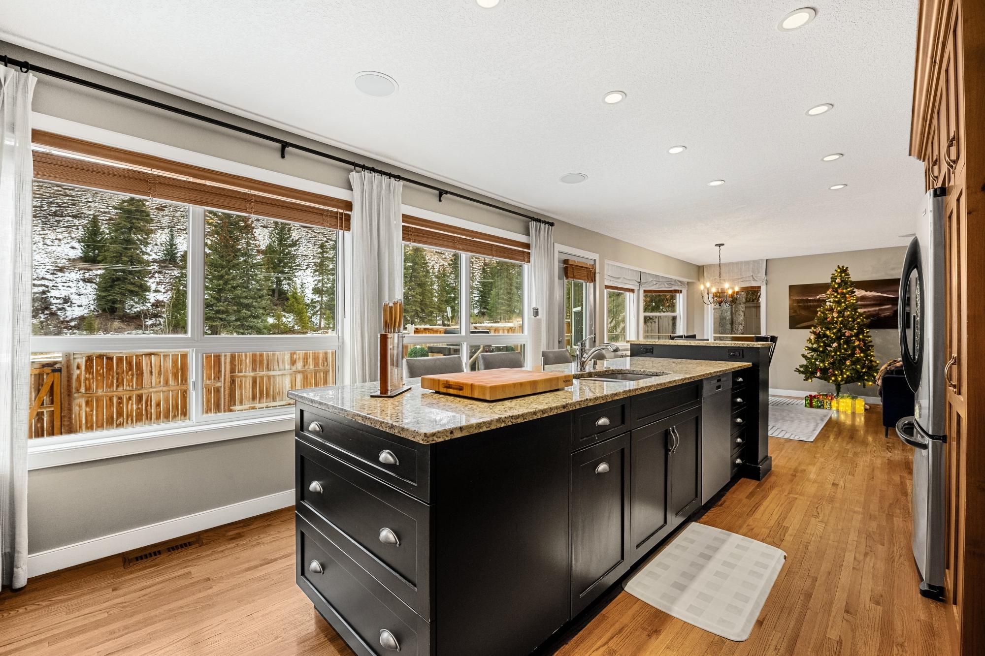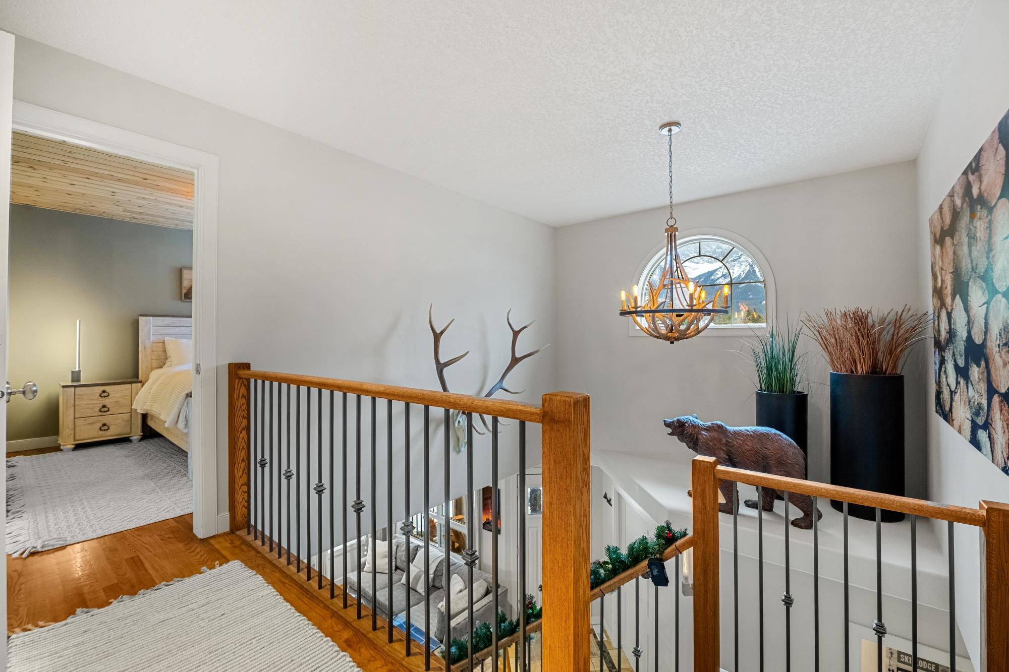 Step into a postcard in this beautifully reimagined family home. With 4 bedrooms, a fully finished basement, and major mechanical upgrades—including a newer roof, central A/C, updated furnace and hot water tank—there’s nothing left to do but move in. A tiled entryway leads to a grand staircase and warm, inviting living area. The showpiece kitchen features stunning cabinetry, granite counters, a beverage centre, gas stove, and a massive dining nook wrapped in windows with access to your private backyard oasis. Upstairs are three spacious bedrooms, including a perfect home office with corner windows framing Three Sisters and Lawrence Grassi views. The primary suite offers a cedar-accented ceiling, generous closet, and lovely ensuite with dual sinks and walk-in shower. The finished lower level adds a fourth bedroom, large rec room, full bathroom, and flexible gym or hobby space.