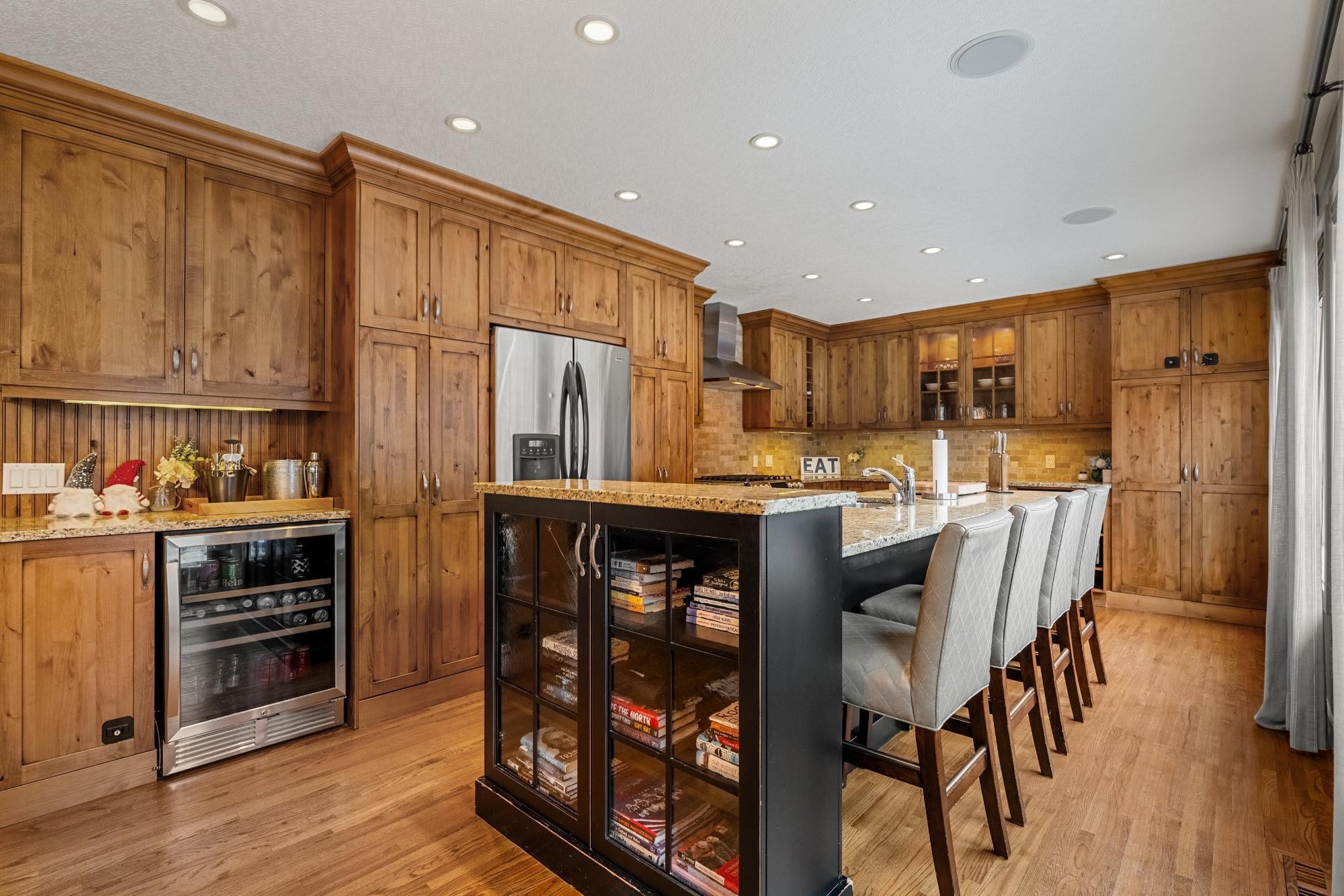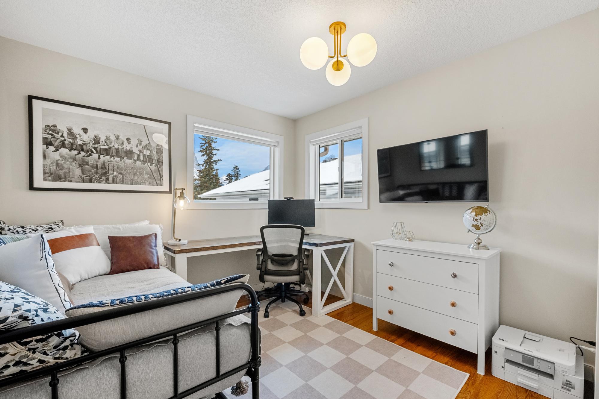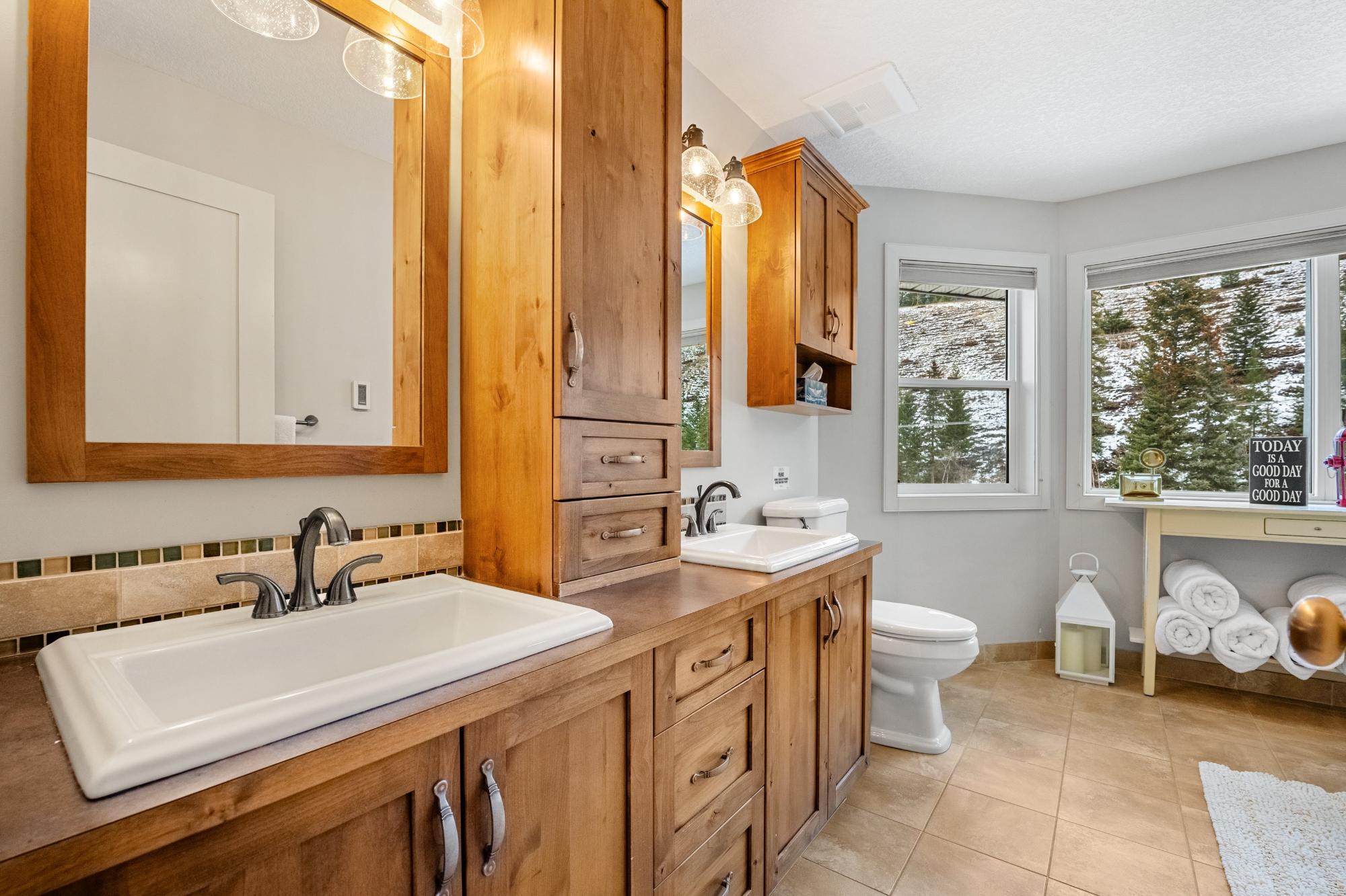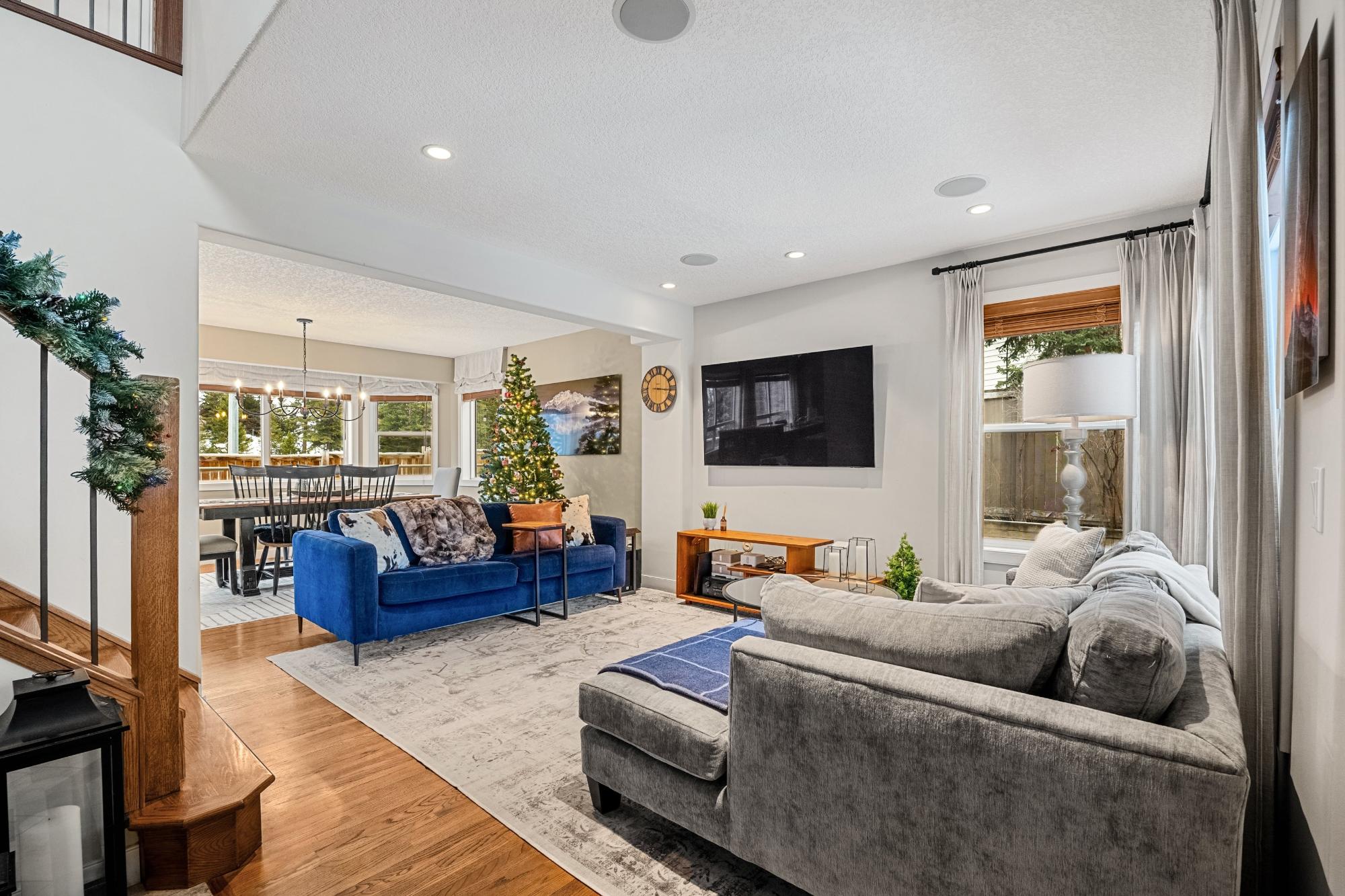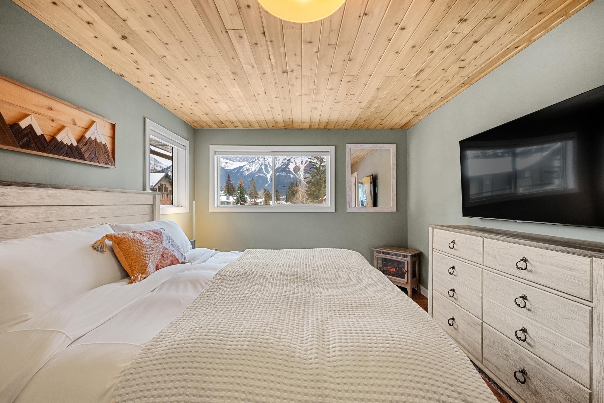 Step into a postcard in this beautifully reimagined family home. With 4 bedrooms, a fully finished basement, and major mechanical upgrades—including a newer roof, central A/C, updated furnace and hot water tank—there’s nothing left to do but move in. A tiled entryway leads to a grand staircase and warm, inviting living area. The showpiece kitchen features stunning cabinetry, granite counters, a beverage centre, gas stove, and a massive dining nook wrapped in windows with access to your private backyard oasis. Upstairs are three spacious bedrooms, including a perfect home office with corner windows framing Three Sisters and Lawrence Grassi views. The primary suite offers a cedar-accented ceiling, generous closet, and lovely ensuite with dual sinks and walk-in shower. The finished lower level adds a fourth bedroom, large rec room, full bathroom, and flexible gym or hobby space.