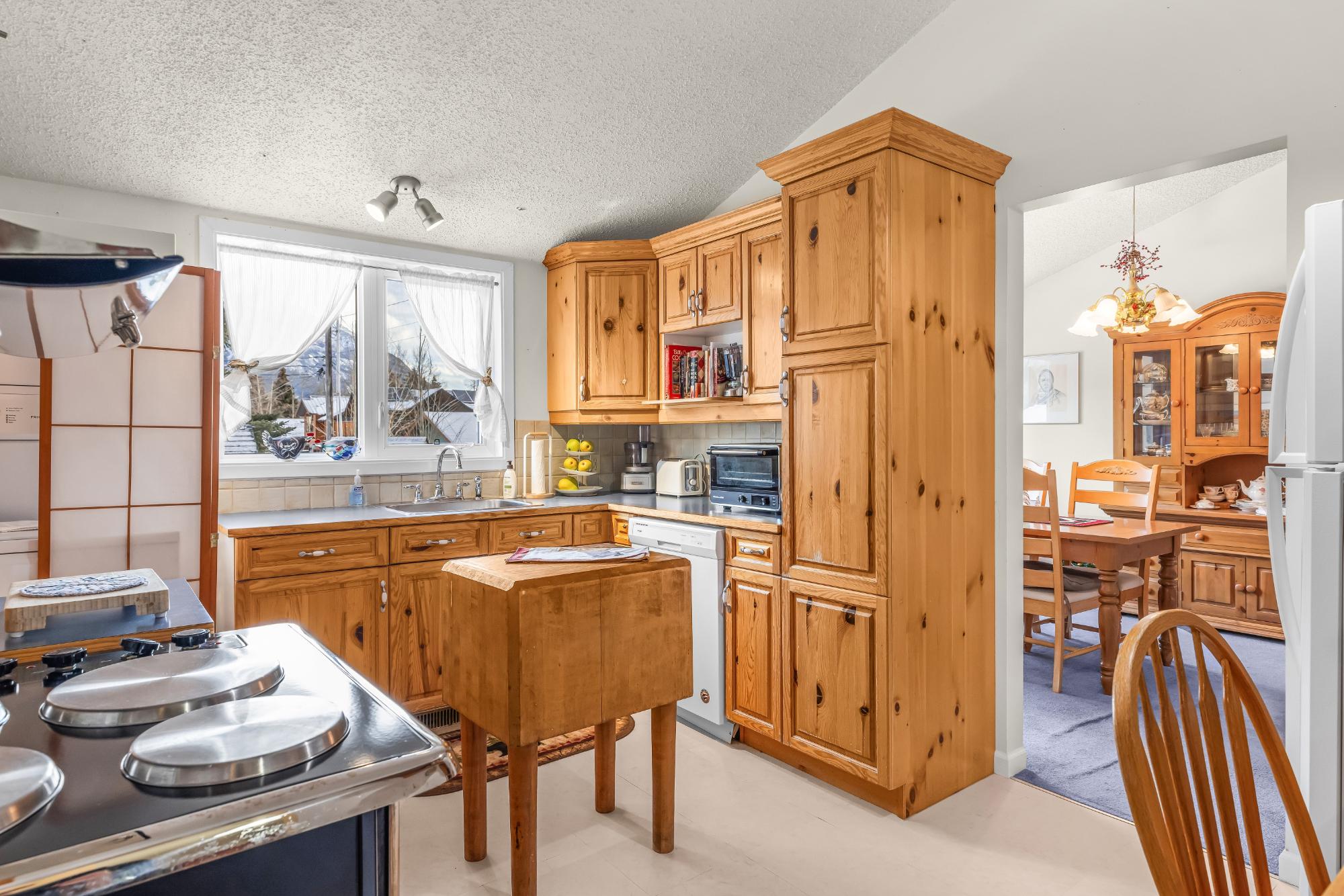 A charming single-family home located in the highly sought-after Lions Park. With over 2,300 sqft of living space, this 4-bedroom, 2-bath home offers a functional layout, picturesque views of Grotto and Lady Mac, and generously sized rooms filled with natural light. The main level features a bright living room, kitchen, and three spacious bedrooms, while the lower level includes an additional bedroom, a large family/recreation room, and a second kitchen—ideal for guests, multi-generational living, or suite potential. Situated on a 6,650 sqft lot, the property offers plenty of outdoor space to relax or expand. Enjoy direct access to nearby forested trails and the Bow River pathway, all just minutes from downtown Canmore’s shops, dining, and amenities. A rare opportunity to own in one of Canmore’s most desirable neighborhoods.