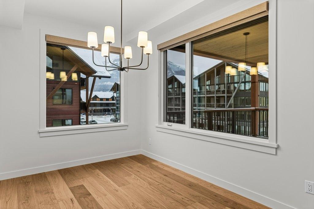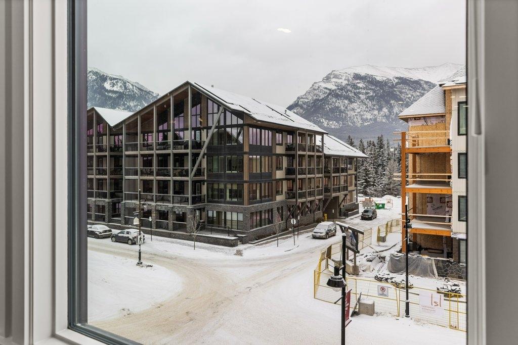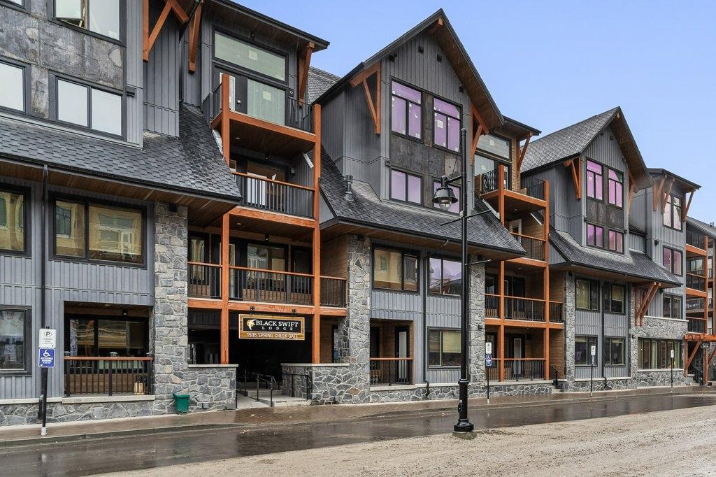 Welcome to 311 Black Swift Lodge, the newest complex in the highly sought-after Spring Creek community in Canmore. This 3rd floor corner unit offers spectacular views of Mt Lady MacDonald, Noble and Grotto Mountains and is located just steps from the central Spring Creek Plaza with shops and restaurants, as well as an easy walk along the creek paths to downtown Canmore. Featuring 2 spacious bedrooms + den and two luxury bathrooms, this home blends contemporary design with the tranquility of mountain living. Bathed in natural light with expansive windows this property features a gourmet kitchen with gas range, quartz counters stainless appliances, plentiful cabinets, and hardwood floors throughout the main living area making this a perfect home for entertaining and everyday living. Residents in Black Swift enjoy a lovely courtyard hot tub with expansive views of Ha Ling and the Rundle range as well as a large corner equipped exercise room. Contact your Associate for a viewing.