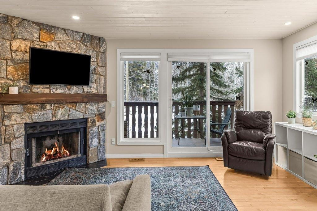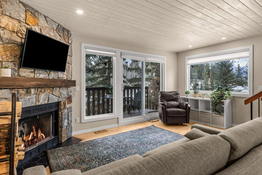 It’s all about the location in this rare opportunity to own in the highly admired Whisky Jack complex. This end corner unit offers exceptional privacy, natural light, and mountain views. Rundleview was established to place residents in the heart of Canmore’s adventure landscape & is known as one of the town’s quietest communities, set away from highway & rail noise. Located at the base of the Nordic Centre & offering immediate access to the best hiking, biking, & running trails in Canmore all while being a 15min walk to downtown. The Austrian-Alpine inspired complex has recently completed upgrades including all new windows and doors. The tastefully renovated home features three bedrooms & two bathrooms upstairs including a primary suite with private patio and ensuite, a bright main level with a great room layout, two decks & wood burning fireplace, & a lower level with kitchen, living area, bedroom, & three piece bath, offering excellent flexibility as guest space or income suite.