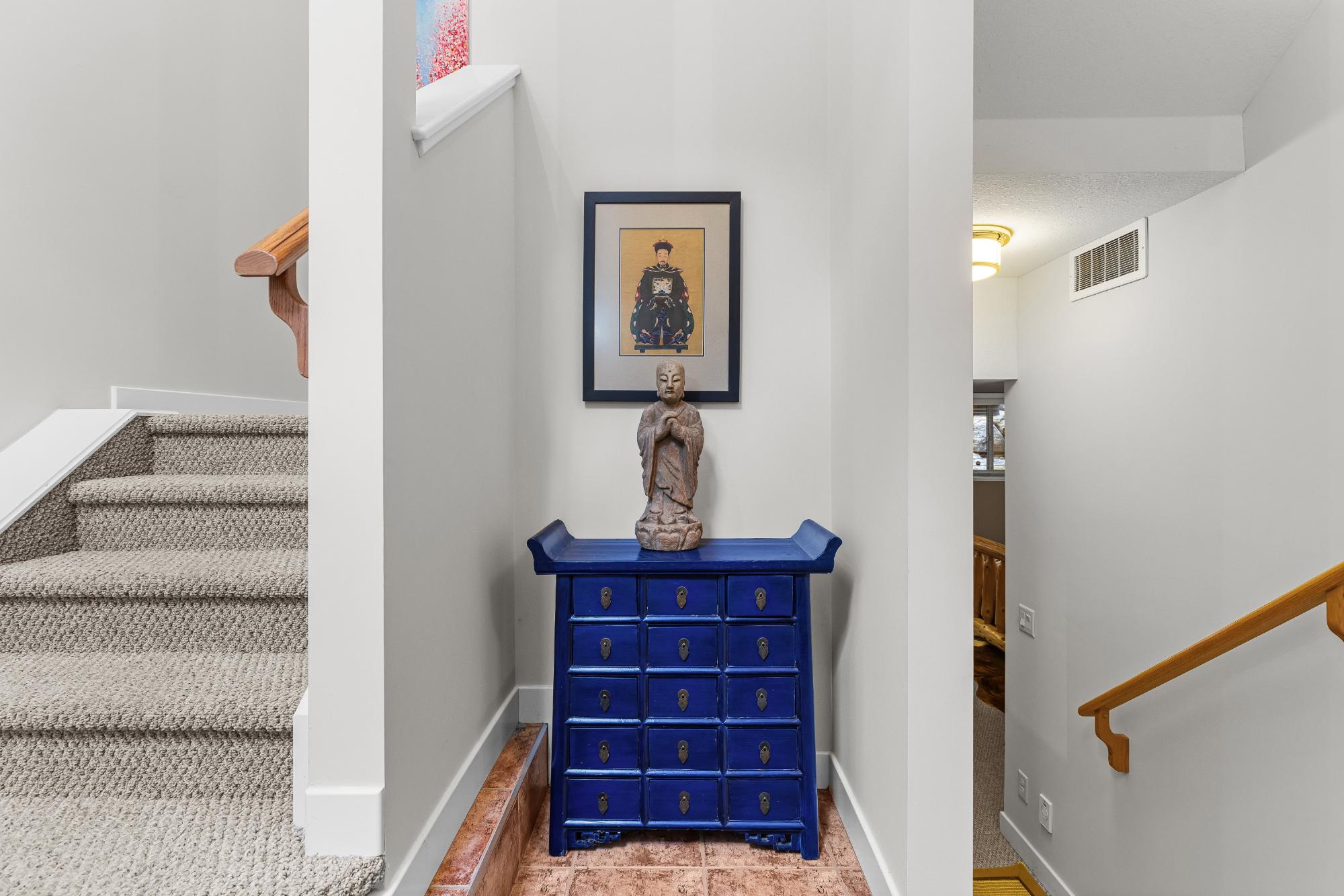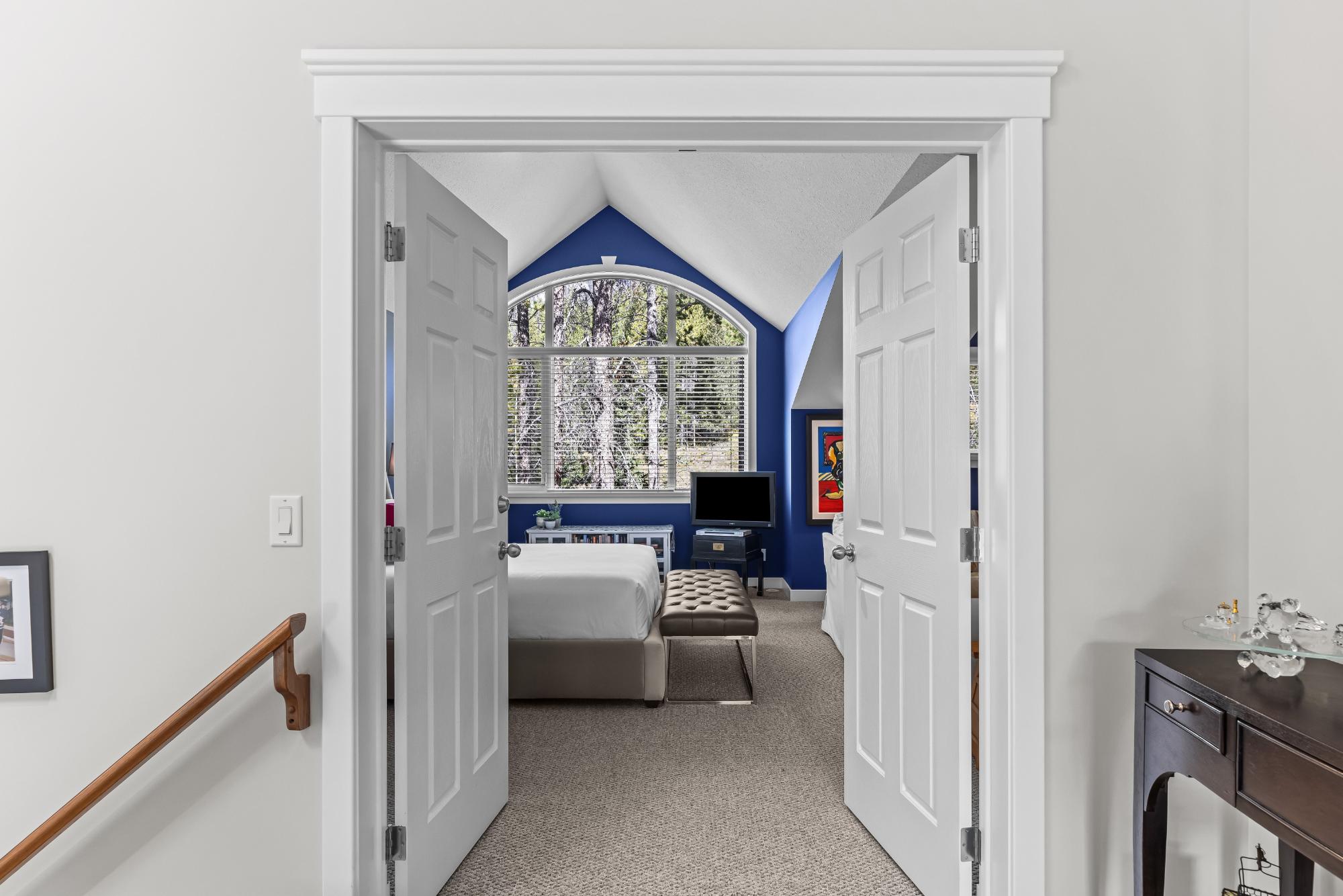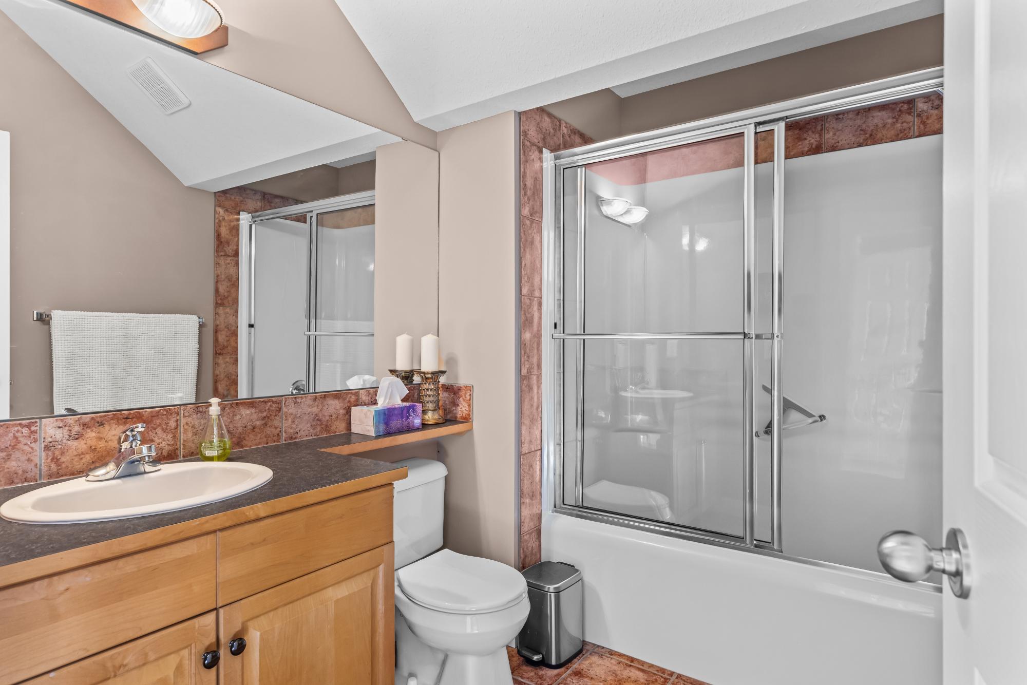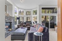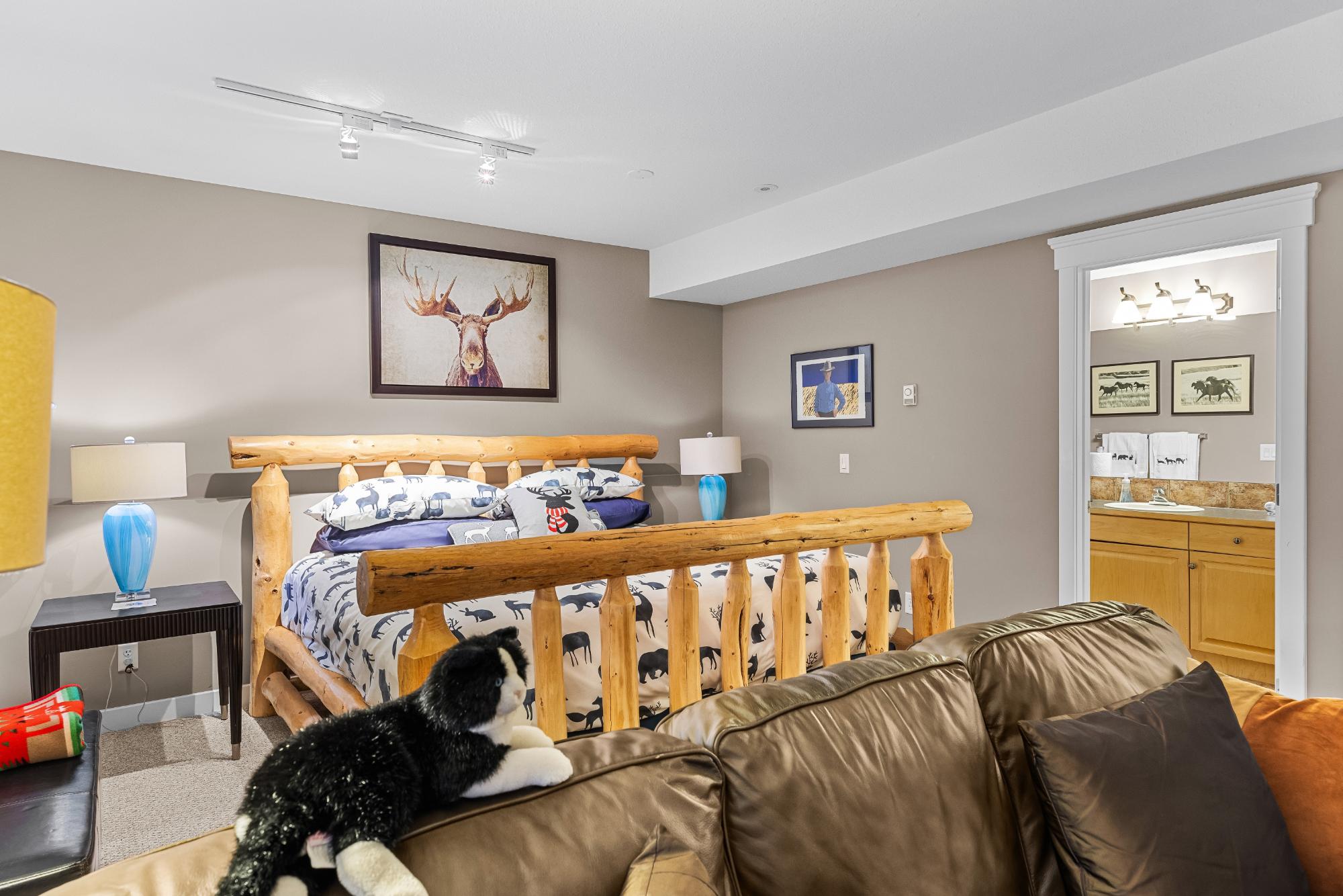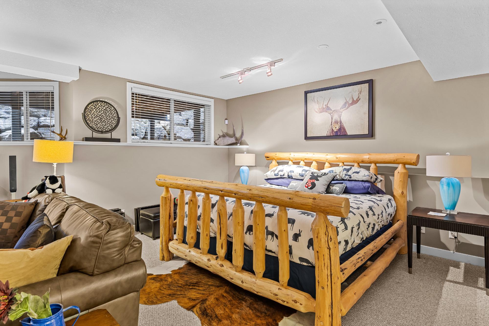 A rare opportunity in Aspen Glen, Grizzly Ridge — a serene end-unit townhome tucked along the coveted fairways of Silvertip Golf Course. This spacious 3-bed, 4-bath home blends mountain charm with thoughtful design. Skylights over the foyer and staircase brighten the entry, while the sunken living room boasts soaring ceilings and a wall of windows overlooking hole #1. A cozy fireplace, spacious dining room, and breakfast nook highlight sweeping views of the iconic Three Sisters. Upstairs, two bedrooms each enjoy their own ensuite, plus laundry for convenience. The lower level offers flexibility with an optional third bedroom or family room, complete with fireplace and 4-piece bath. With air conditioning, a double-car garage, abundant light, privacy, and its end-unit setting, this townhome is perfect as a full-time home, weekend retreat, or gathering place for family and friends. Backed by golf course serenity and fronted by mountain views, it embodies the Canmore lifestyle