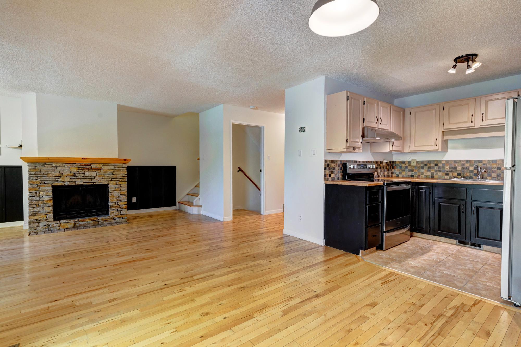 Thoughtfully updated and freshly painted property, offering nearly 1,800 sq ft of comfortable living across three well-designed levels. The main floor boasts a bright, functional kitchen that flows seamlessly into a spacious living room with a cozy fireplace and an inviting dining area — perfect for everyday living or entertaining. Step outside to the oversized deck, ideal for soaking up the sun or hosting relaxed outdoor gatherings. Upstairs, you'll find three generously sized bedrooms and a four-piece bathroom, providing plenty of space for the whole family. The fully developed lower level adds even more living space with a large family room and ample storage options. Additional highlights include an attached carport with room for two cars, separate storage — perfect for bikes, skis and gear. Located in a well-maintained, professionally managed complex just minutes from downtown, the Bow River and endless hiking and biking trails.