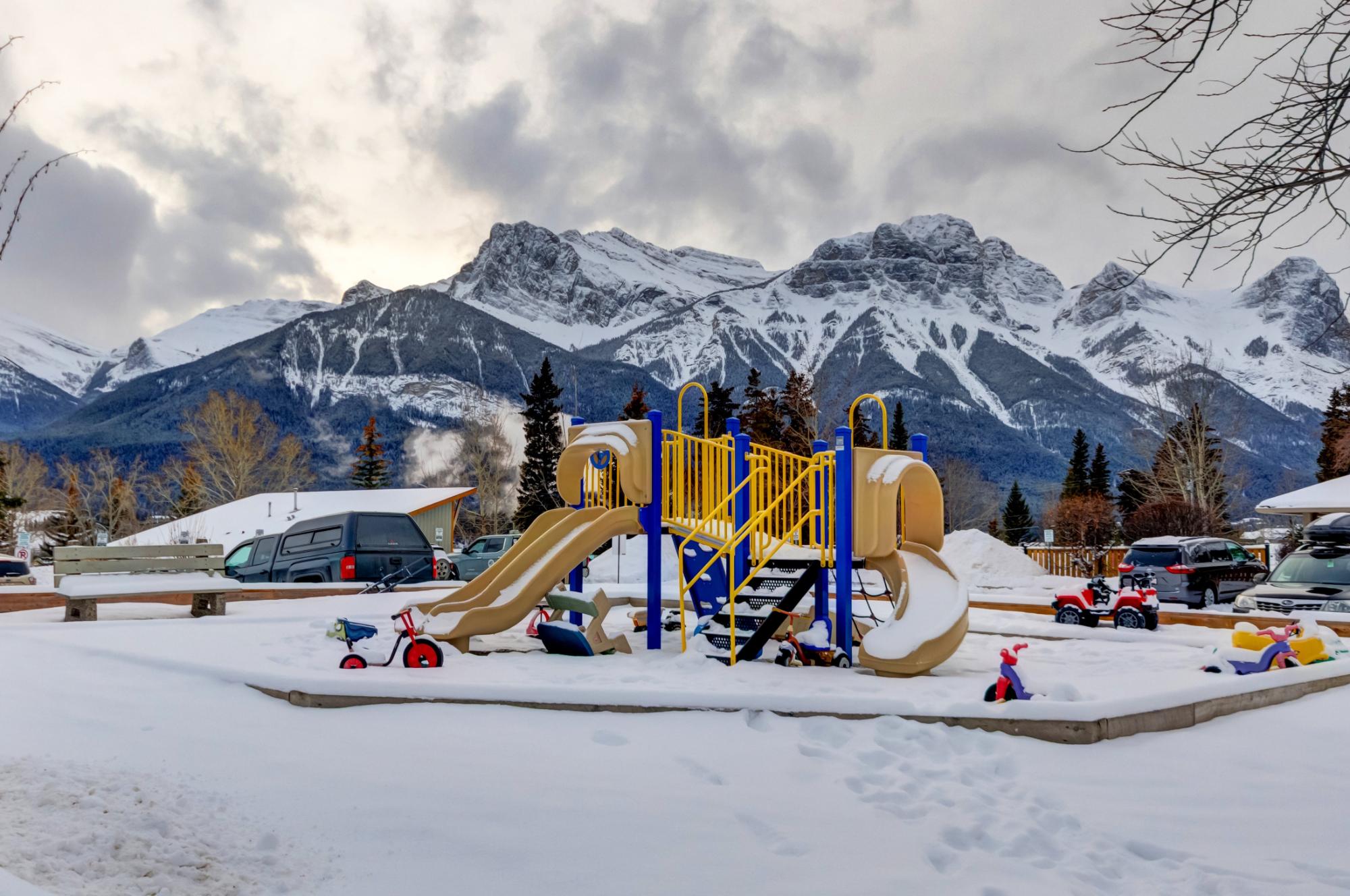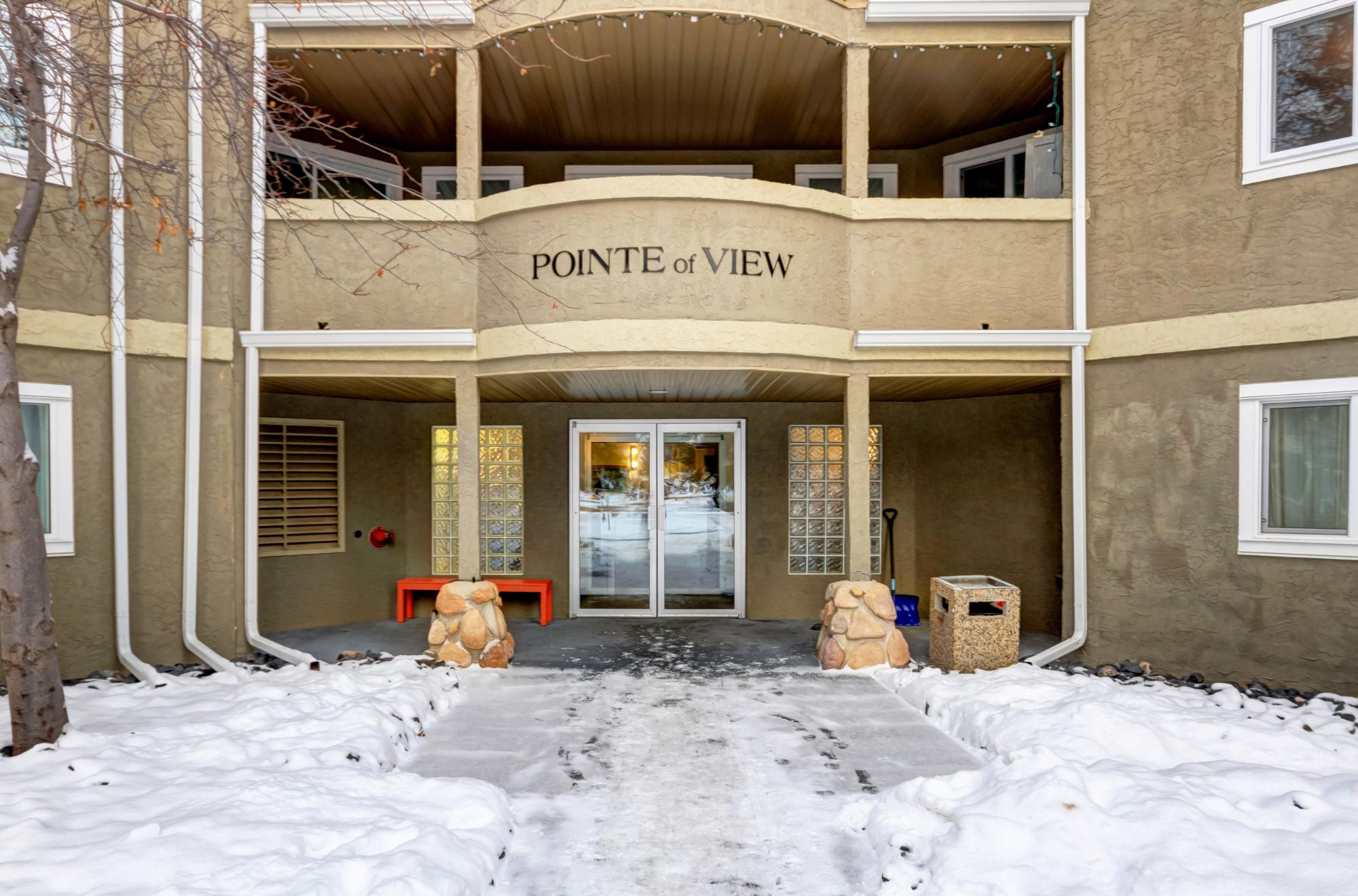 This thoughtfully designed two bedroom, two bathroom residence is located in the well maintained Pointe of View complex and features new flooring throughout. The open concept layout offers a welcoming living space centered around a cozy gas fireplace, complemented by large windows that frame panoramic mountain views. Step outside to a generous patio, perfect for enjoying fresh mountain air. The primary suite features a walk through closet and a private ensuite, while a second well proportioned bedroom and full bathroom provide comfortable accommodations for family or guests. Additional highlights include in suite laundry and assigned parking. Situated in a low density neighbourhood, residents enjoy access to an outdoor playground ideal for young families. This pet friendly community is located directly across from world class trail systems, making it an excellent choice for outdoor enthusiasts seeking both comfort and convenience in the heart of Canmore.