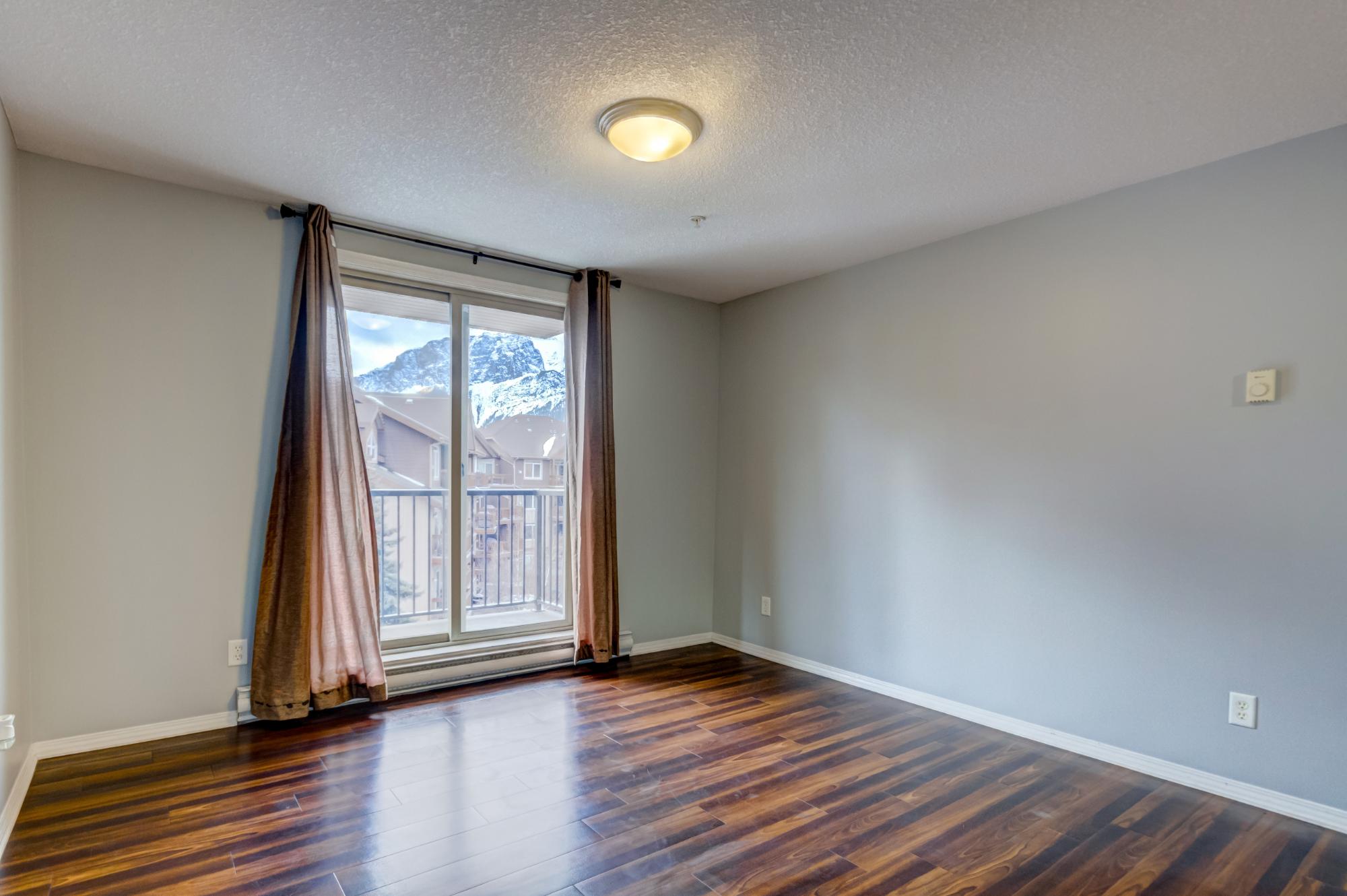 This 2 bed/2 bath Fairholme Village condo is a true gem & a rare opportunity.It’s ideal as a first home,upsizer home, or perfect for a weekend getaway to Canmore. The smart, open-concept layout makes everyday living or entertaining easy, while the sunny balcony delivers incredible mountain views, including the Three Sisters.Both bedrooms enjoy natural light, more mountain views, plus a private 4 piece ensuite and walk in closet just off the primary bedroom. There's also a 3 piece bath off foyer. Laundry is on the same floor as the unit, down the hall. This fantastic condo is well-positioned in the complex, and only minutes to downtown, the Shops of Canmore, shopping, services, restaurants, amenities, public transit, and many scenic multi-use trails. One indoor secured storage locker, indoor secured bike storage, an outdoor parking stall, fitness room, and meeting room, round out the package.RMS:635.34 sq ft .Vacant & ready for quick possession.