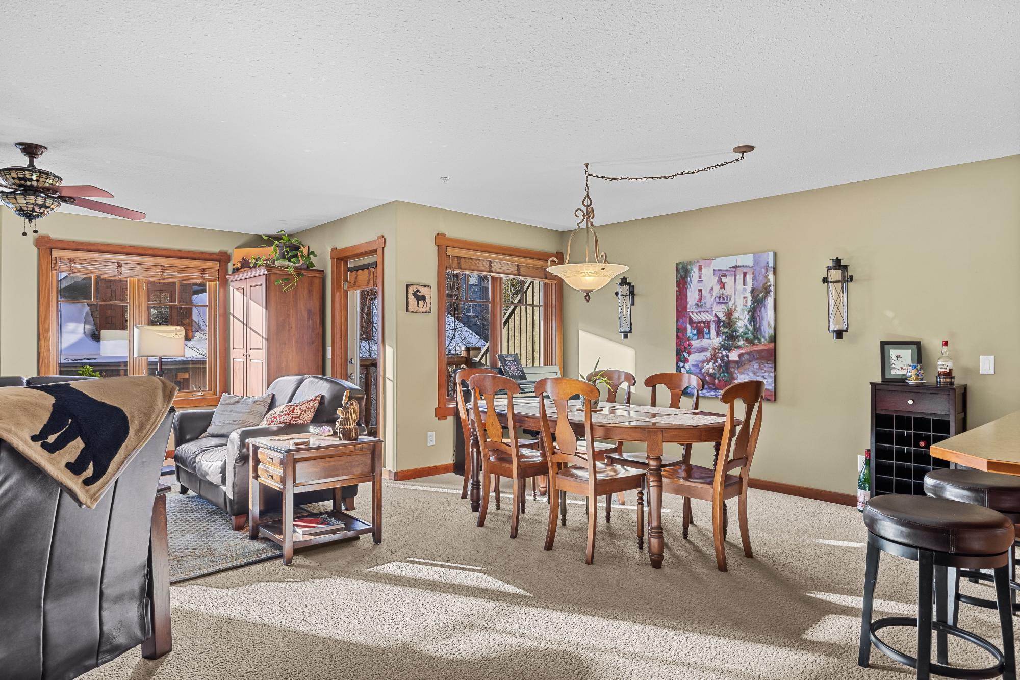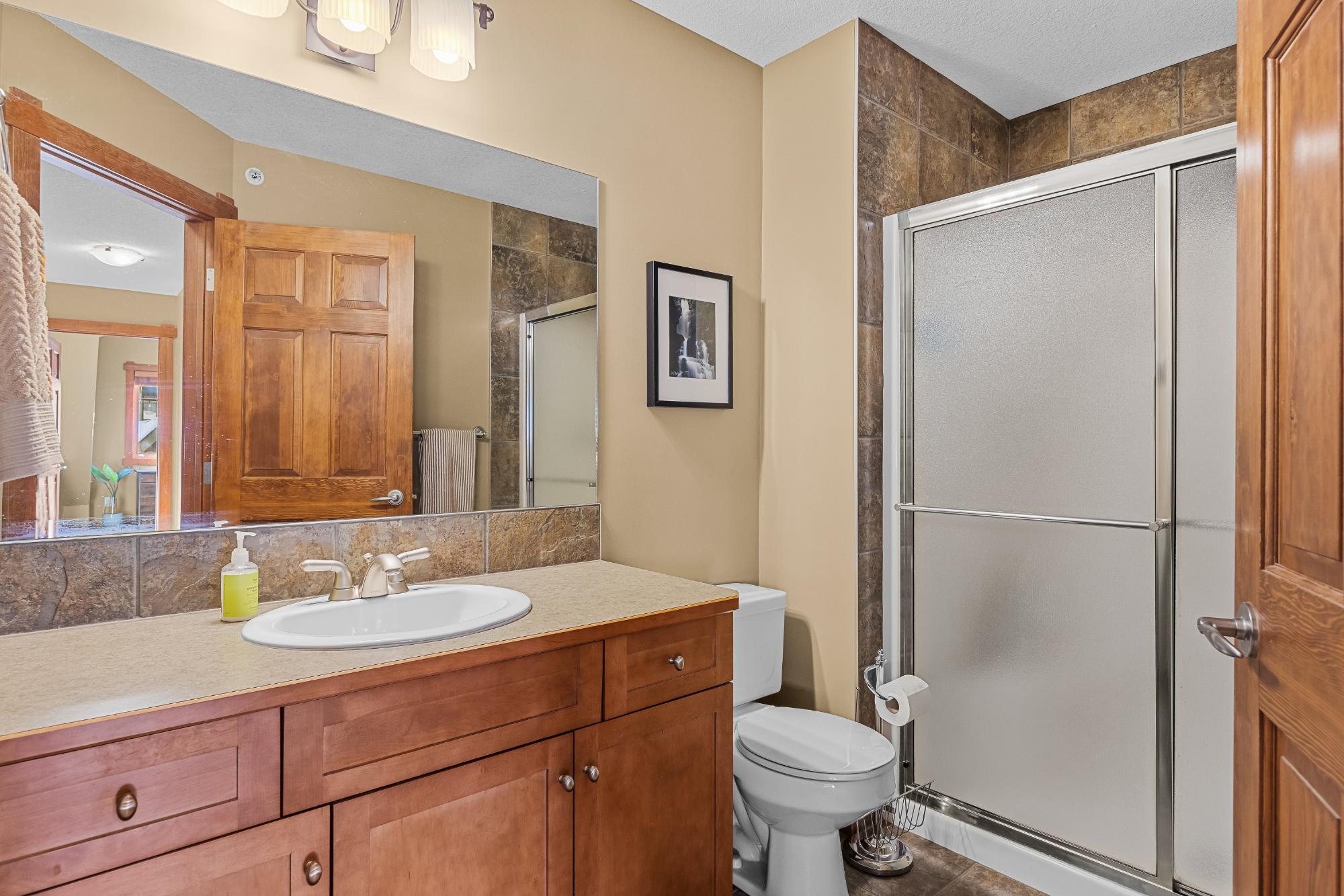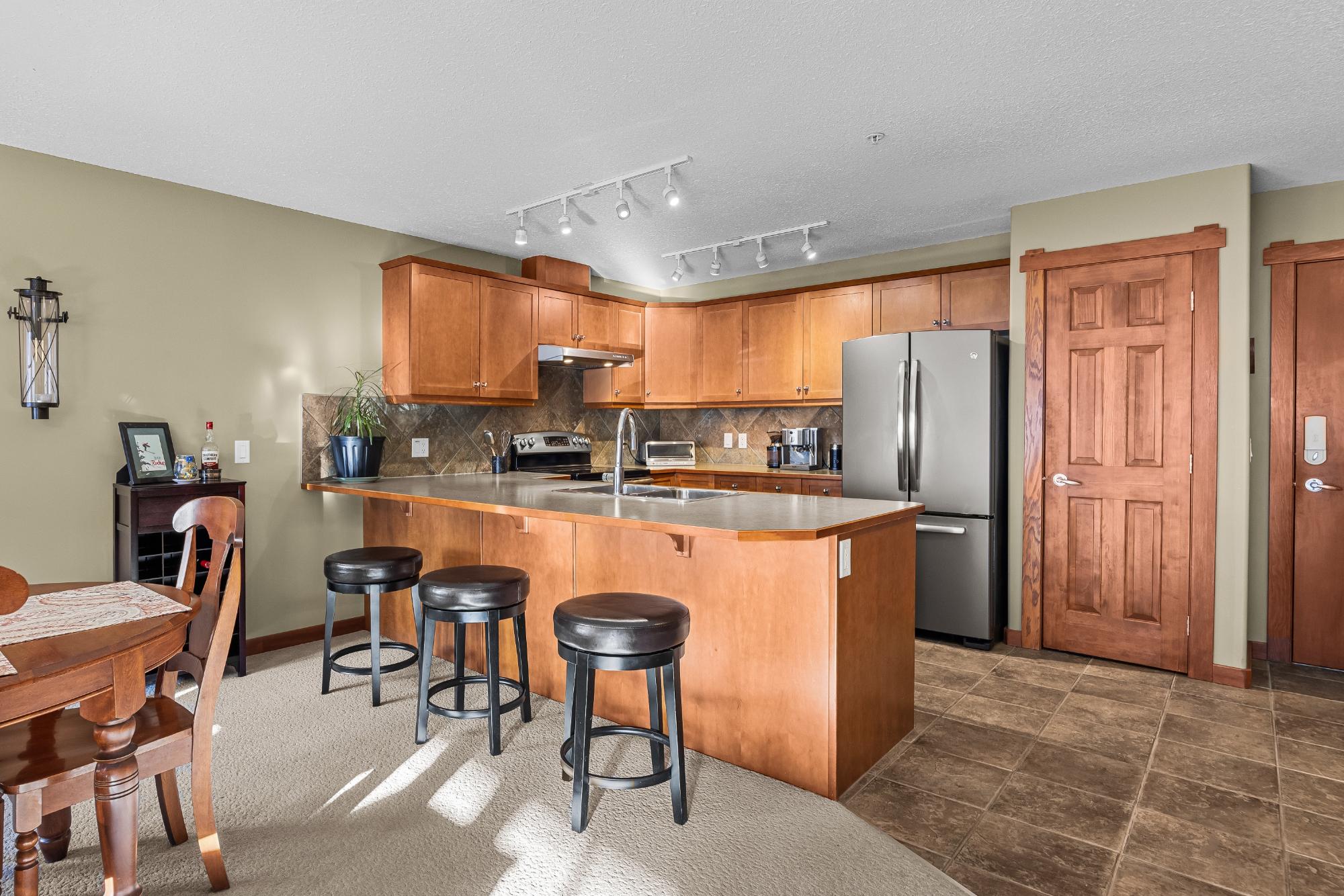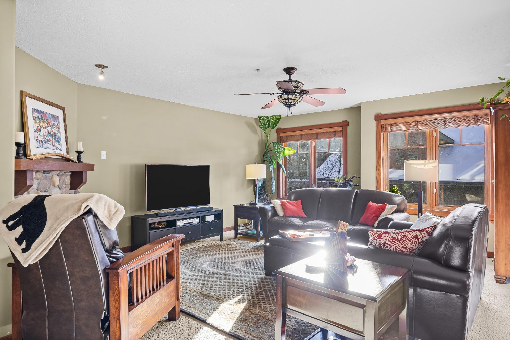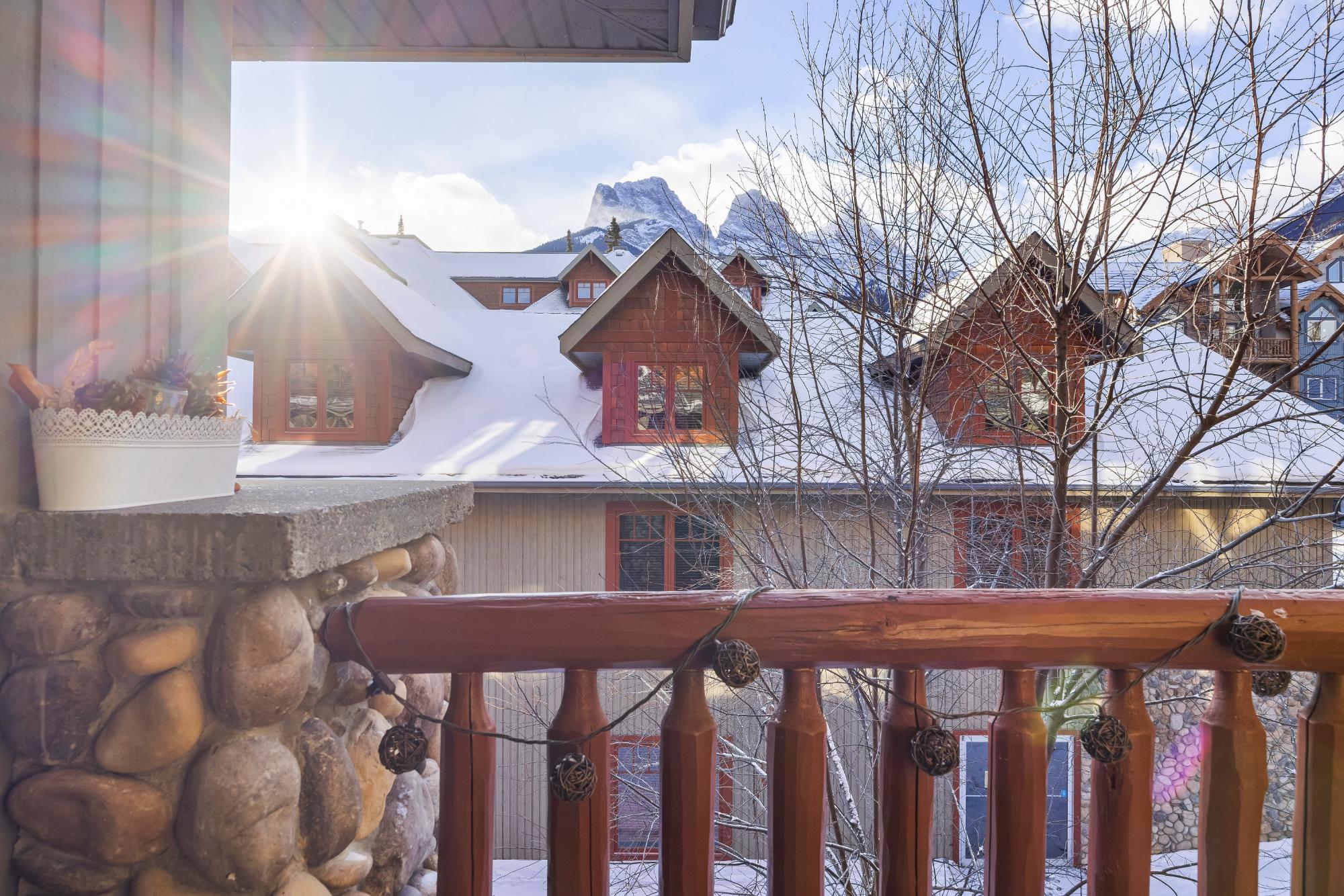 This is the sunny home with mountain views you’ve been waiting for! Located on the quiet south side of the building and spanning the top two floors, this fabulous 2 bedroom, 2 bathroom condo enjoys plentiful sunshine year-round, with enviable views of the Three Sisters Mountains. The spacious open-plan living level is flooded with light from the south facing windows, and benefits from the privacy of mature trees. Step out onto the large sunny deck and soak up the sun and mountain views! Upper level features generous bedrooms with vaulted ceilings and mountain views, ensuite and 2nd full bathroom. The adjacent amenities building offers abundant relaxation opportunities and entertainment for your family and guests, including indoor and outdoor hot tubs, well equipped gym, a sauna, pool tables, lounge area with large screen TV, and ping-pong table. Easy access to endless trails and the new Gateway retail park. One titled, heated, underground parking space and secure storage (9'x5').