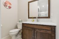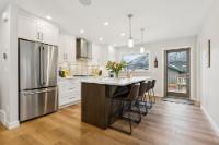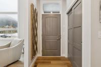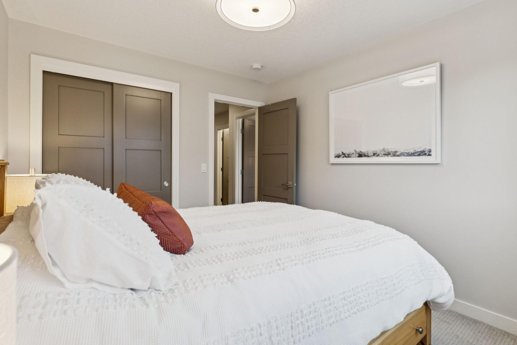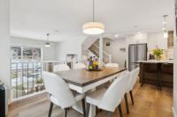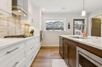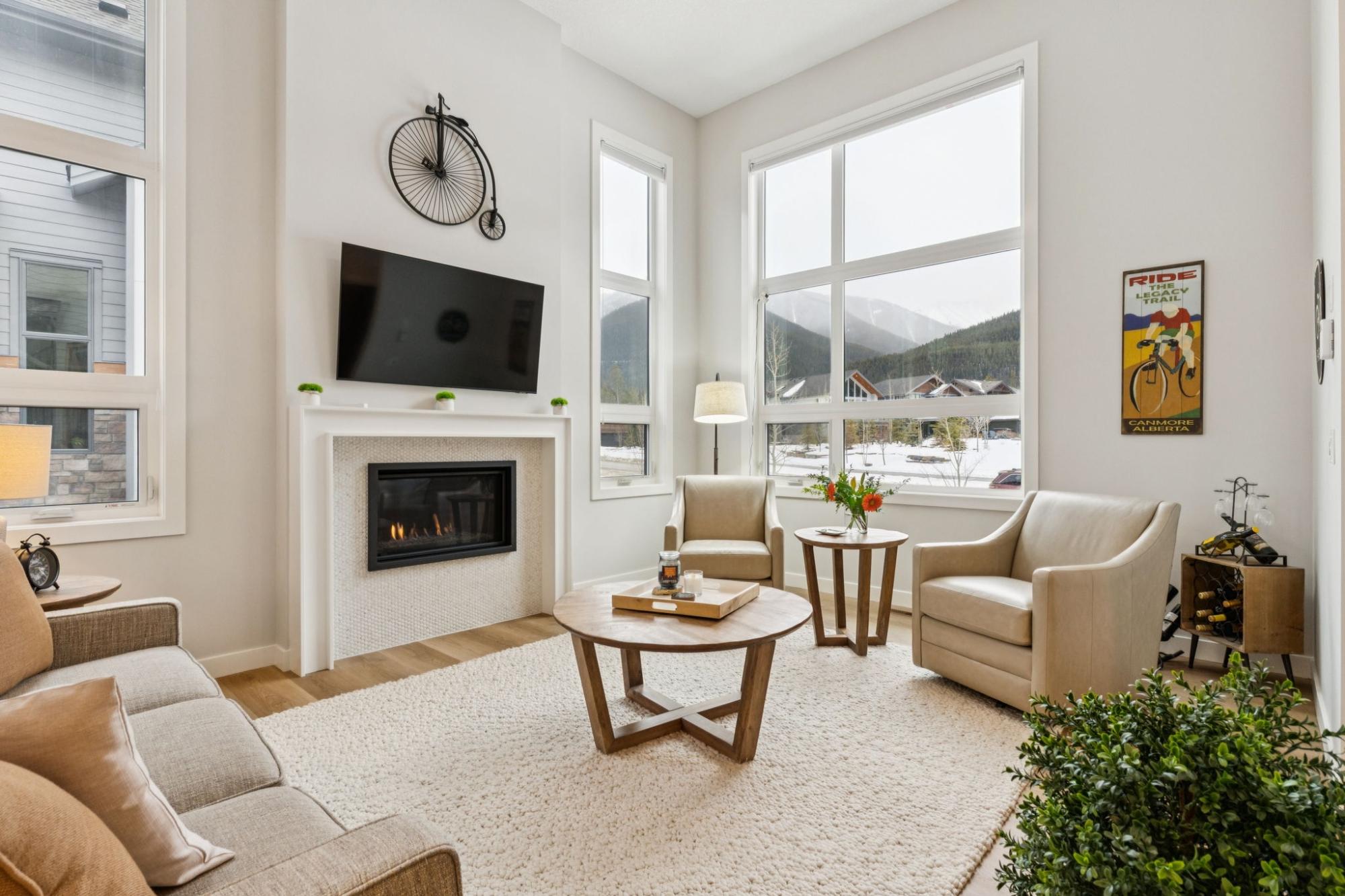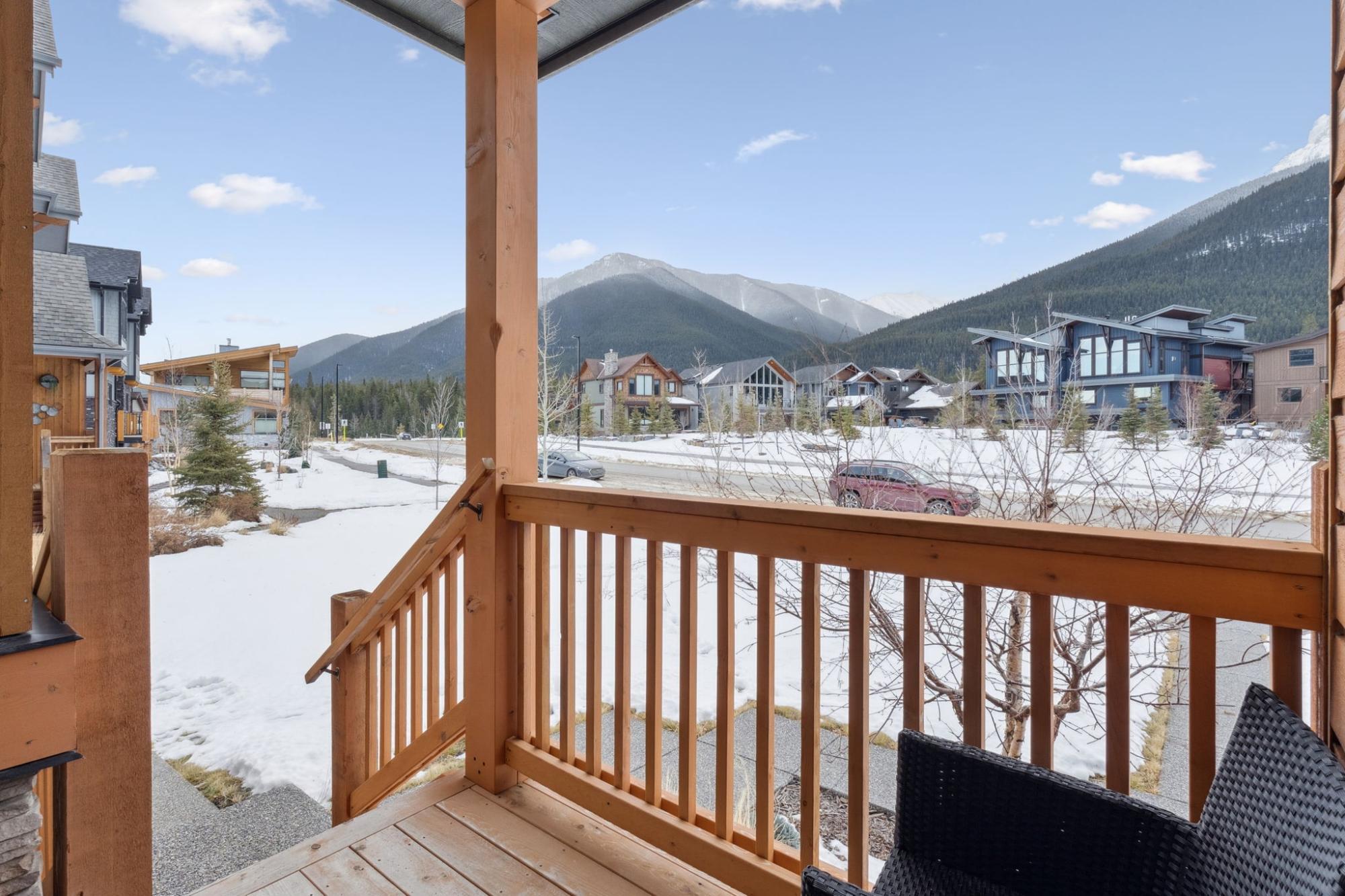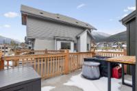 This thoughtfully designed, south-facing mountain home offers over 1,800 sq ft with a well-planned layout that maximizes natural light and mountain views. Expansive windows create bright, open living spaces. The kitchen anchors the main level with GE Café appliances, a six-burner gas cooktop, convection oven, ample storage, and a large quartz island ideal for gathering and everyday use. A wrap-around deck with gas hookup extends the living space outdoors. The primary bedroom features a four-piece ensuite with double vanity, while two additional bedrooms and a four-piece bathroom complete the upper level. The lower level offers flexible space for a recreation room, gym, or home office, along with a full bathroom. With built-in speakers on the main level, Hunter Douglas blinds throughout, and a location near Stewart Creek Golf Course with easy trail access, this home delivers comfort, functionality, and easy mountain living.