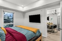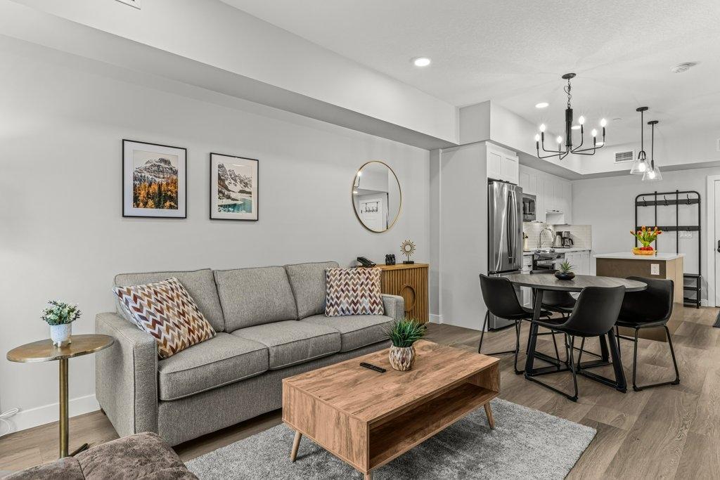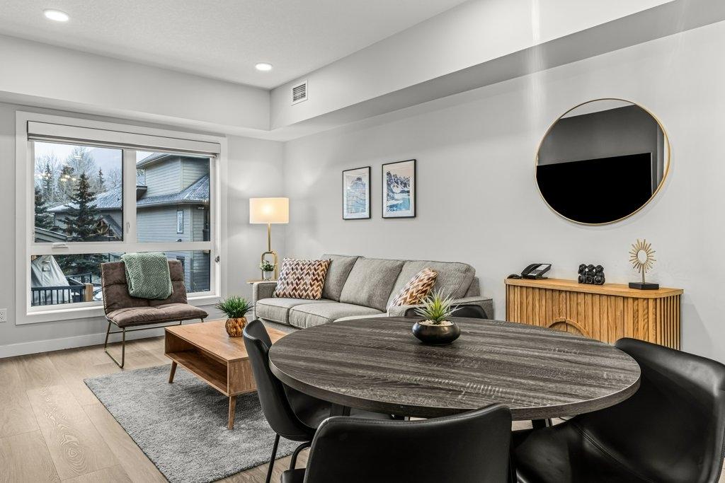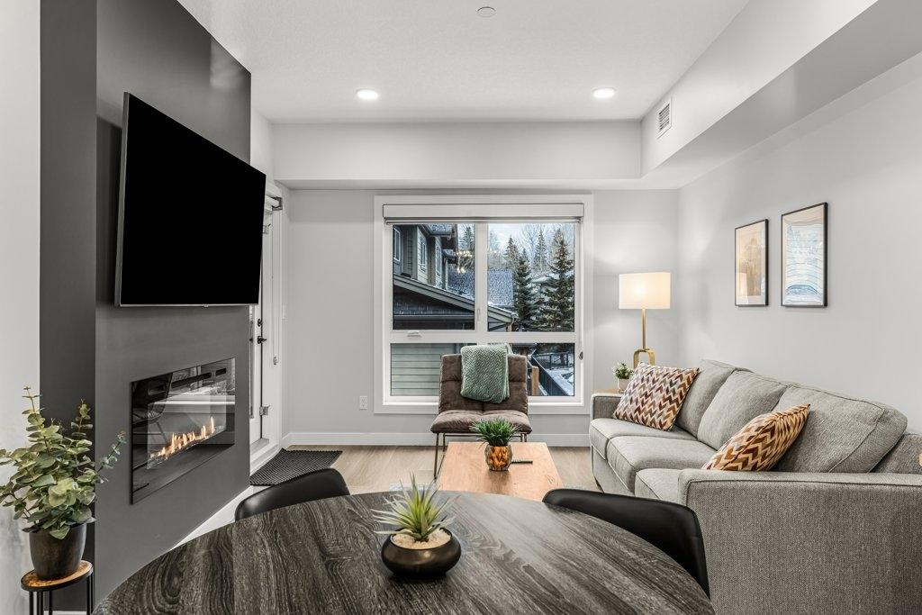 Sparrowhawk is the newest addition to the Bow Valley’s hotel condo market, completed in 2024 and offering modern, low-maintenance ownership. Unit 2209 is a stylish 1-bedroom, 1-bath suite on the second floor with just under 600 sq. ft. of well-designed living space. The interior features vinyl plank flooring, a fully equipped modern kitchen with stainless steel appliances, white granite countertops, a sleek fireplace, flat-screen TVs in the living room and bedroom, and an in-suite stacked washer and dryer. The unit is offered fully furnished and turnkey and has been operating successfully as an Airbnb for over a year with solid returns. Enjoy mountain views from the private balcony with BBQ and from inside. Additional highlights include an electronic door lock, owner’s locker in the unit, assigned underground storage, underground parking, a large gym, and an outdoor pool and hot tub. Located approx. 10 minutes from Canmore with nearby coffee shop, gas station and liquor store.