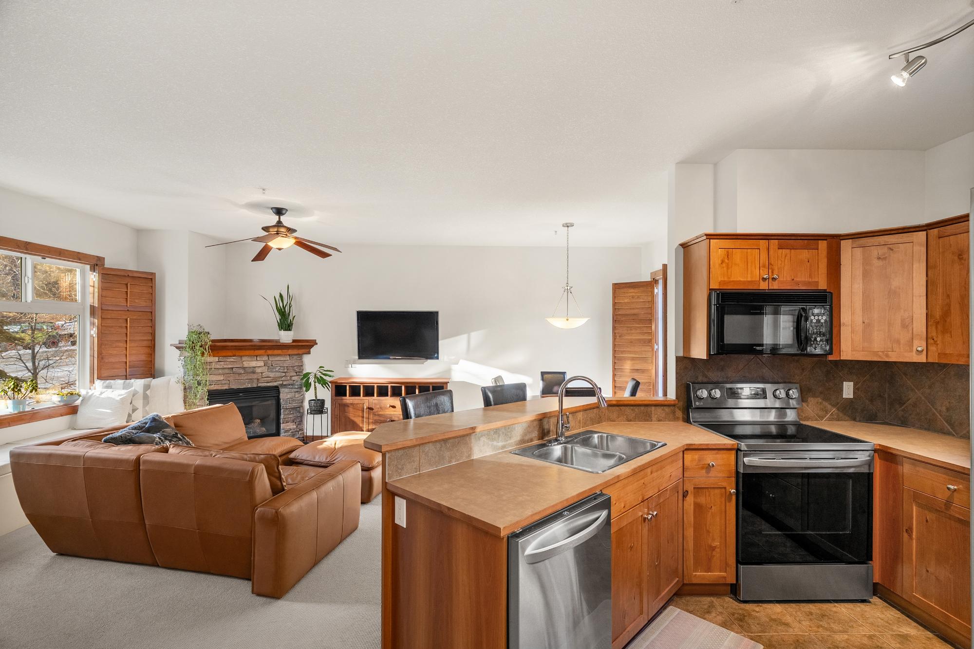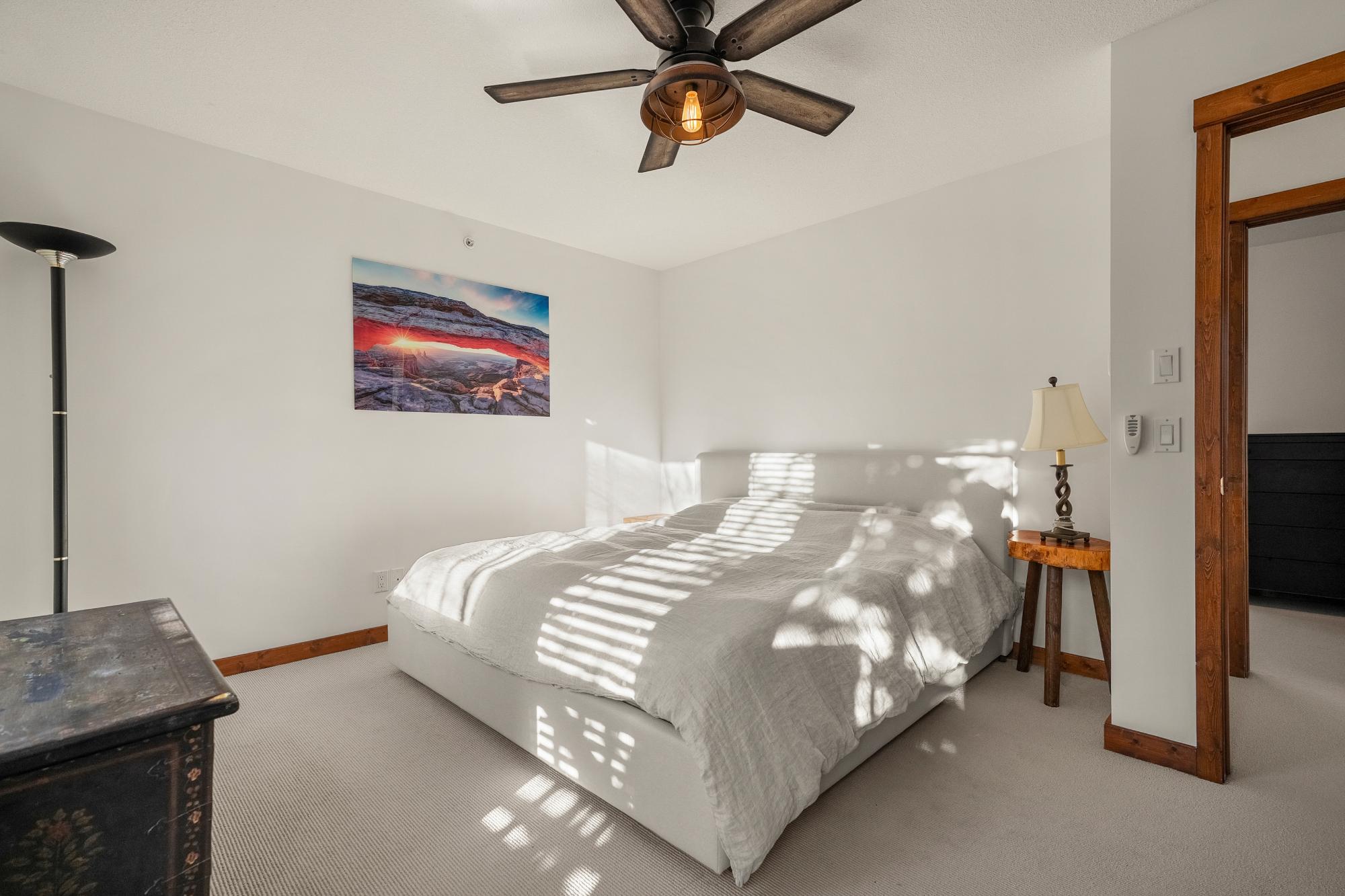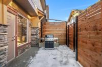 This bright and spacious 2 bedroom end-unit townhouse offers a wide, open-concept layout that feels welcoming and functional from the moment you step inside. The main living area is filled with natural light, enhanced by fresh white paint and large windows that capture mountain views and excellent sun exposure. The kitchen features new appliances and flows seamlessly into the dining and living spaces, ideal for everyday living and entertaining. Tucked discreetly off the living room is a built-in Murphy bed, providing a comfortable guest option when needed while remaining completely out of the way day to day. Step outside to a private, fully enclosed rear patio that offers a quiet, sunny outdoor retreat. Upstairs, the home features two well-proportioned bedrooms, including a primary bedroom with a 2-piece ensuite, along with a full bathroom and a convenient main floor half bath. A rare double car garage, reasonable condo fees, and close proximity to the new Gateway shopping centre.