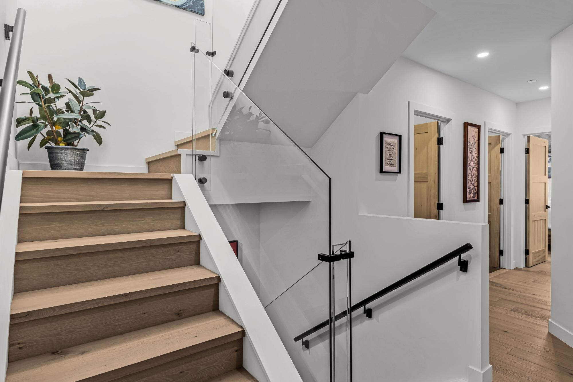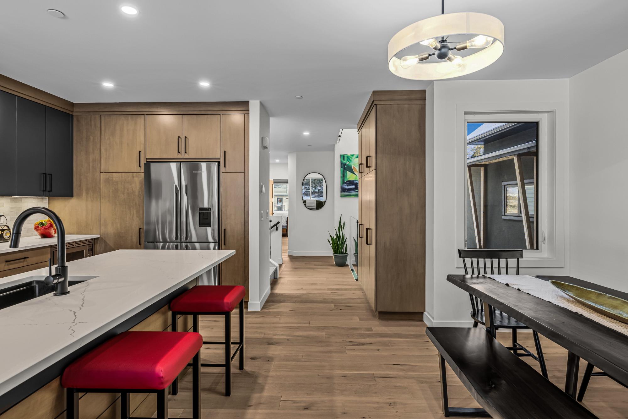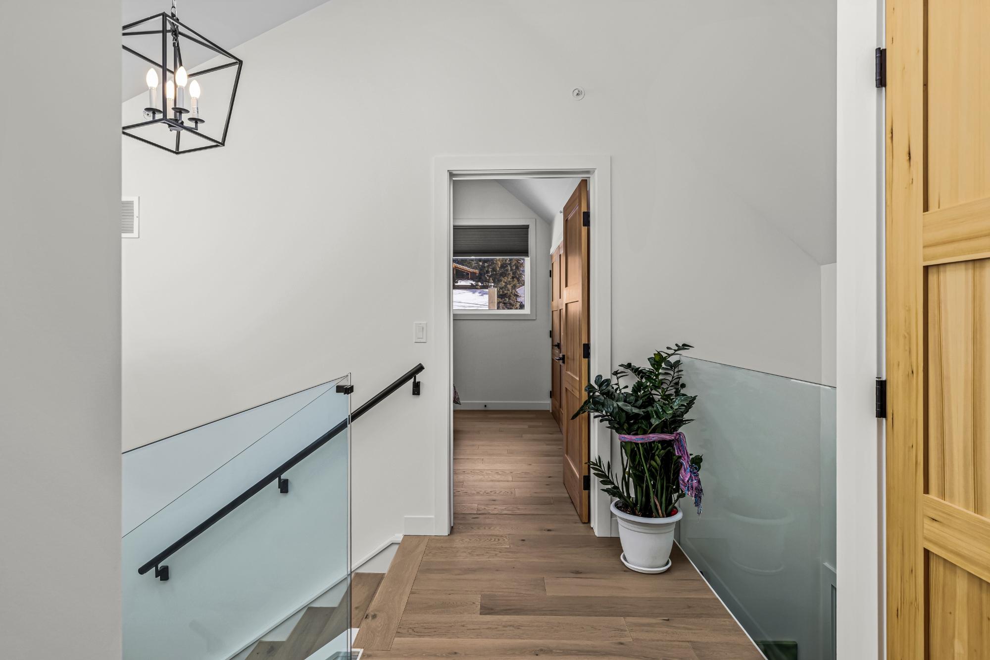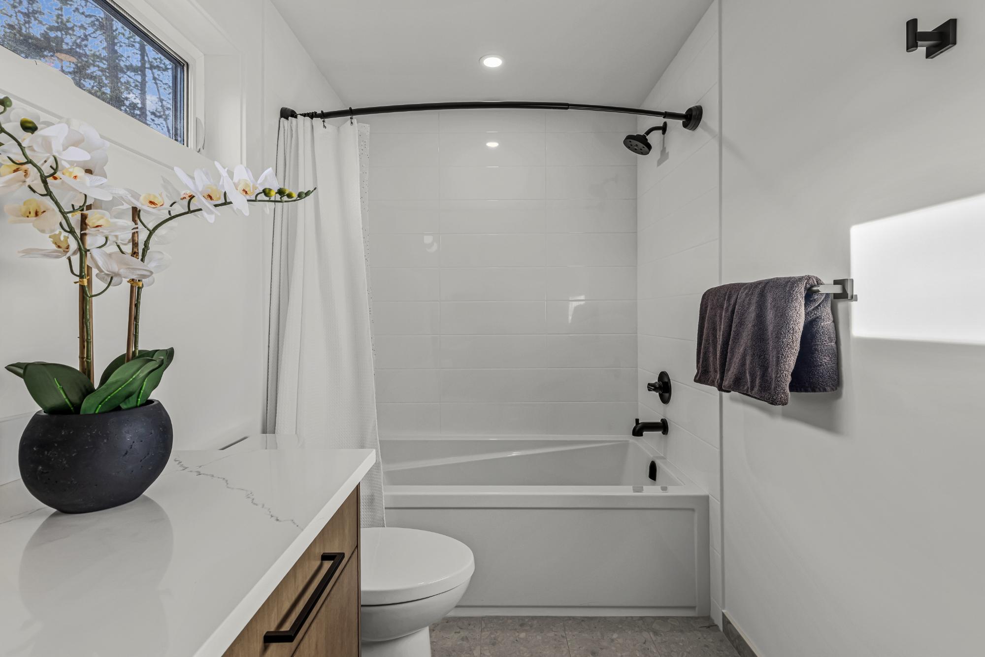 Step into luxury living with this stunning 4 bedroom, 5 bathroom modern built home by Lakusta Custom Homes, who are known for their quality craftsmanship, attention to detail, and refined mountain design. The layout features 2671sqft of livable space spread over 3 levels, with the open concept living and dining area anchoring the home with sleek kitchen appliances and an expansive island leading to a wall of windows that flood the great room with natural light. Outdoor living extends seamlessly with a spacious upper-level patio spanning the entire back of the home. The primary suite is a true retreat, complete with a soaking tub with a separate luxurious walk-in tiled shower, and serene mountain views from the king bed. Upstairs, two spacious bedrooms each with their own spa inspired bathroom and elevated design elements. Downstairs, there is a media lounge with custom bar, including additional guest space with a large bedroom and 3pc bathroom and access to the garage.