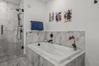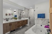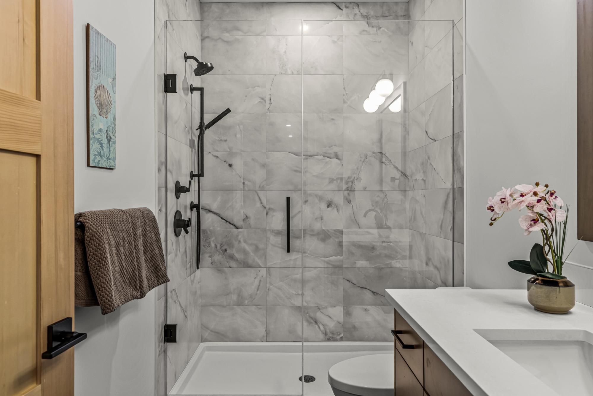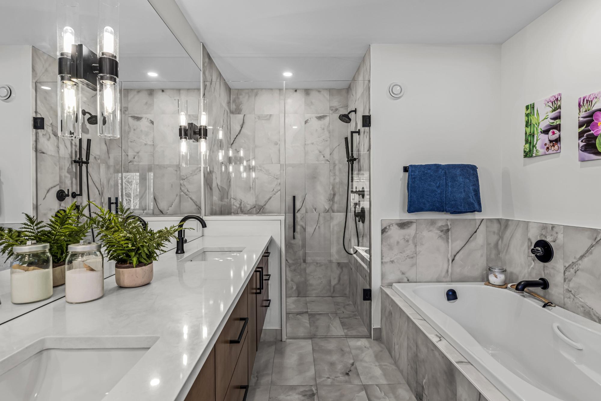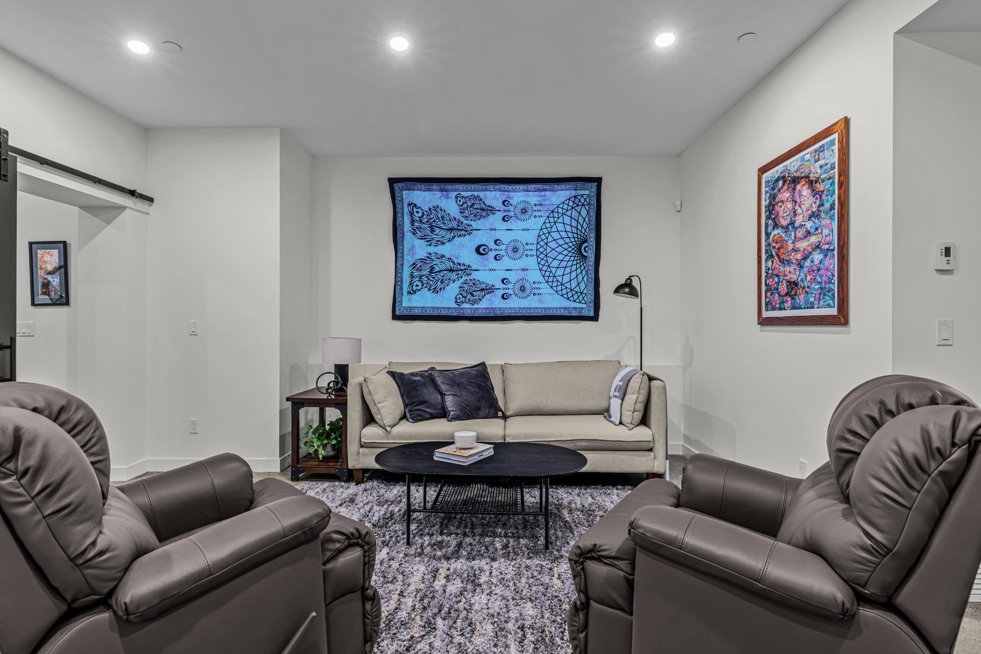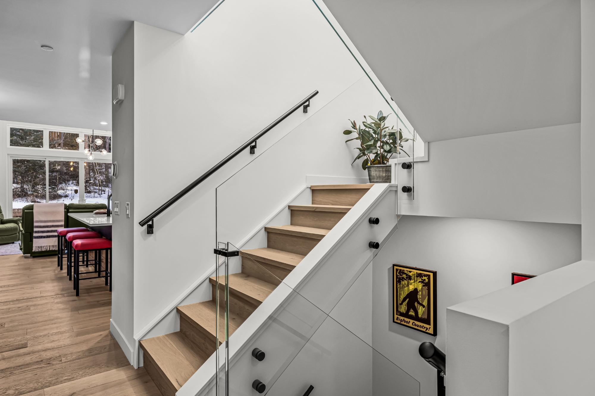 Step into luxury living with this stunning 4 bedroom, 5 bathroom modern built home by Lakusta Custom Homes, who are known for their quality craftsmanship, attention to detail, and refined mountain design. The layout features 2671sqft of livable space spread over 3 levels, with the open concept living and dining area anchoring the home with sleek kitchen appliances and an expansive island leading to a wall of windows that flood the great room with natural light. Outdoor living extends seamlessly with a spacious upper-level patio spanning the entire back of the home. The primary suite is a true retreat, complete with a soaking tub with a separate luxurious walk-in tiled shower, and serene mountain views from the king bed. Upstairs, two spacious bedrooms each with their own spa inspired bathroom and elevated design elements. Downstairs, there is a media lounge with custom bar, including additional guest space with a large bedroom and 3pc bathroom and access to the garage.