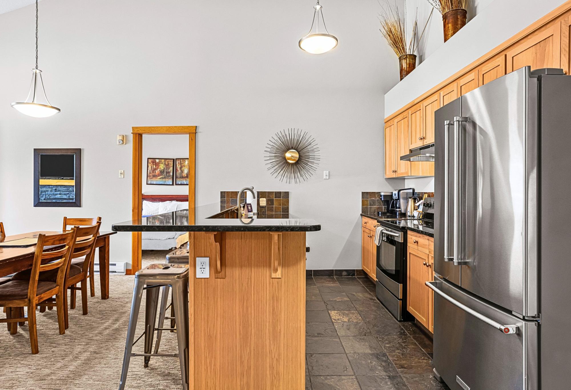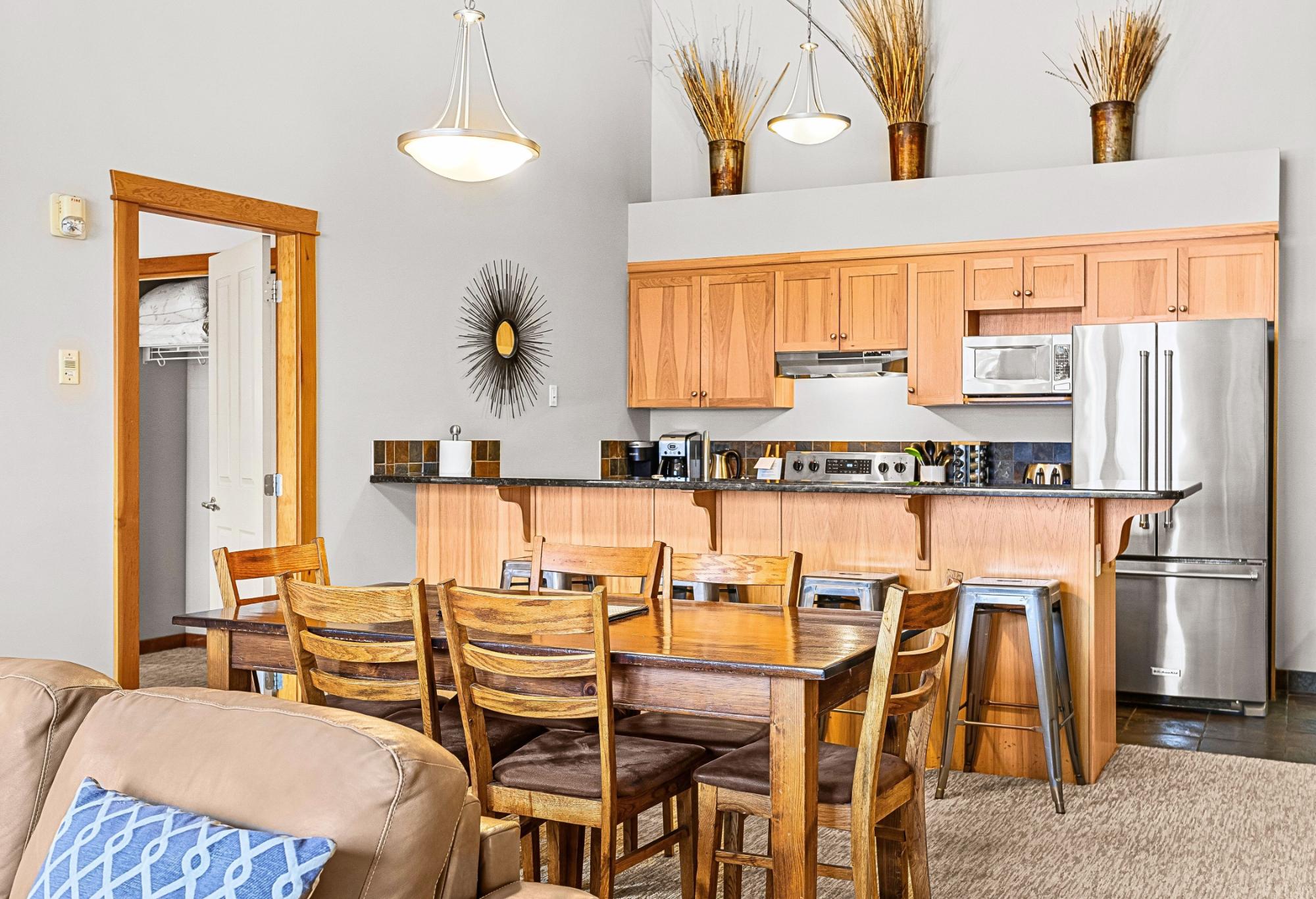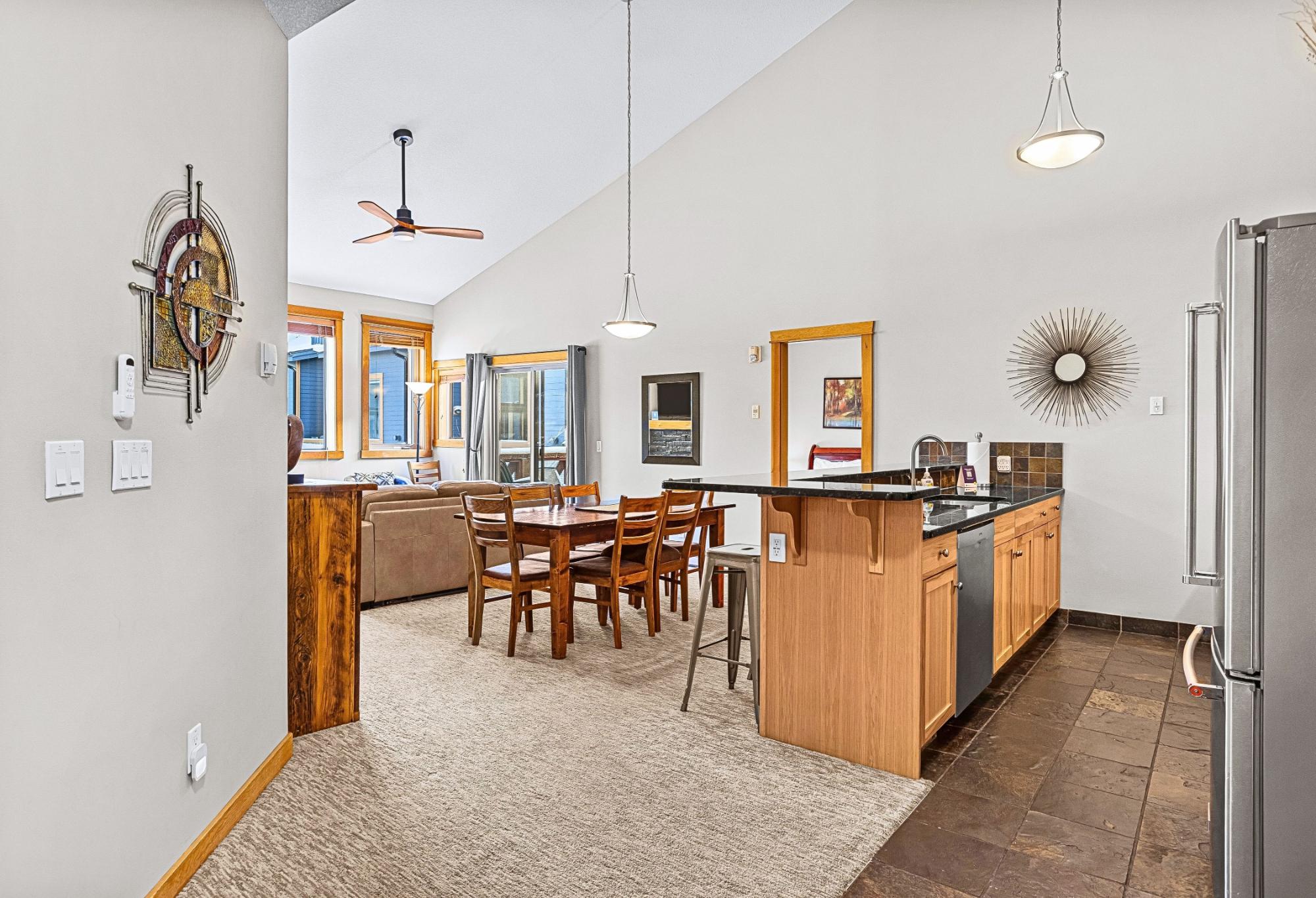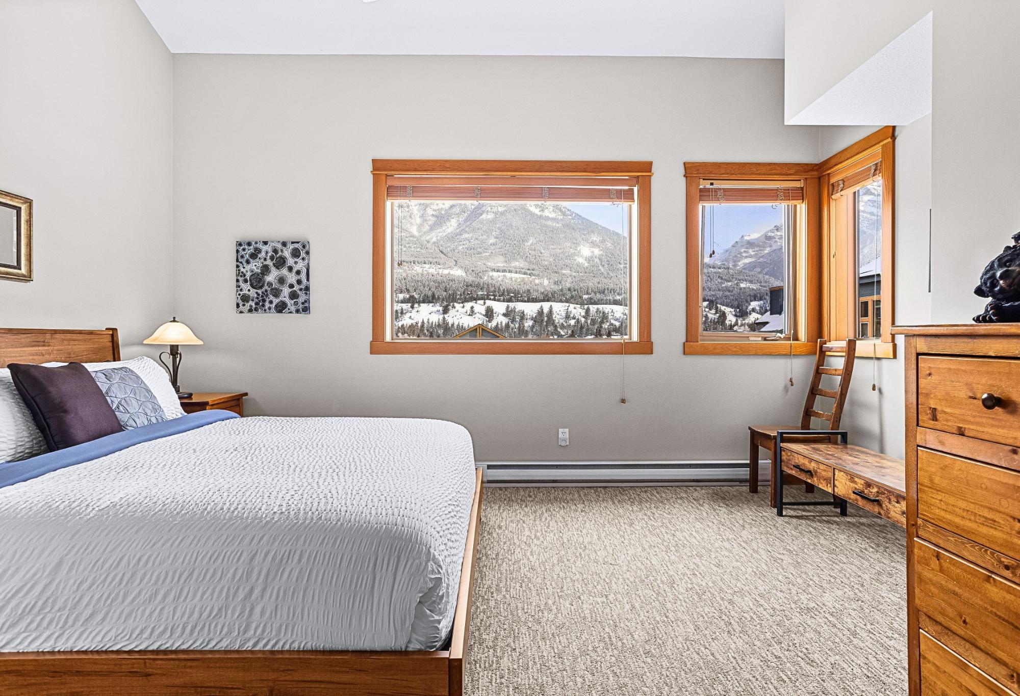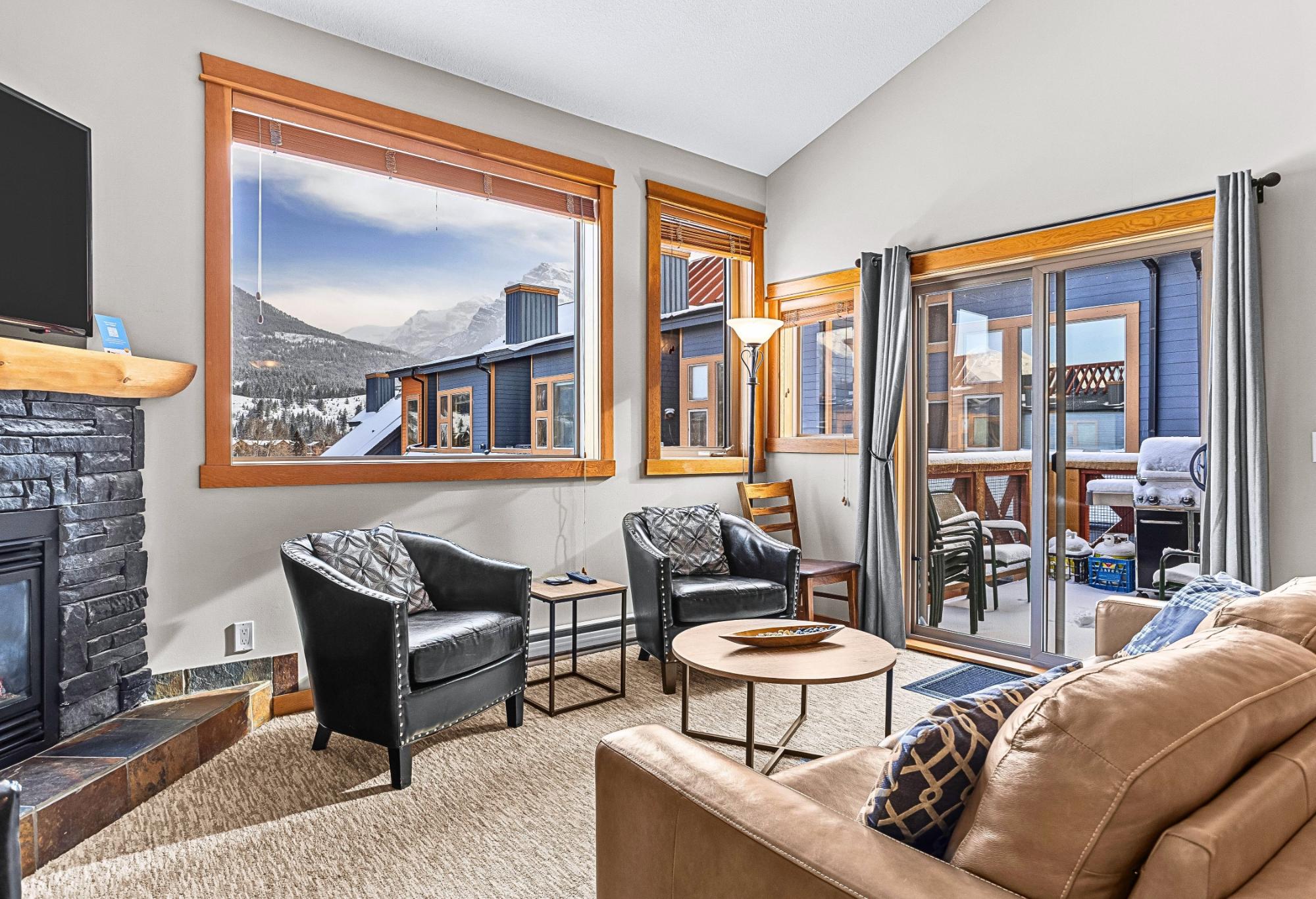 Perched on the top floor in the heart of Canmore, this 3-bedroom, turn-key short-term rental blends alpine grandeur with effortless income potential. Bordering Banff National Park, your guests will marvel at the endless Rocky Mountain peaks that shift beautifully with the changing light of day. Inside, soaring vaulted ceilings crown every room, enhancing the sense of space and drawing in natural light from every angle. All the bedrooms offer the luxury of waking up to mountain views. The living room windows frame the Rockies so completely that every seat becomes the best seat in the house. The large kitchen is designed for gathering & entertaining, whether hosting an après-ski dinner or a relaxed morning brunch before heading out on the trails. The open-concept layout flows seamlessly into the dining & living areas. Enjoy access to 2 rooftop hot tubs overlooking the mountains, as well as 2 gyms & an indoor hot tub, 2 (tandem) secure underground titled parking spots. Call today!