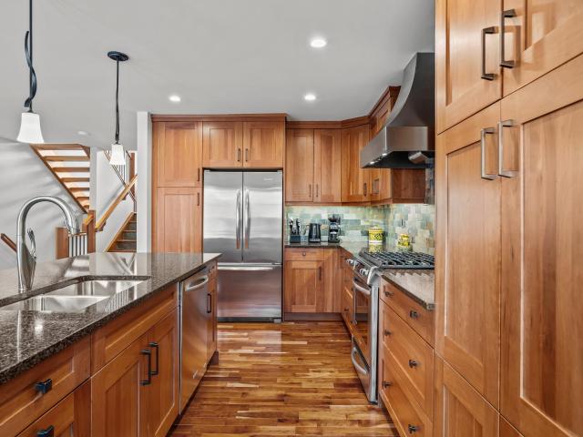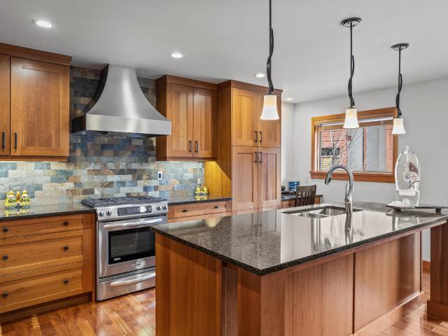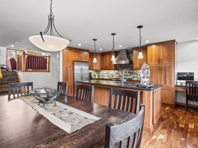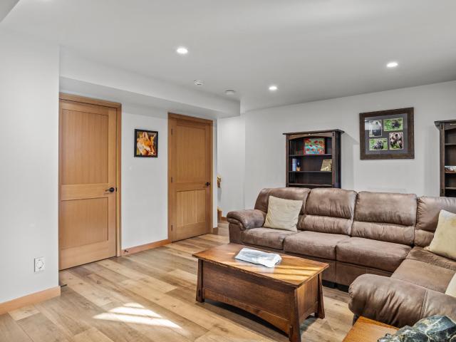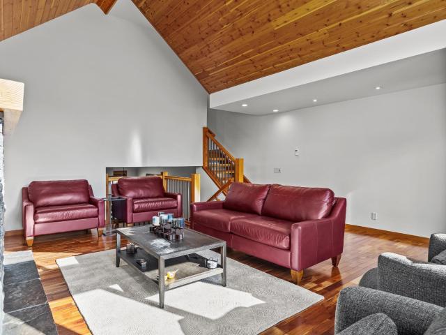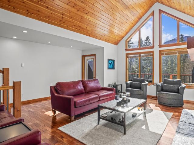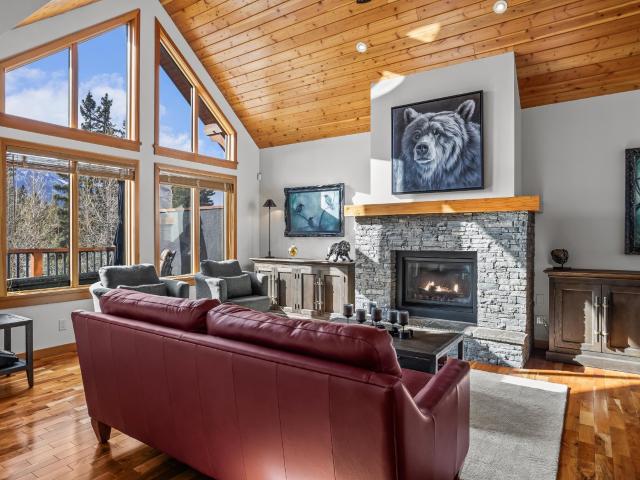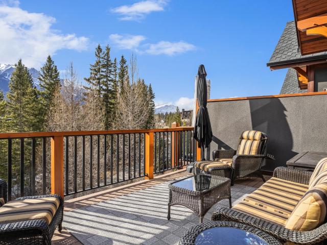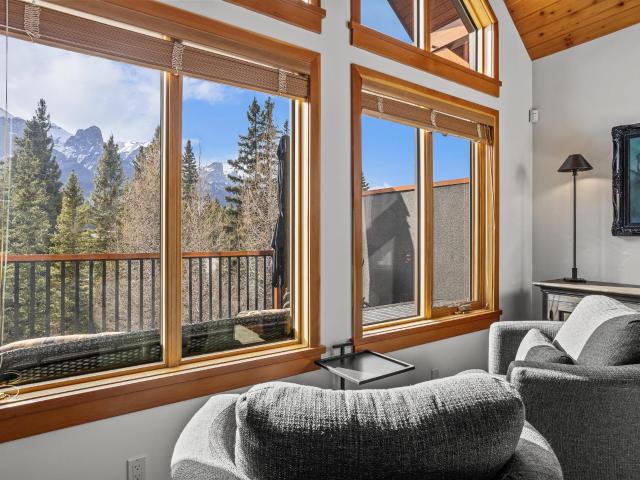 An exceptional offering in one of Canmore’s most sought-after locations—it combines refined mountain living with an unbeatable setting along the creek. This luxurious 3 bed, 4 bath villa spans over 2,350 sqft, showcasing timeless design and breathtaking mountain views throughout. The chef’s kitchen features quartz countertops and premium stainless-steel appliances, opening to a dramatic living room with cathedral ceilings, floor-to-ceiling windows, and access to a private deck. The top-floor primary retreat offers a spa-inspired 5-piece ensuite and walk-in closet, while the second level hosts two bedrooms and a 4-piece bath. The finished lower level adds a flexible living space, full bath, and walkout to a patio. With direct trail and creek access, this rare home blends sophistication with alpine serenity—just moments from downtown, offering a chance to step into a furnished mountain retreat.