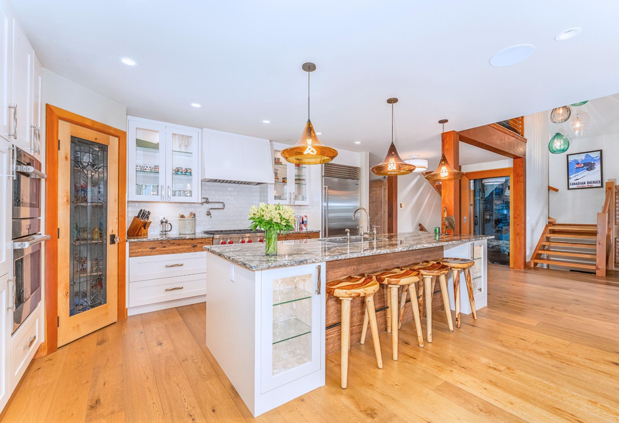 Exceptionally designed to be your forever mountain home. 5 beds + Office & 5 baths, you get timeless architecture & thoughtful design for every stage of life. Only the highest quality of design, materials & craftsmanship. Main-floor bedroom & ensuite allow for one-level living, while the built-in elevator makes everyday more accessible. Curved post-&-beam architecture & vaulted ceilings with tall windows perfectly frame the Three Sisters view. The garden level floor features a 2nd living room & high ceilings, wall of windows, & walks-out to the fenced yard with fire pit. A premium applianced gourmet kitchen offers function & form. Optional entry level legal suite is ideal to rent & qualify for the permanent resident tax status before you're here full-time, or for family. Otherwise, the space seamlessly & naturally integrates as part of the home. On quiet 4th Street, steps to downtown, river trails, parks, & more. Built to last & designed with Heart. Make this your family's Legacy!