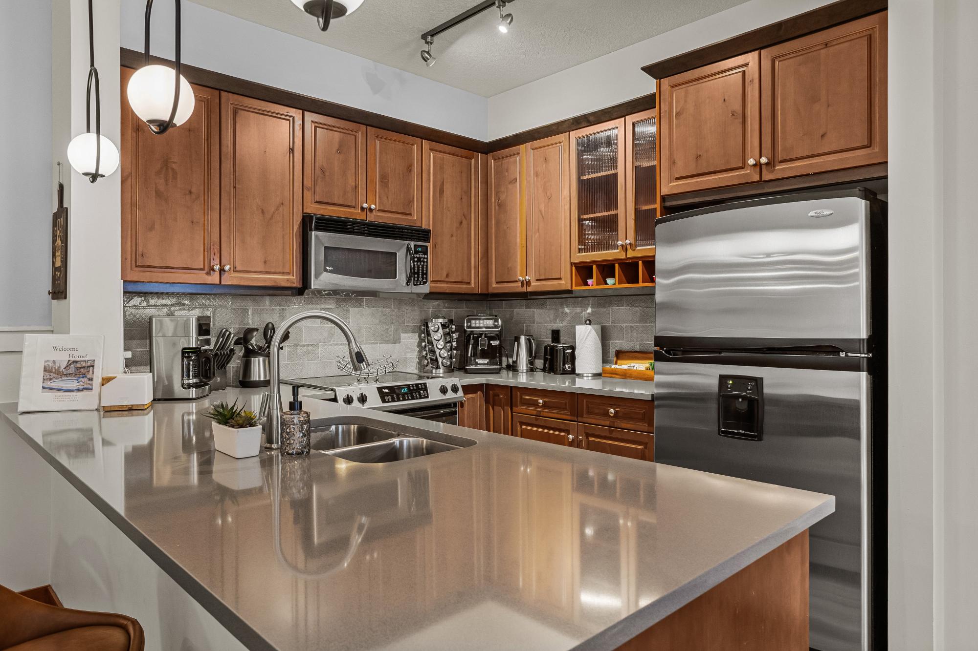 One of Canmore’s most sought-after hotel complexes, Blackstone Mountain Lodge offers impressive revenue potential and an ideal family mountain retreat. The stylish main living area features a fully equipped kitchen with a large eating bar and separate dining area—perfect for entertaining or relaxing after a day in the mountains. The thoughtful layout provides excellent privacy with two spacious bedrooms, two full four-piece baths, in-suite laundry, owner’s closet, and direct access to a sunny south-facing balcony. Over $50,000 invested in renovations and furnishing upgrades enhances comfort and rental appeal. Resort amenities include a heated outdoor pool, hot tubs, fitness centre, fire tables, BBQ station, and secure underground parking with EV charger. Zoning allows short-term rentals, maximizing investment potential. Steps from shops, dining, and trails. Consult your accountant regarding GST deferral.
