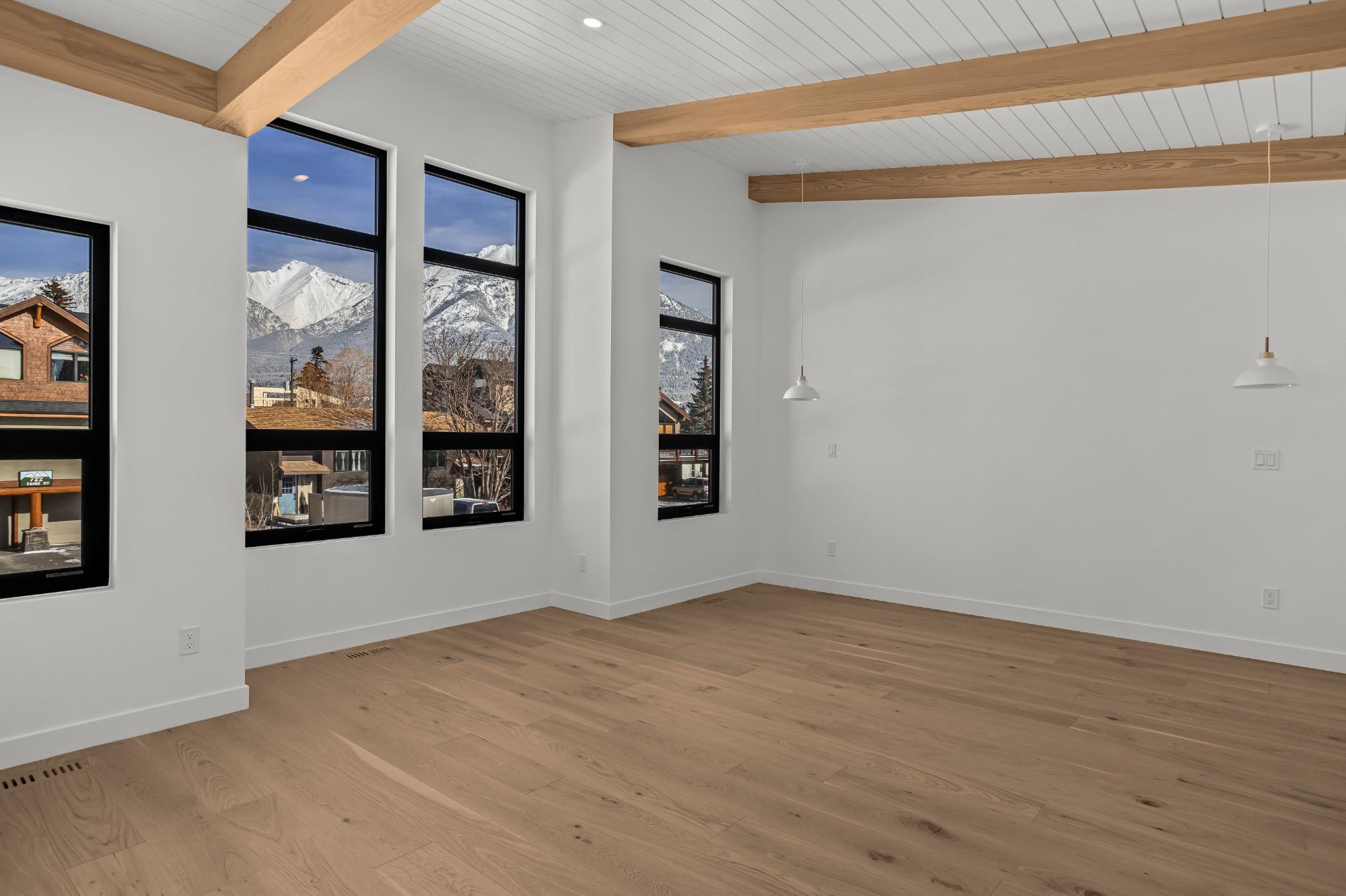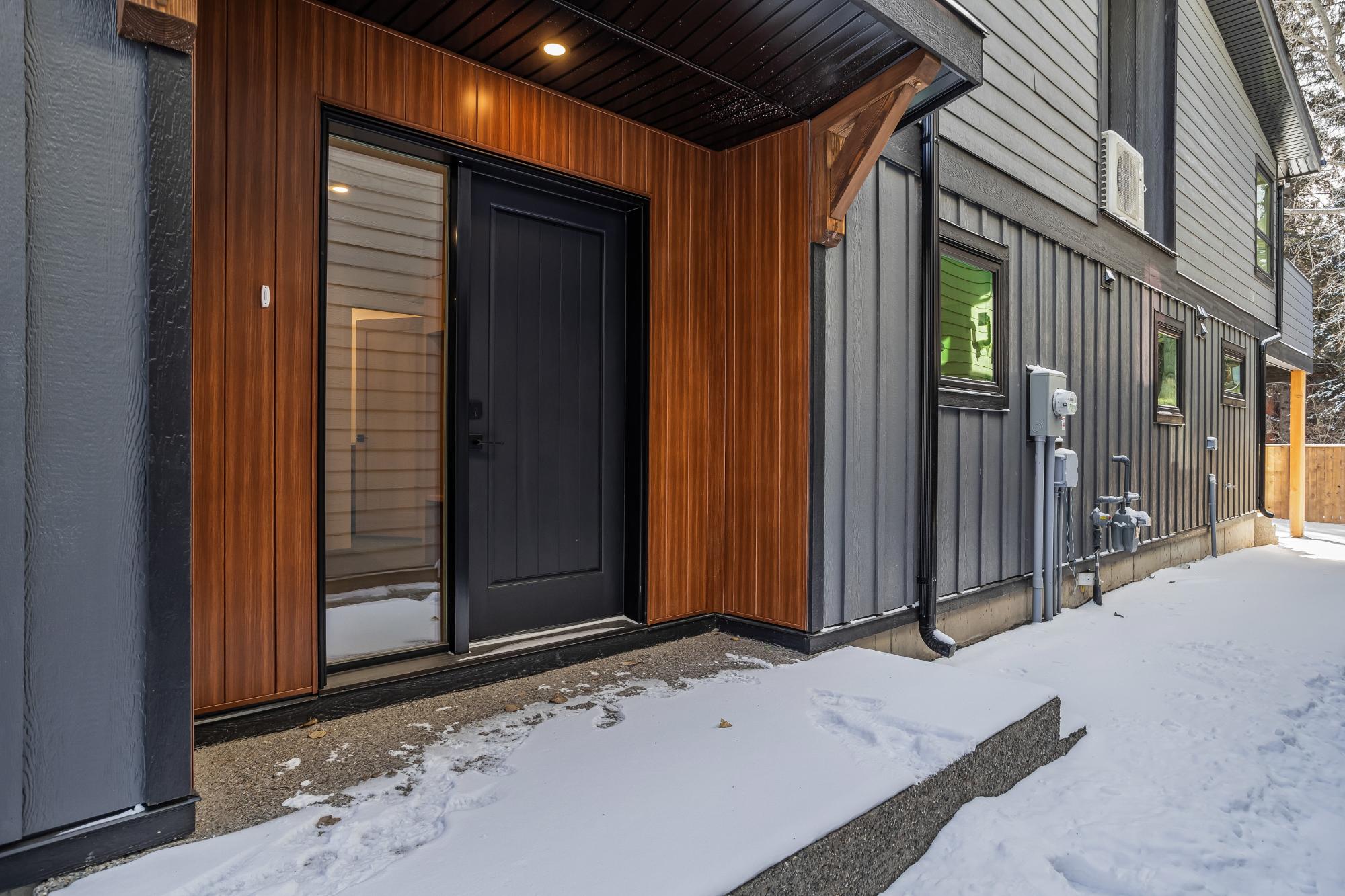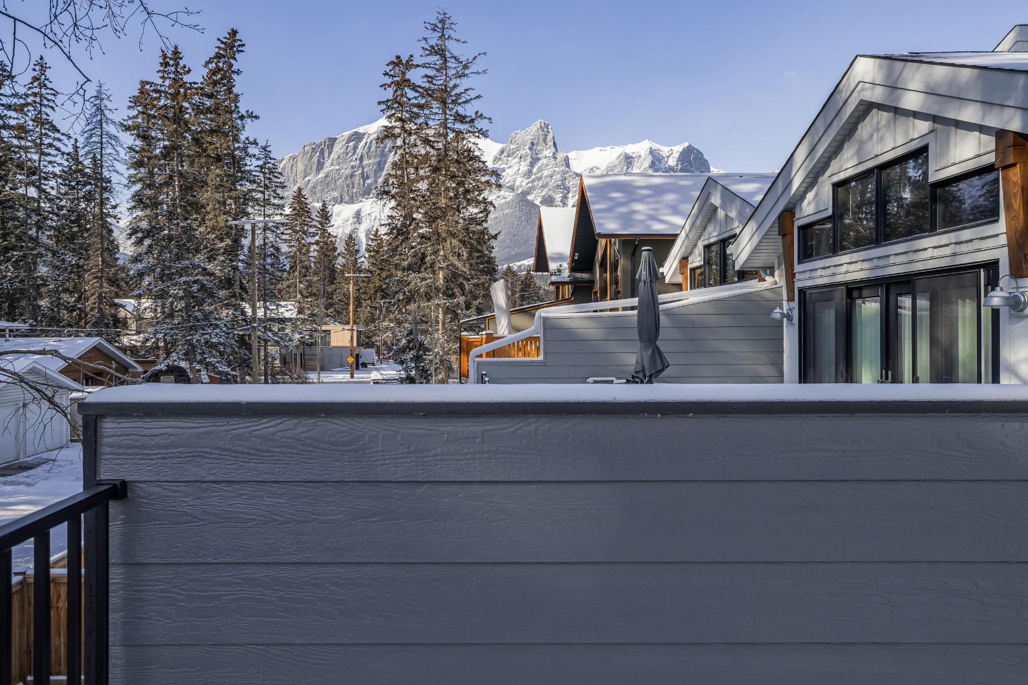 Experience modern mountain living in this brand new stunning 5-bedroom, 5-bathroom duplex, perfectly situated in the heart of South Canmore. Built by the renowned Lakusta Homes, this architectural gem features a sleek shed roof design and a thoughtfully crafted floor plan, offering both style and functionality. With a legal suite featuring a private entrance, it's ideal for generating rental income or accommodating extended family. The heated double car garage provides convenience and comfort, especially during chilly mountain mornings. Designed for easy accessibility, the main floor offers one-level living, while the south-facing orientation ensures year-round natural light and breathtaking mountain views. Located just steps from the Bow River and scenic walking trails, this exceptional home combines modern design with mountain charm, offering the perfect retreat in one of Canmore's most desirable neighborhoods.