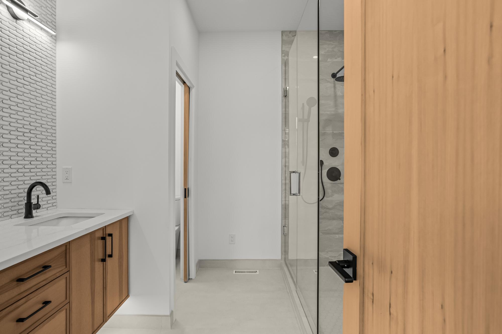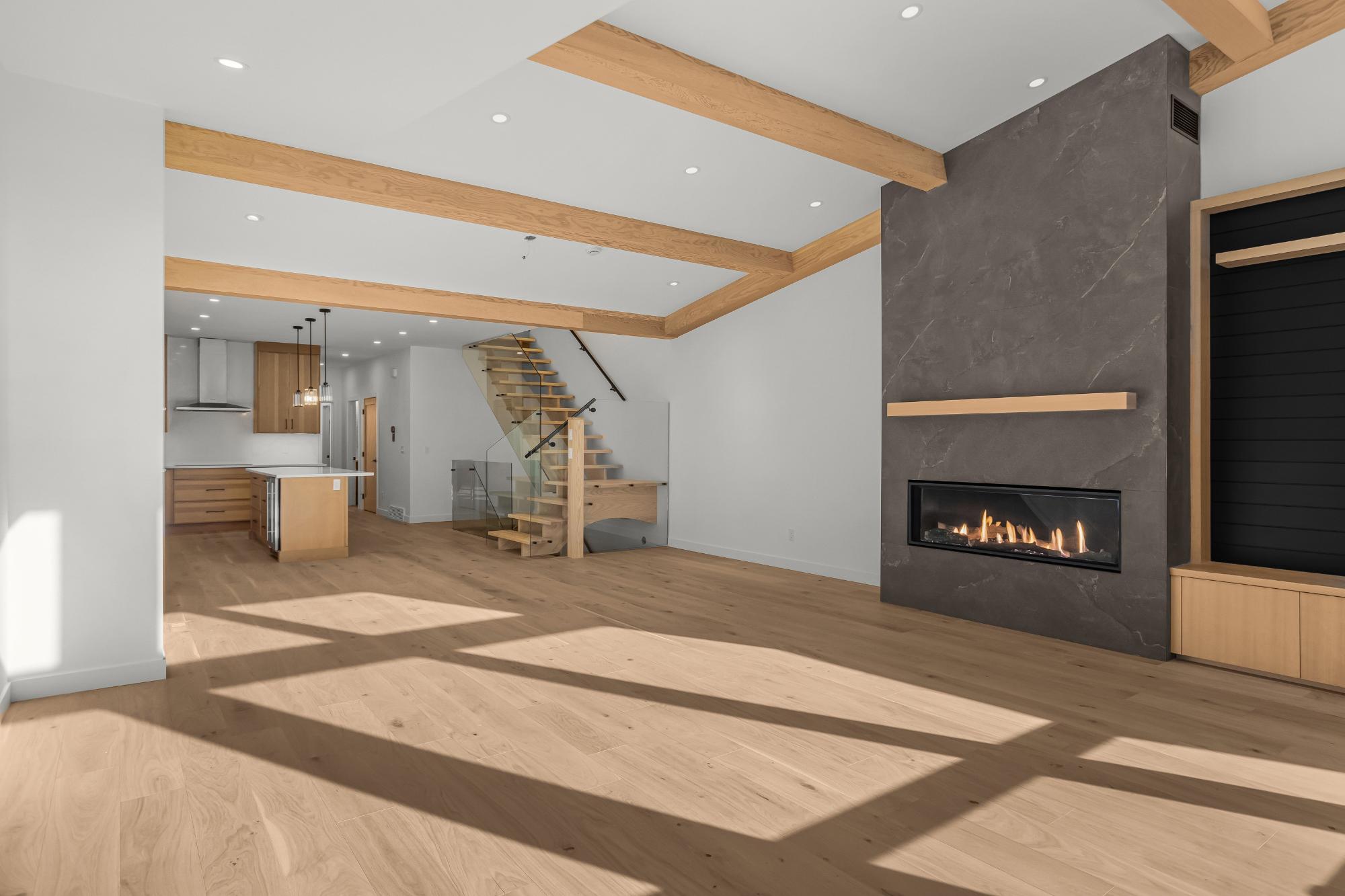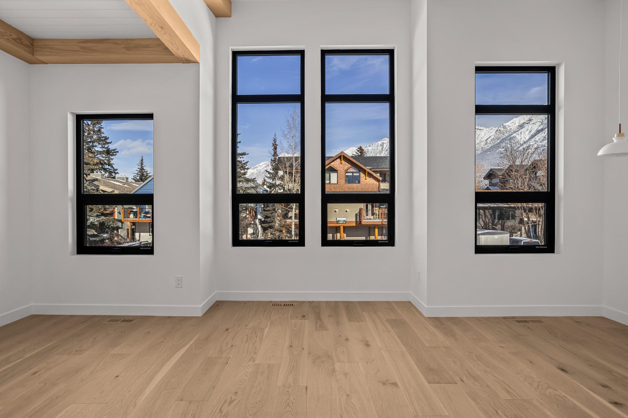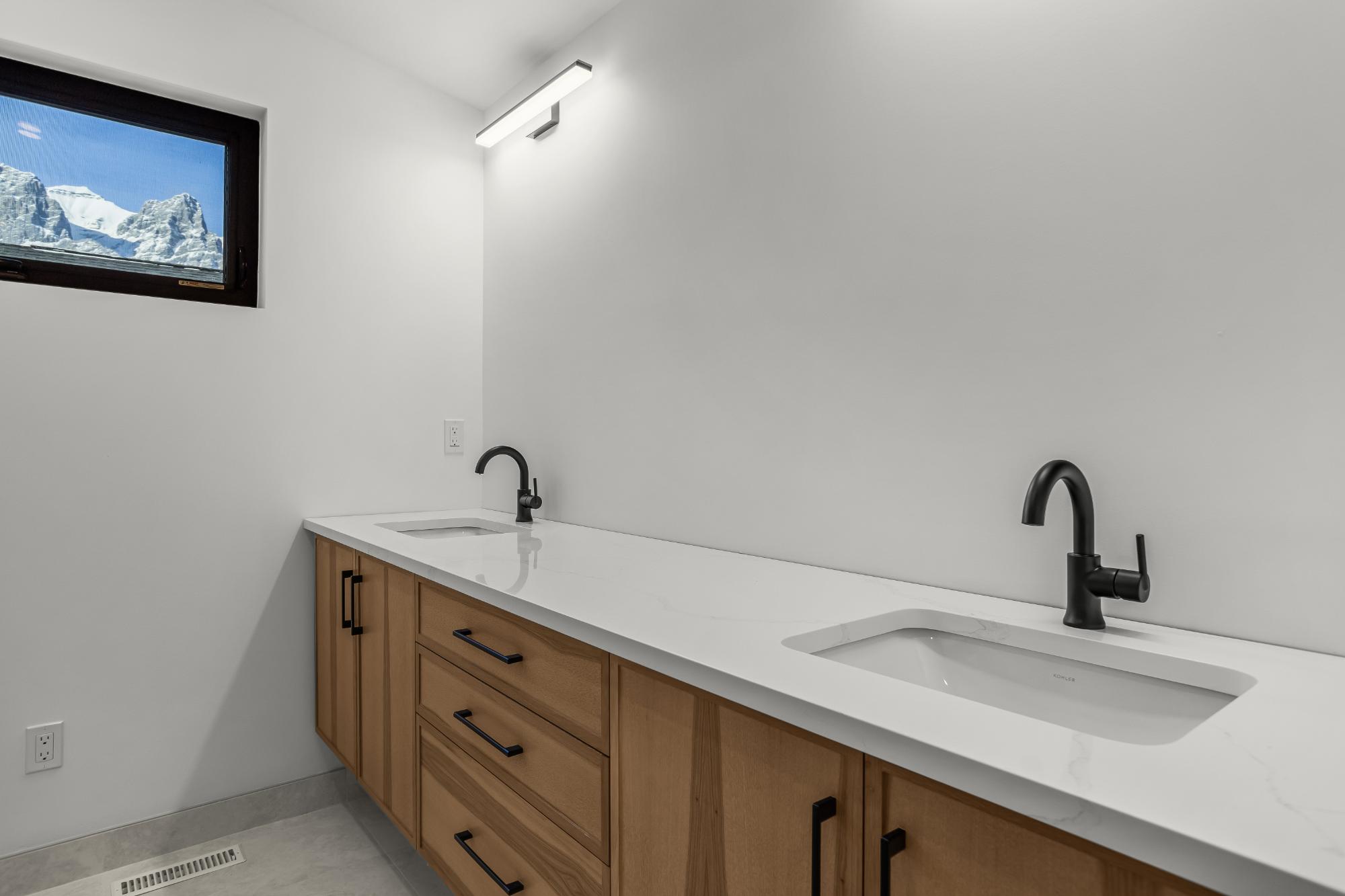Experience modern mountain living in this brand new stunning 5-bedroom, 5-bathroom duplex, perfectly situated in the heart of South Canmore. Built by the renowned Lakusta Homes, this architectural gem features a sleek shed roof design and a thoughtfully crafted floor plan, offering both style and functionality. With a legal suite featuring a private entrance, it's ideal for generating rental income or accommodating extended family. The heated double car garage provides convenience and comfort, especially during chilly mountain mornings. Designed for easy accessibility, the main floor offers one-level living, while the south-facing orientation ensures year-round natural light and breathtaking mountain views. Located just steps from the Bow River and scenic walking trails, this exceptional home combines modern design with mountain charm, offering the perfect retreat in one of Canmore's most desirable neighborhoods.