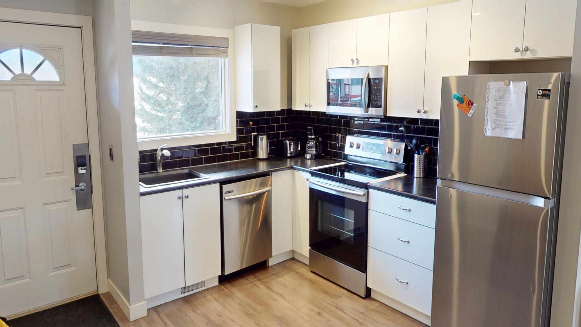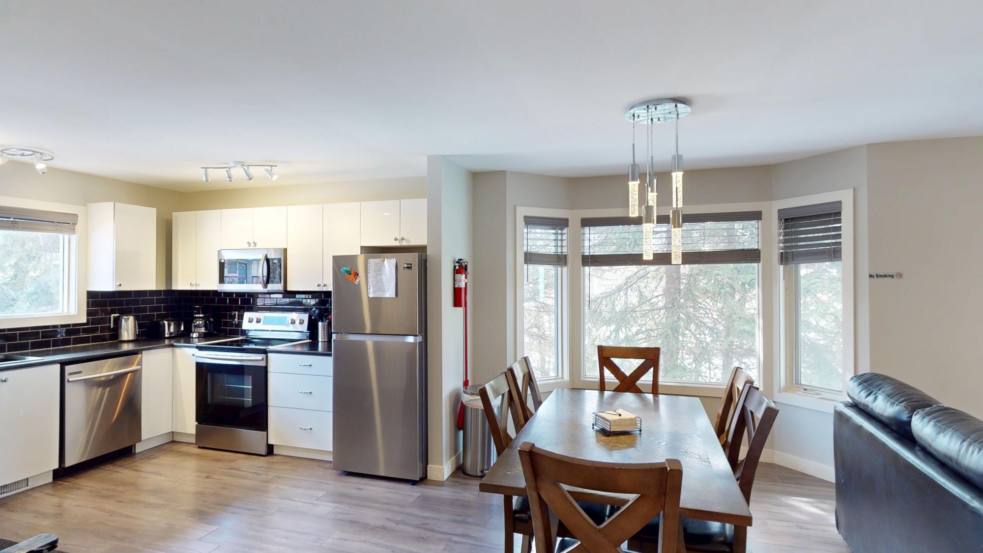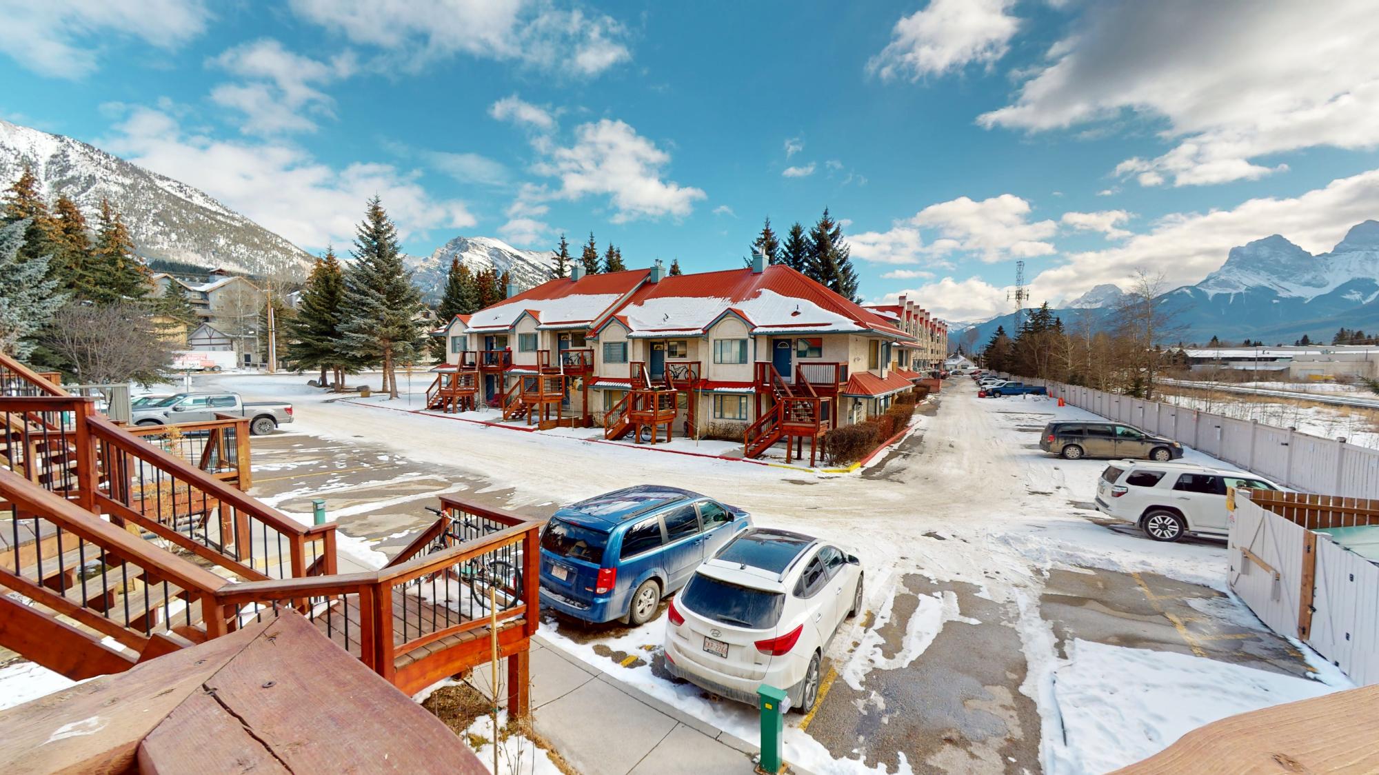 This Turnkey Ready **2 bedroom** HOTEL/CONDO** is a 2nd floor corner *END* unit with *spectacular mountain views*. This unit is an active AIRBNB unit great revenues. Located in Canmore on the the West side of Bow Valley Trail. Close to Downtown. Unit has newer furnace/hot water/tank and comes with all the furnishing and contents. Nicely updated with newer appliances and decor, Large windows and large Bay Window in Dining area, updated light fixtures with built in fans. Parking spot right in front of unit. Visitor parking available. The complex has newer decks and stairs. Take a look at the 3D Tour in listing. GST is applicable to the Listing Price. This is zoned Visitor Accommodation and short term rentals only allowed. 2 decks on East & West end of unit. Back deck is 100 sq ft and front Deck 72 sq ft. **Unit comes with all contents and furnishing**