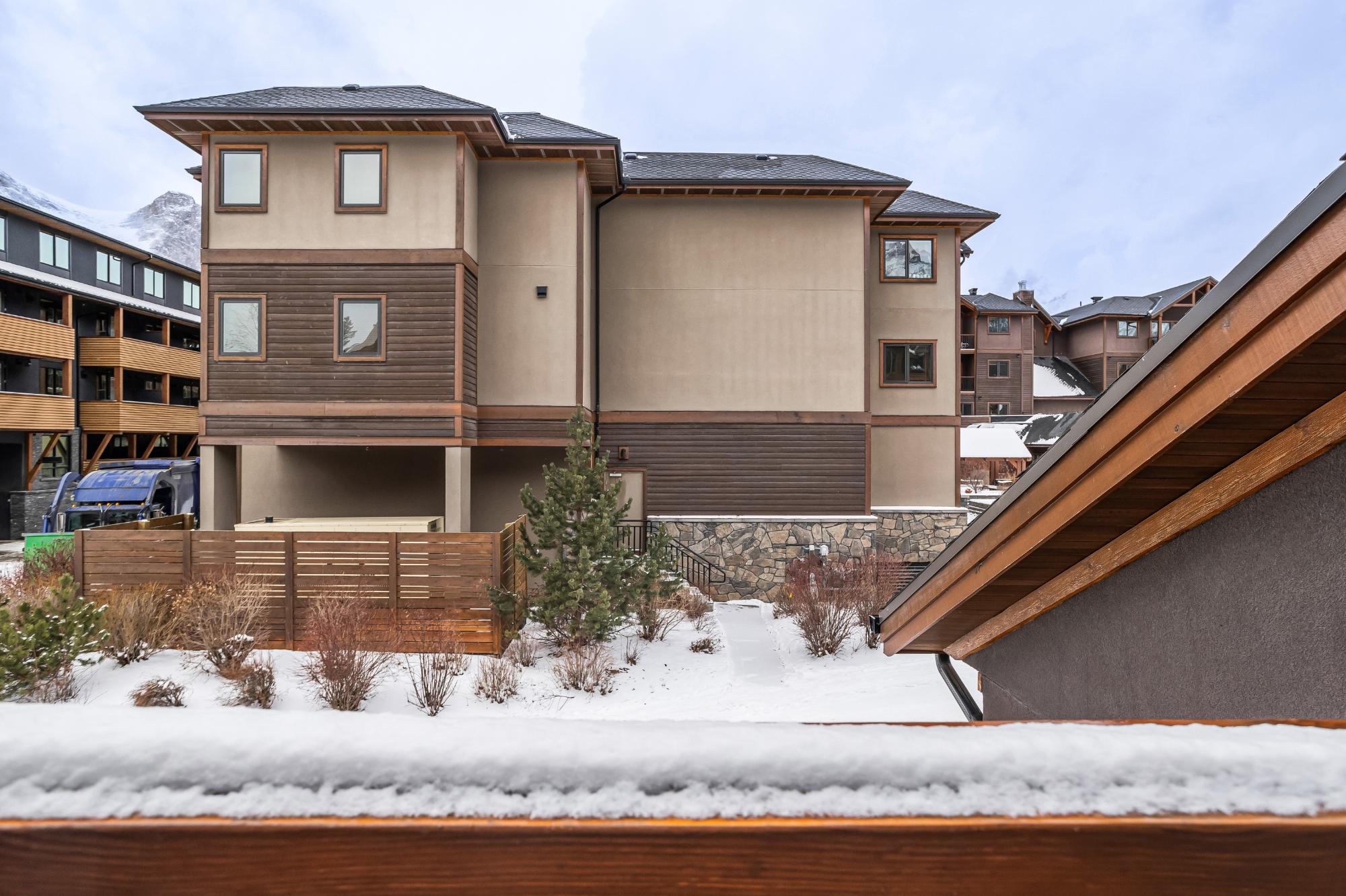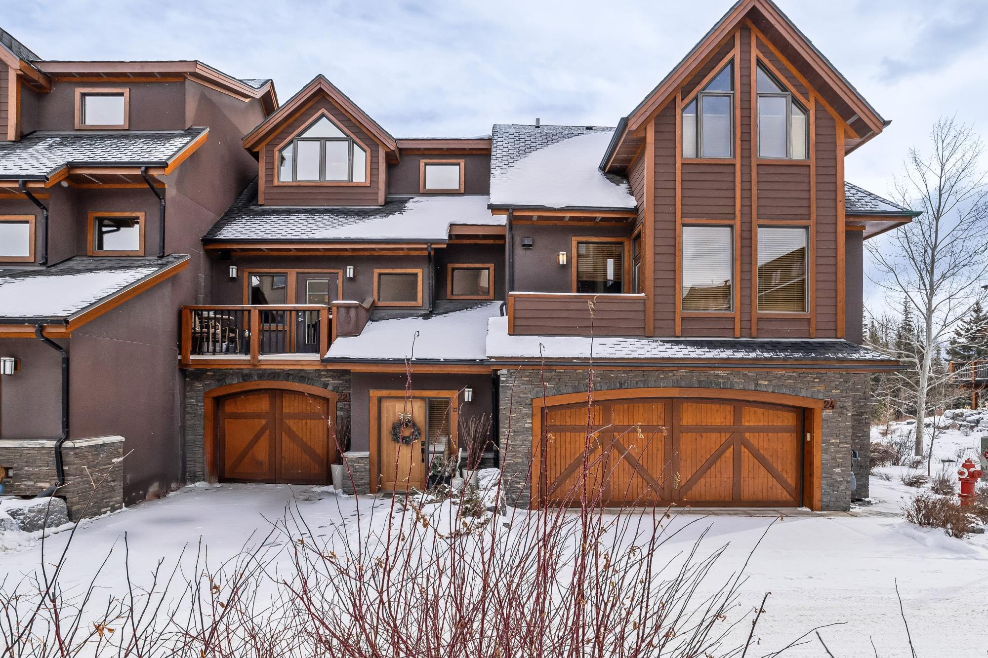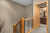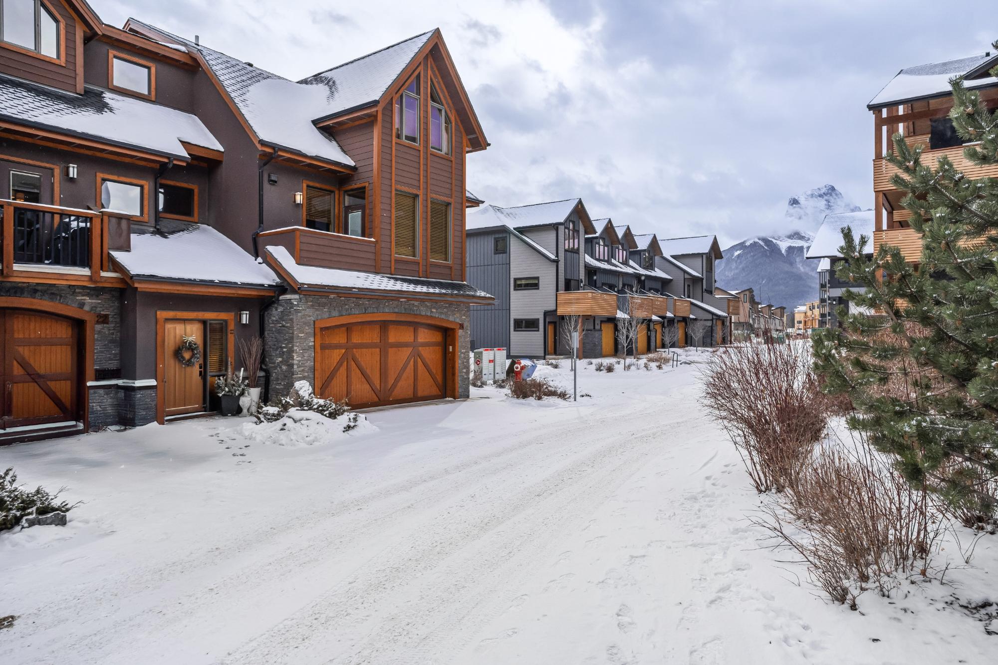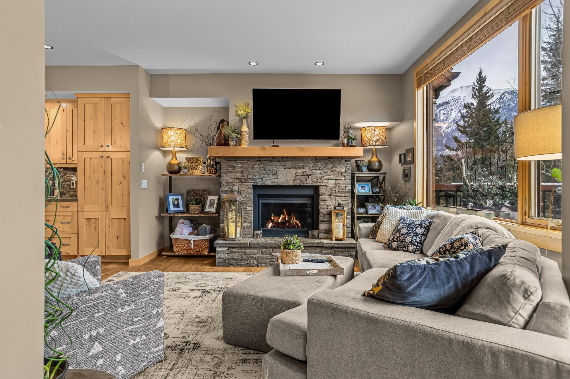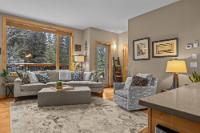 Set along the banks of Policeman’s Creek in Spring Creek Mountain Village, this 4-bedroom, 3.5-bathroom villa offers a rare opportunity just steps from downtown Canmore. The entry level features a heated single-car garage, two bedrooms, a full bathroom, and a dedicated laundry area. The main living level is open and inviting, with hardwood floors and expansive windows framing the creek and surrounding trees. The kitchen includes quartz countertops, stainless steel appliances, generous cabinetry, and a large island. The dining area opens to a secondary deck, while the living room features a Rundle stone fireplace and access to the main deck with stairs to the creekside patio. Upstairs, the primary retreat offers vaulted ceilings, a walk-in closet, and a 5-piece ensuite. A fourth bedroom with its own 3-piece ensuite completes the home. Multiple decks and patio spaces embrace the creekside setting in this sought-after location.