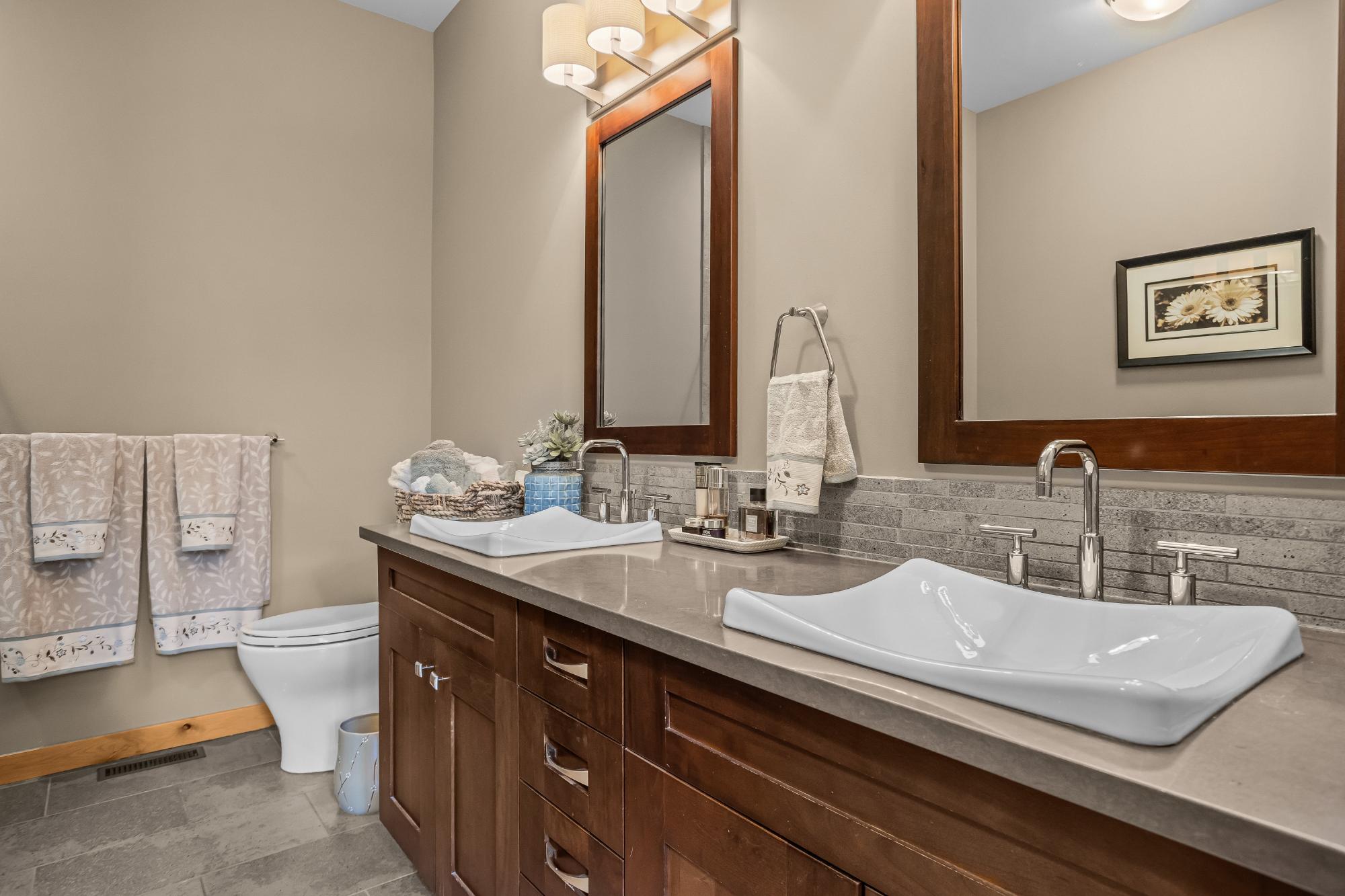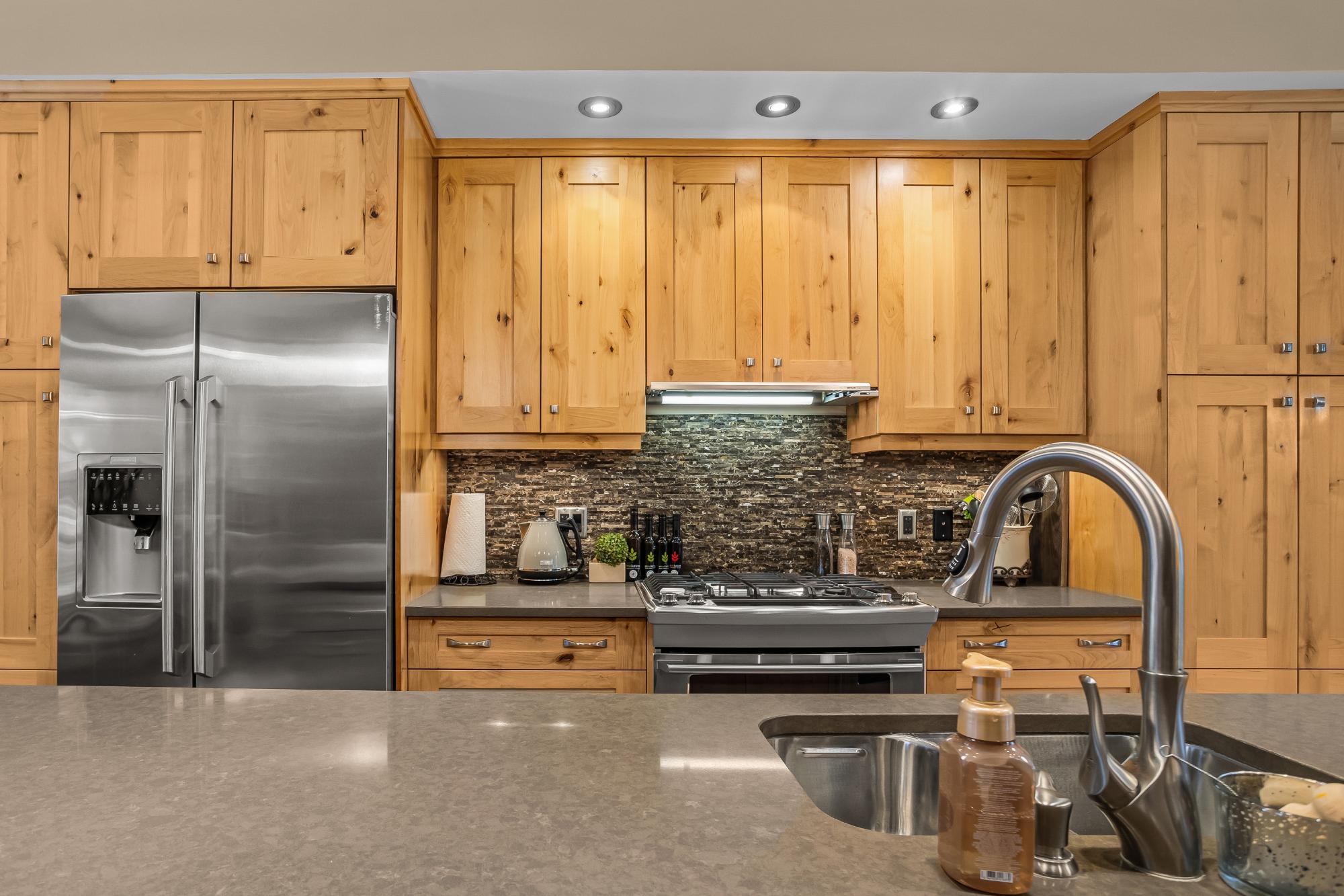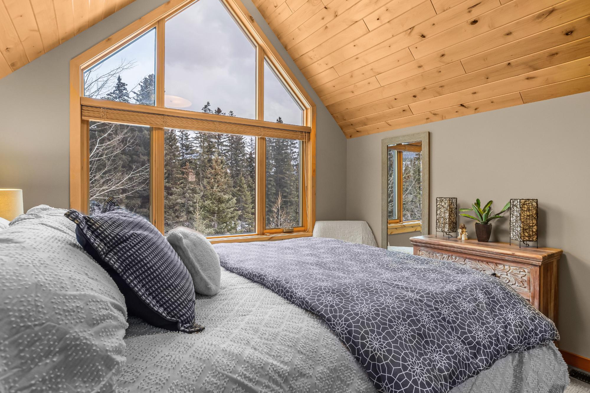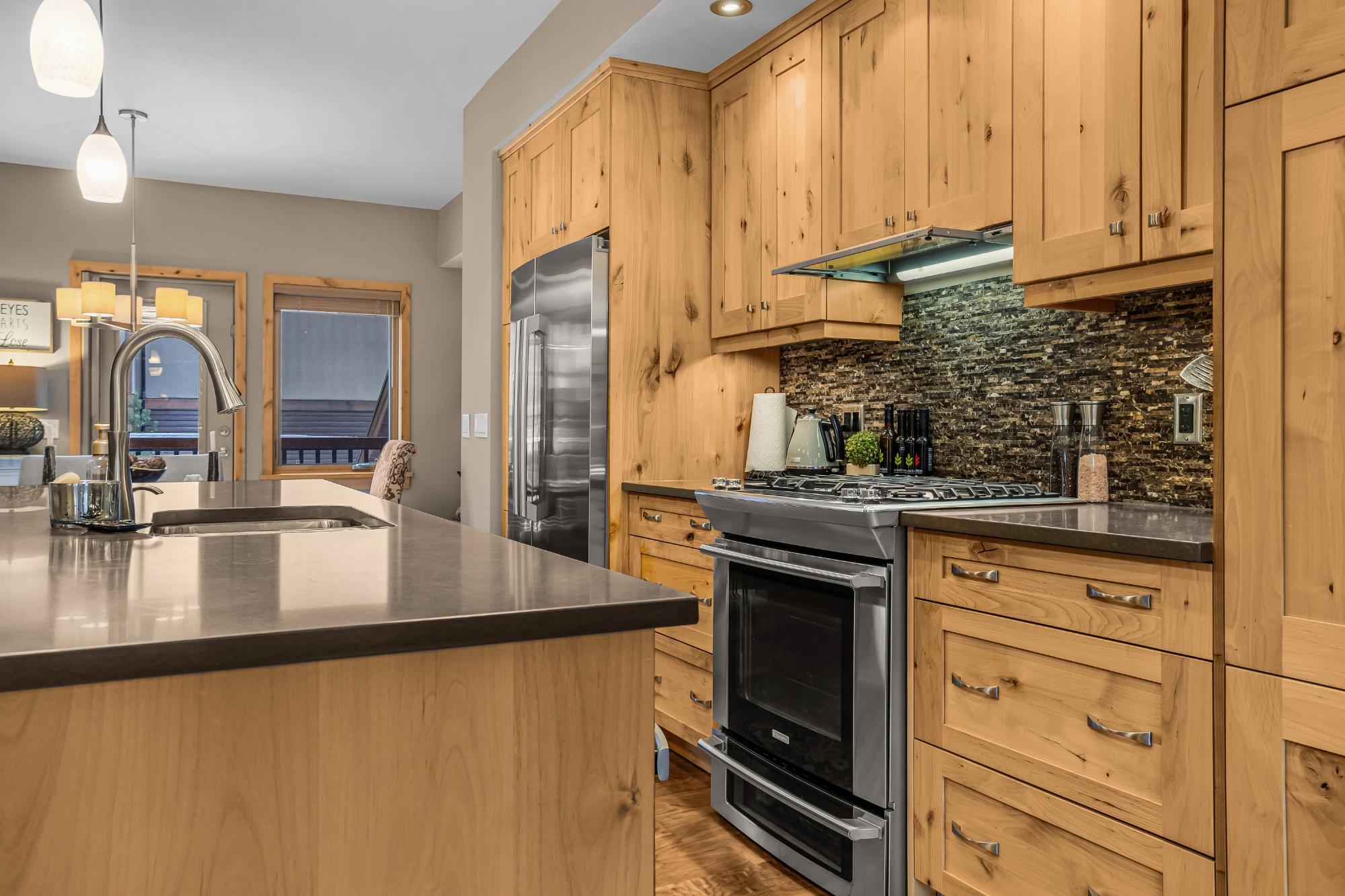 Set along the banks of Policeman’s Creek in Spring Creek Mountain Village, this 4-bedroom, 3.5-bathroom villa offers a rare opportunity just steps from downtown Canmore. The entry level features a heated single-car garage, two bedrooms, a full bathroom, and a dedicated laundry area. The main living level is open and inviting, with hardwood floors and expansive windows framing the creek and surrounding trees. The kitchen includes quartz countertops, stainless steel appliances, generous cabinetry, and a large island. The dining area opens to a secondary deck, while the living room features a Rundle stone fireplace and access to the main deck with stairs to the creekside patio. Upstairs, the primary retreat offers vaulted ceilings, a walk-in closet, and a 5-piece ensuite. A fourth bedroom with its own 3-piece ensuite completes the home. Multiple decks and patio spaces embrace the creekside setting in this sought-after location.