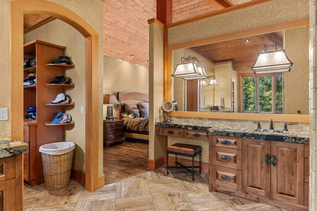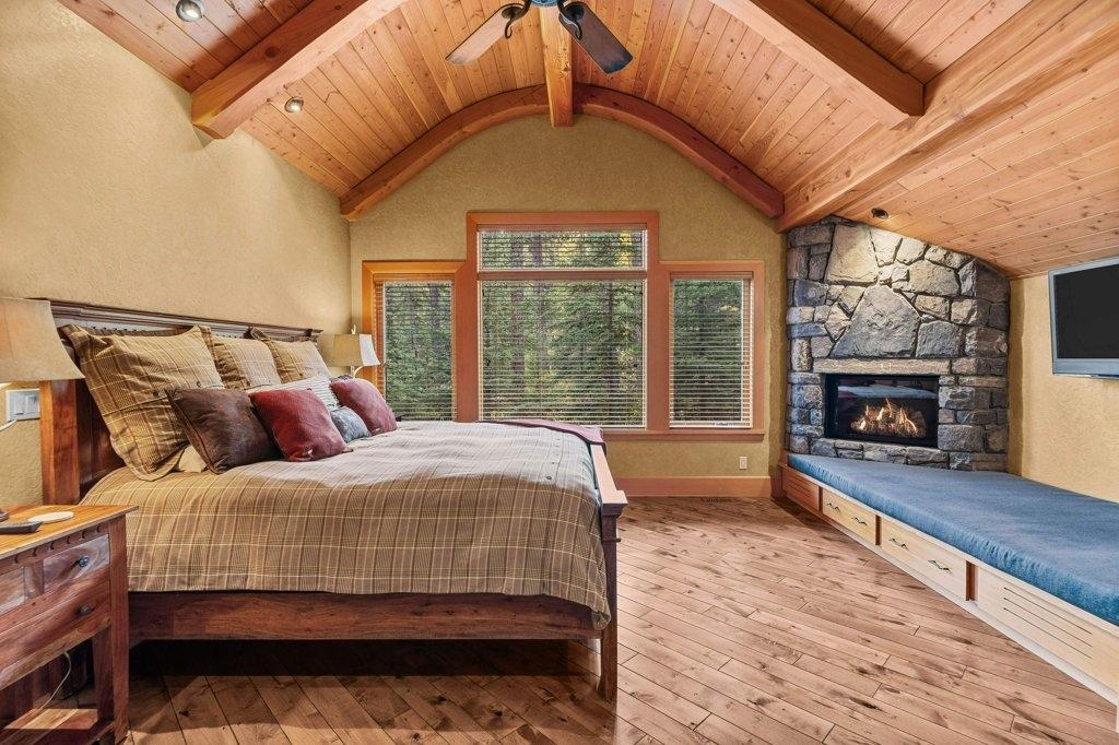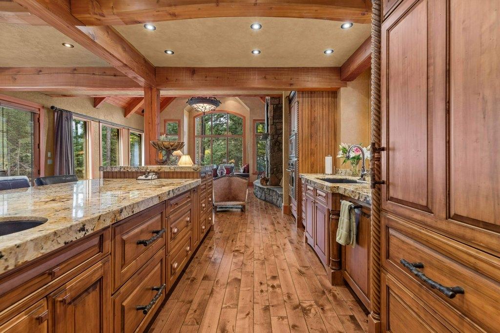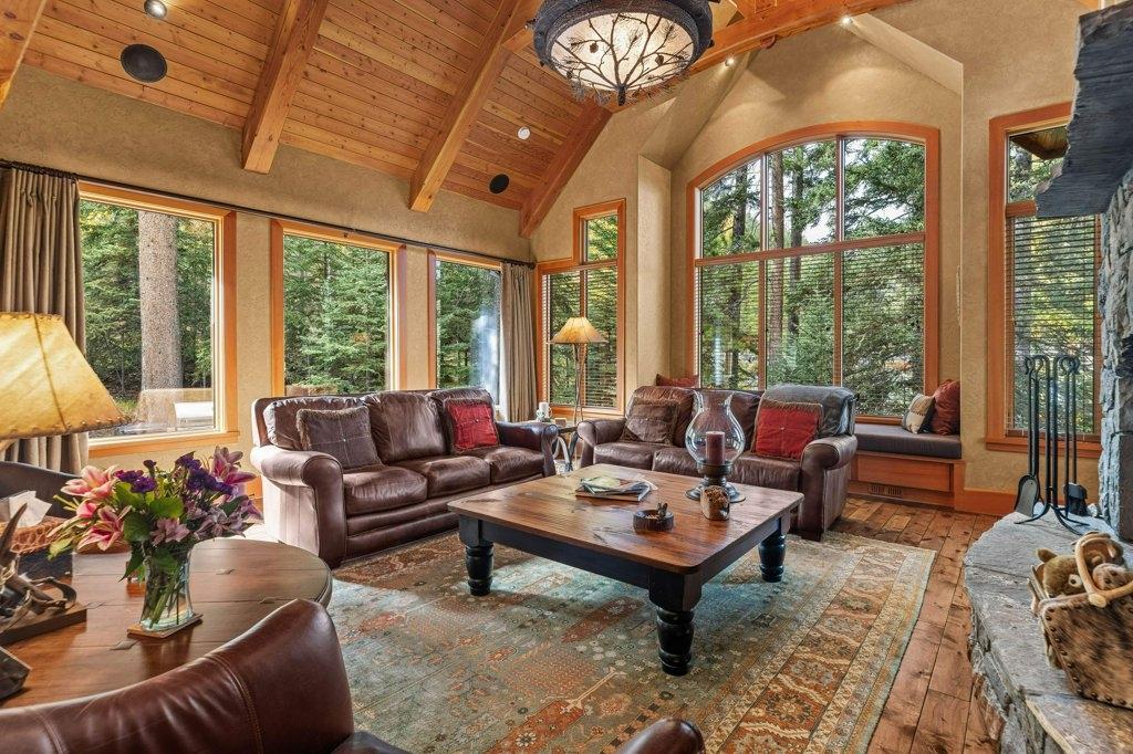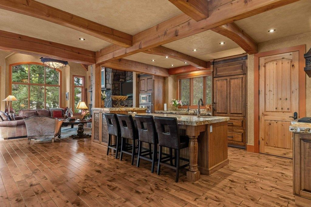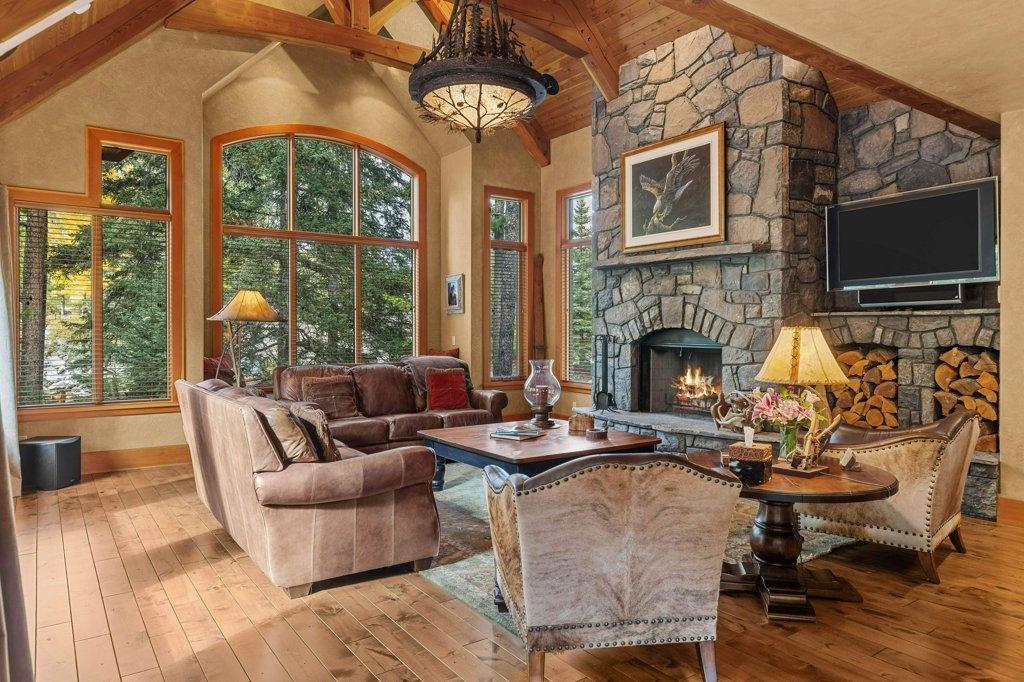 Located in Cairns on the Bow, this custom 4,000+ sq ft timber-frame home offers privacy, warmth, and mountain character. Set on a beautifully treed 17,642 sq ft lot in Canmore’s only gated community, it blends natural seclusion with exceptional craftsmanship. Soaring fir-paneled ceilings and Italian plaster create a refined atmosphere throughout. The open-concept layout connects the main living spaces, ideal for daily living and entertaining. A Rundle stone wood-burning fireplace anchors the great room, while the kitchen features custom cabinetry and premium Sub-Zero and Viking appliances. The primary suite is a tranquil retreat with treetop views and a spa-inspired ensuite finished in Marinace granite and travertine with a jetted tub. Two guest bedrooms, a home theatre, recreation room, office, and custom bar provide flexibility for family and guests. Professionally landscaped grounds with natural stonework, built-in BBQ, and fire pit complete this timeless mountain retreat.