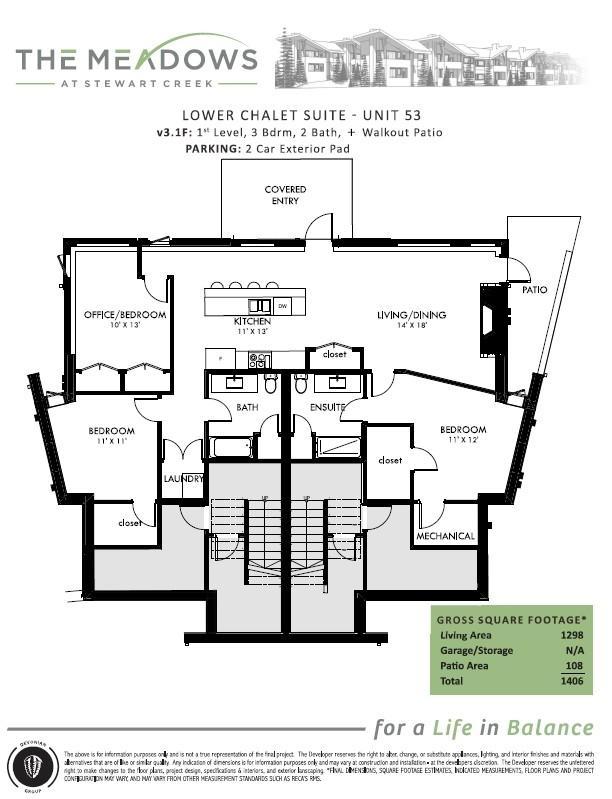 Discover luxury mountain living at its finest in these exquisite 3-bed, 2-bath single level townhouses, in Stewart Creek’s newest multi-family development, The Meadows at Stewart Creek, Situated just under 60 minutes from YYC. These unique homes feature over 1,250 square feet of living space on one level, no step entries, along with a 2 parking pad spaces. Enjoy well appointed and full-featured, open concept living along with 3 bedrooms and 2 full baths- as well as in suit laundry and in unit storage. With multiple colour palettes available for Buyers to select from, The Meadows' tasteful interior design appointments create restful spaces. The unparalleled design carries throughout, and non-parallel walls contribute to both Privacy and interest. *Please note photos are from the Show Suite unit.