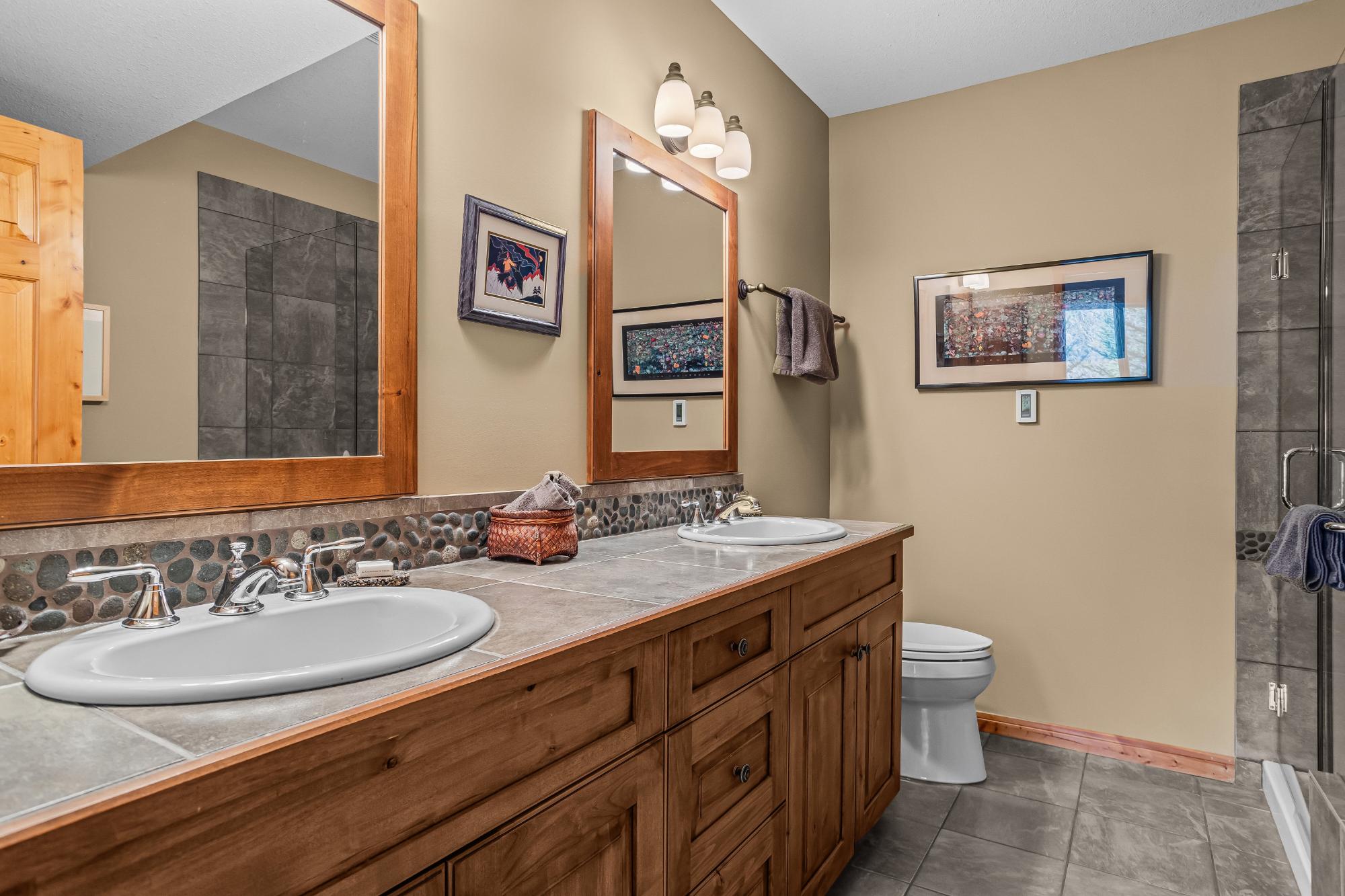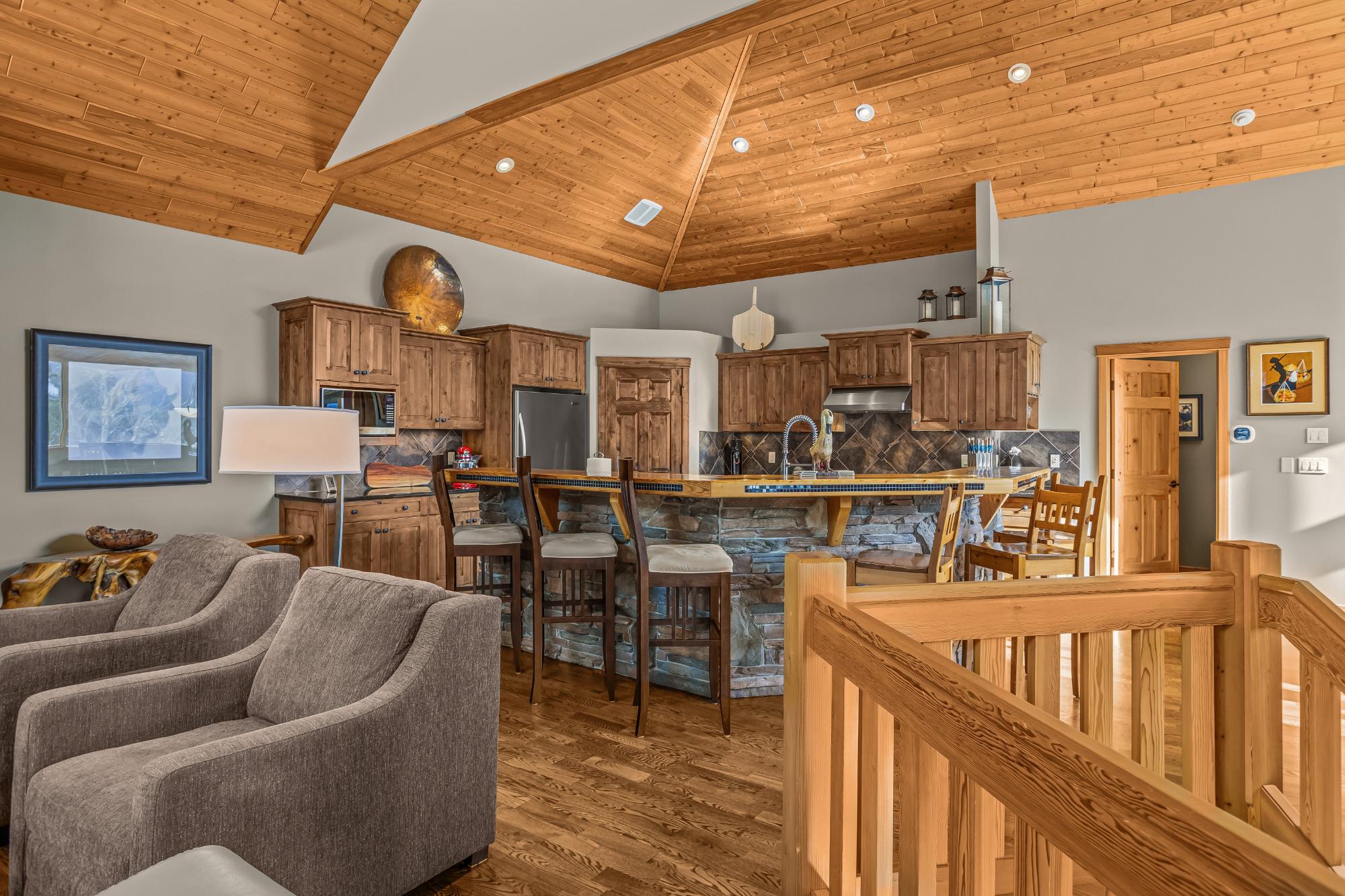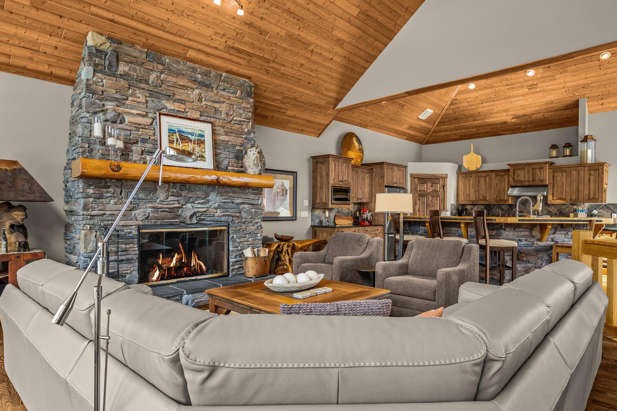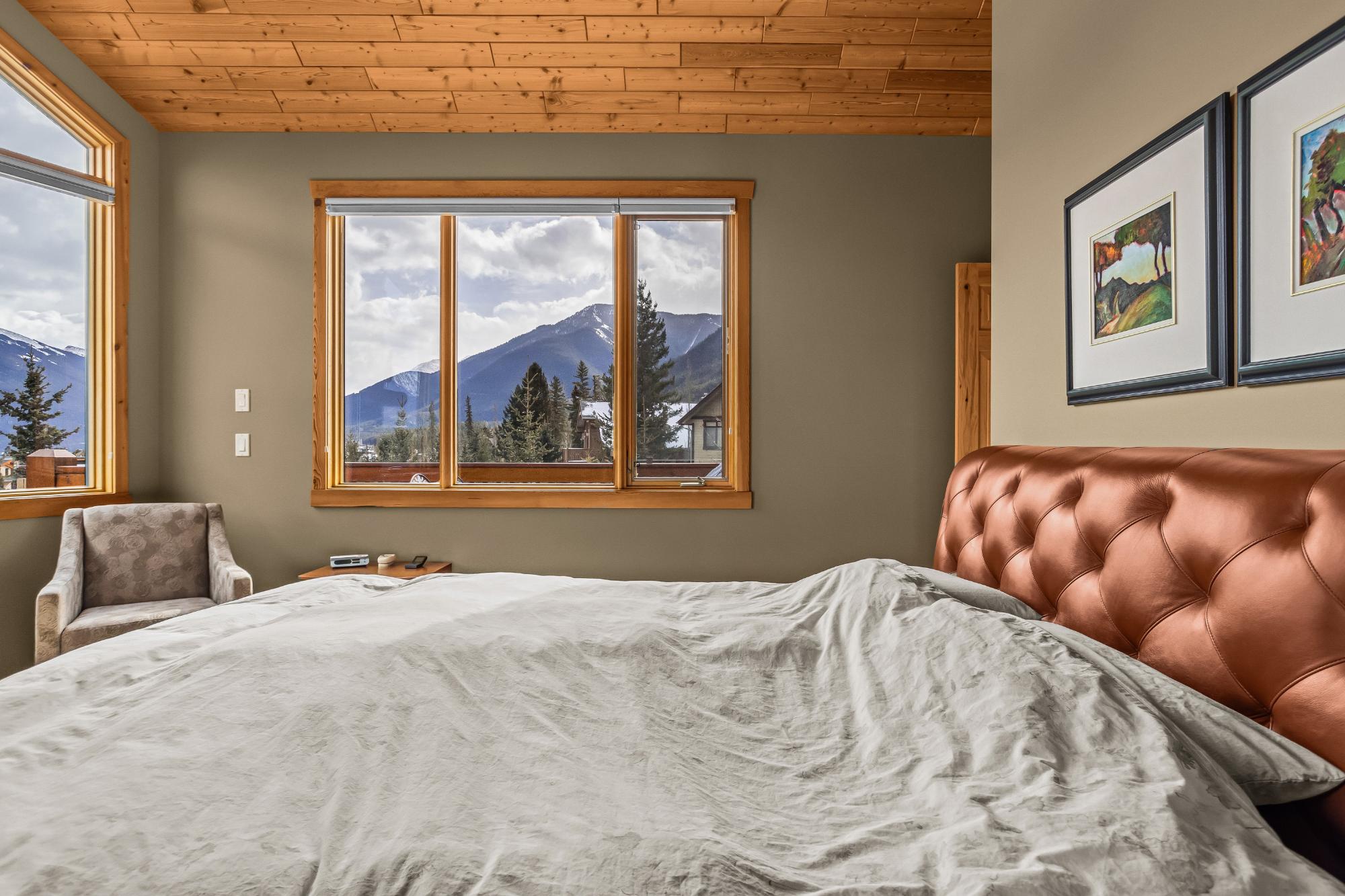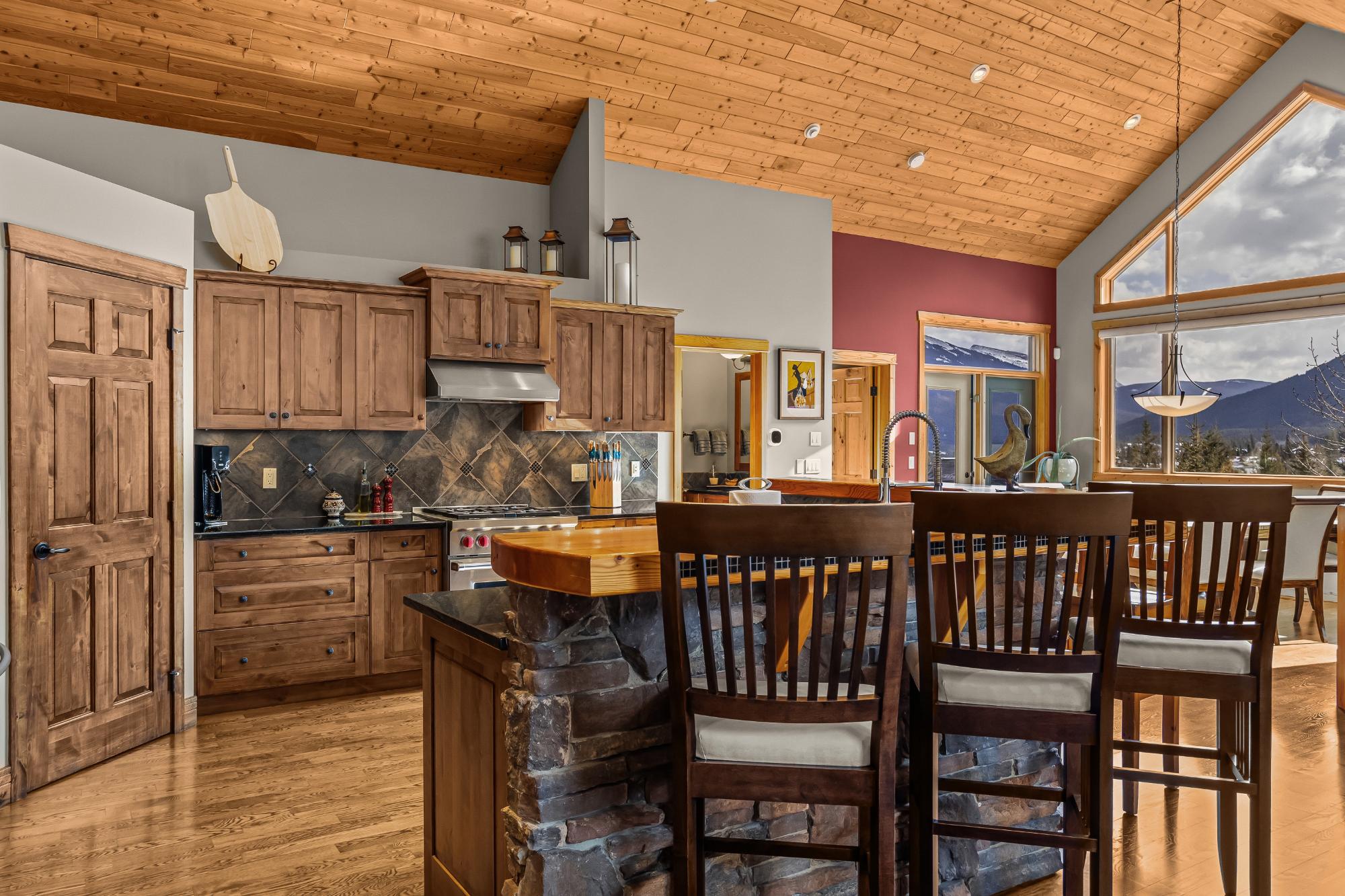 Set within the exclusive enclave of Hubman Landing, this 5-bedroom, 5-bathroom home offers over 4,100 sq ft of living space, positioned to capture exceptional views from nearly every window. Elevated above the surrounding trees and backing onto privacy, multiple outdoor patios and balconies fully embrace the natural setting. The main level features vaulted ceilings and warm hardwood flooring, creating a timeless Canmore aesthetic. The kitchen is functional and inviting, opening to generous living and dining spaces that frame the mountains beyond. The primary suite is located on the main floor for true one-level living and includes a striking floor-to-ceiling fireplace. The walkout lower level provides excellent separation of space, ideal for guests, family, or multi-generational living. With five bedrooms and five bathrooms in total, the layout offers flexibility without compromising privacy. A tranquil backyard with a patio and fire pit, surrounded by mature trees.