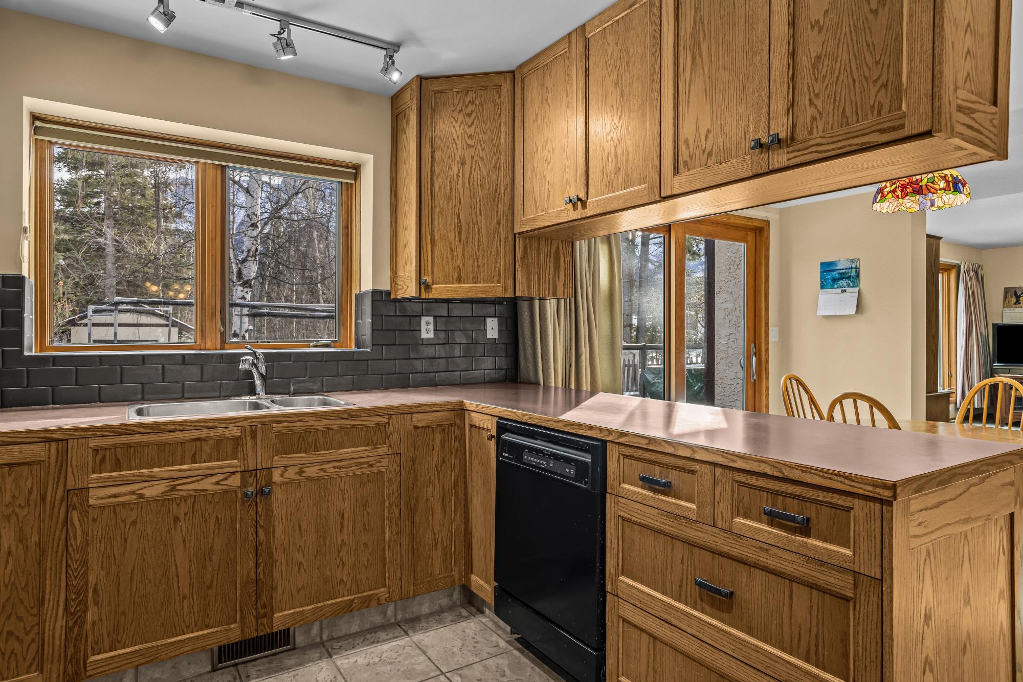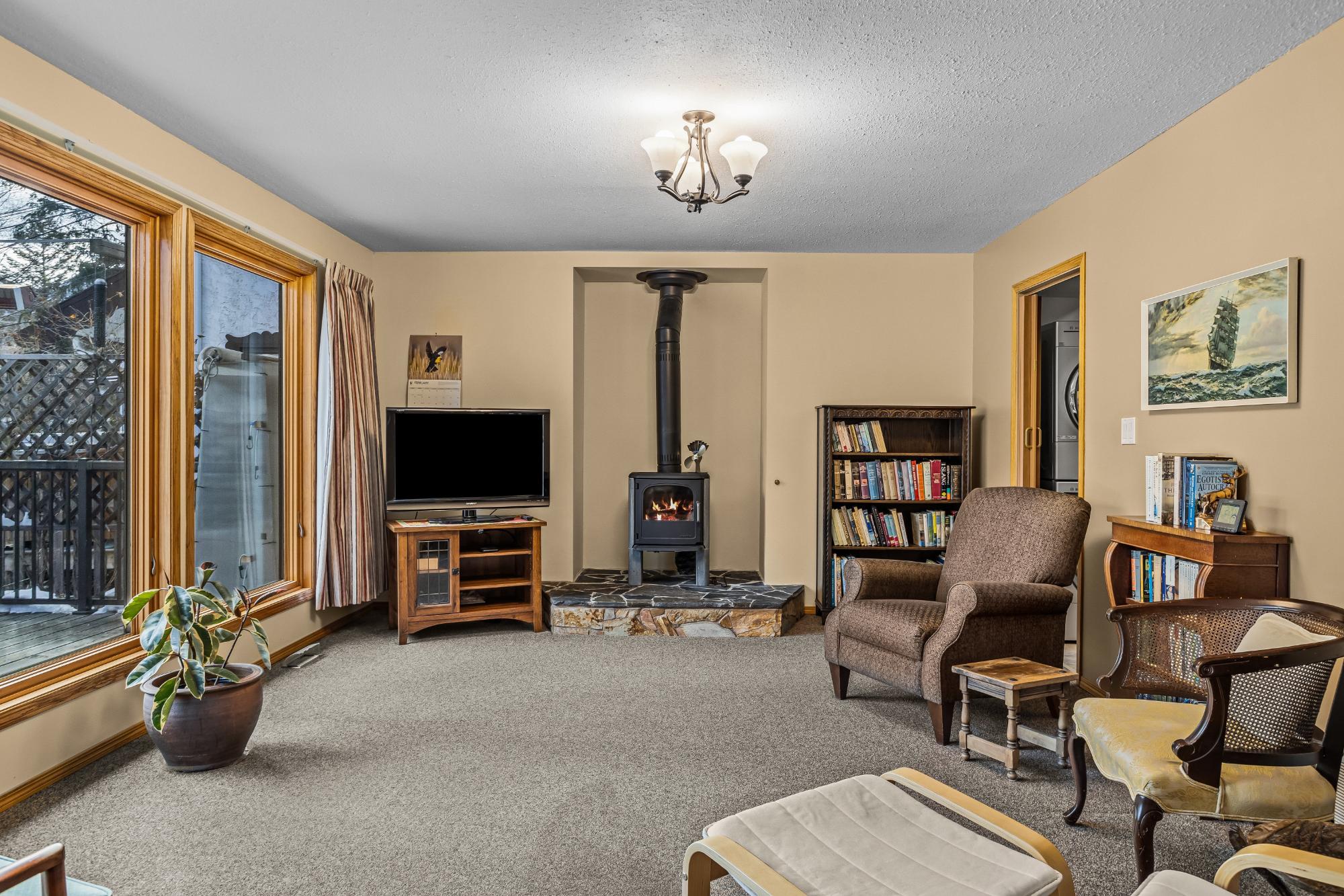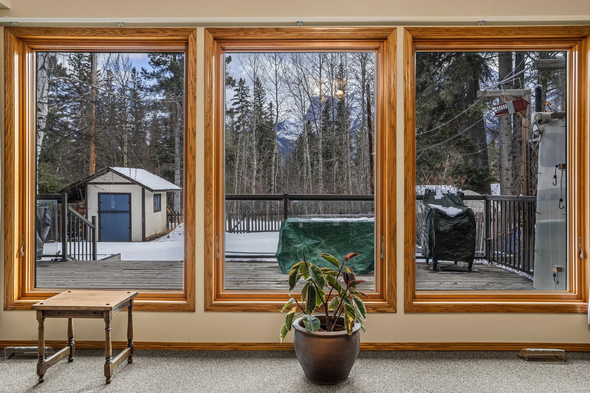 This 4 bed, 4 bath home has the perfect floorplan for your family and guests. Boasting a generous kitchen, two dining areas, and two large living rooms on the main level this very flexible floorplan has space for everyone. The bright living level extends outdoors onto the huge 370 sqft south-facing deck to enjoy the plentiful sun. Two large primary bedrooms with mountain views and ensuites occupy the upper level, along with 2 more bedrooms, a 5 piece family bathroom and a home office. Keep your cars and mountain toys safe in the heated double garage, with parking for up to 4 more on the driveway. The back yard also benefits from rear lane access. All this within walking distance of the Bow River trails, Arts Place, Elevation Place, and the heart of Canmore on Main Street. This delightful home has seen many quality upgrades over the years including replacement windows, rubber roof, on-demand hot water & high efficiency furnace. A fantastic opportunity in a sought-after neighborhood