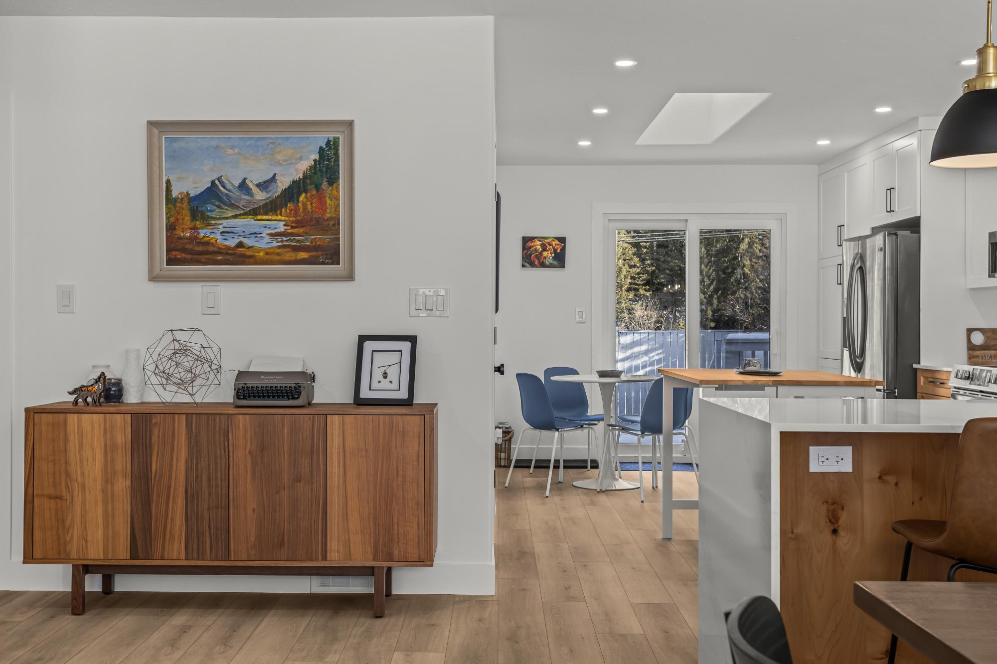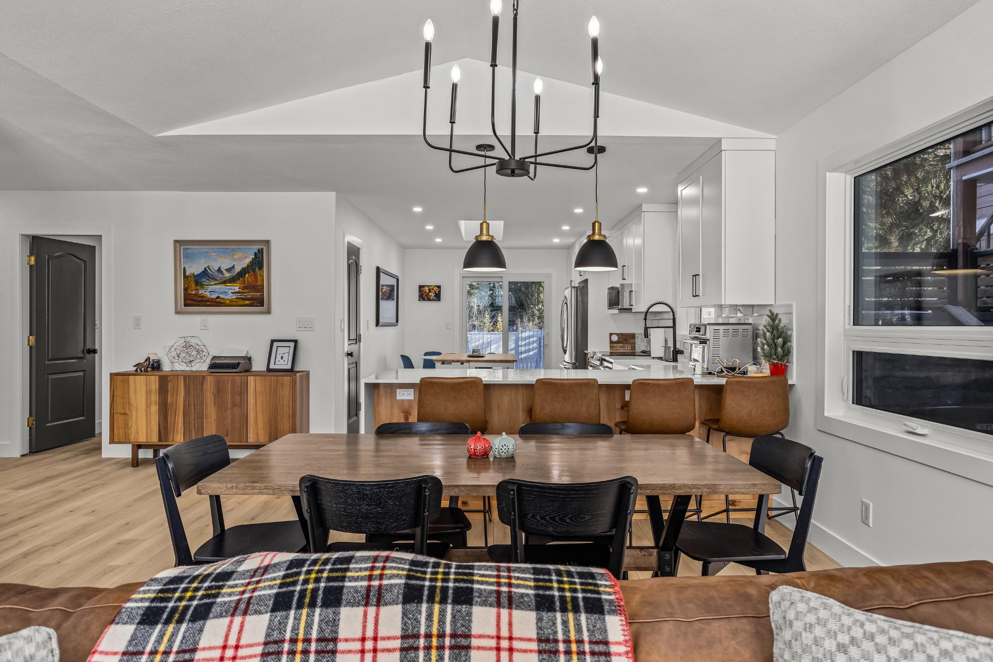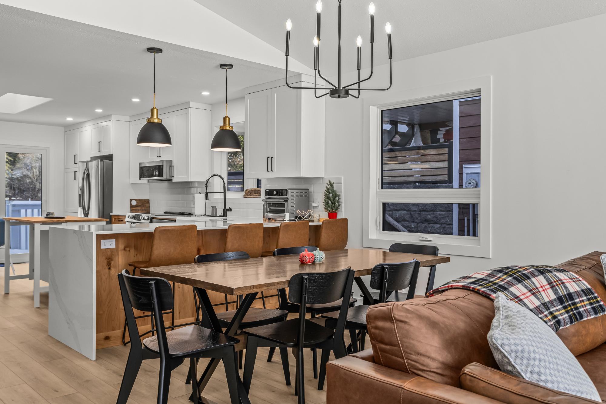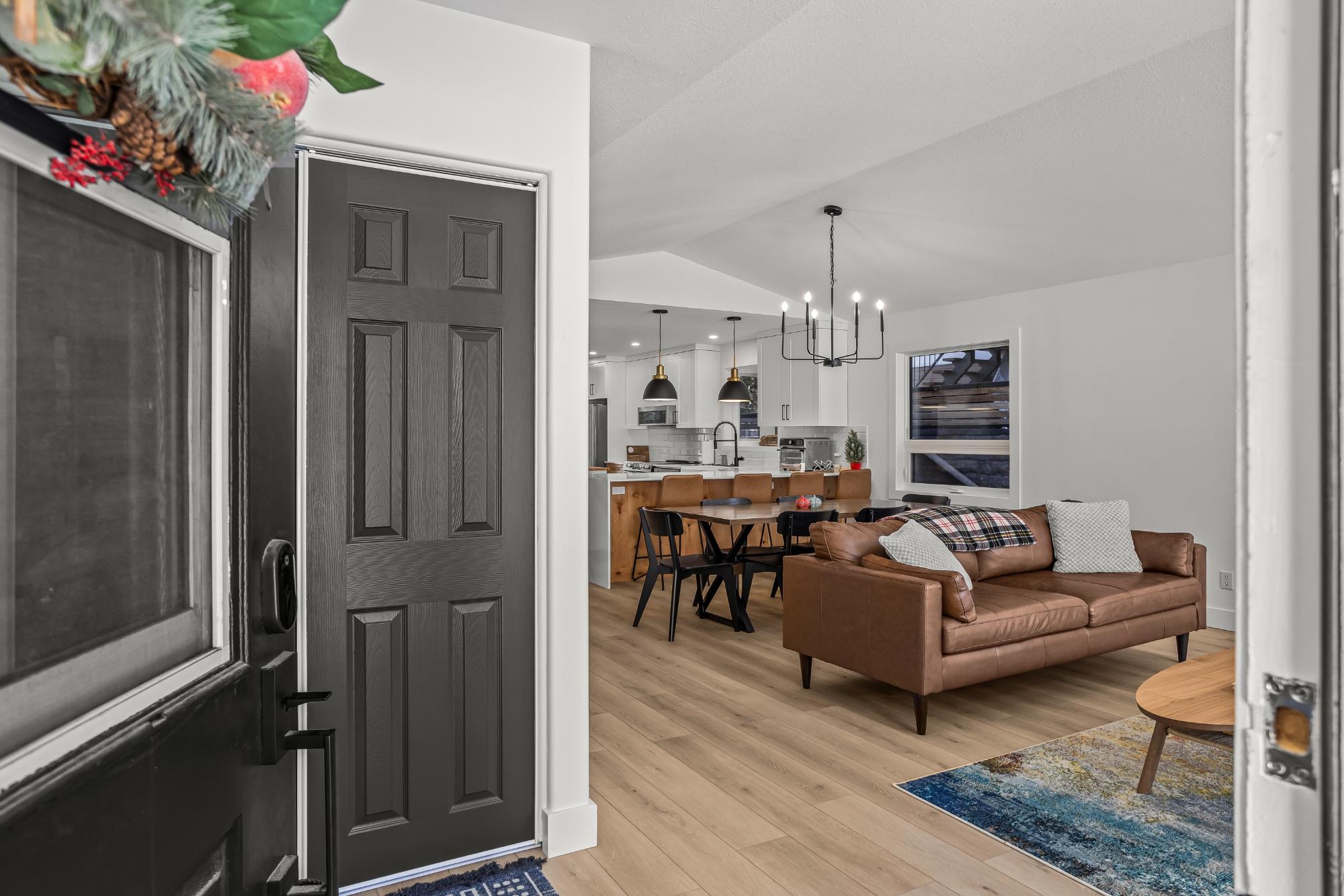 Welcome to this beautifully renovated 4 bedroom + den, 3 bathroom home with a double car garage, and fenced yard in the sought-after, family-friendly Cougar Creek neighborhood, just steps to parks and trails, and minutes to downtown. Fully gutted and thoughtfully redesigned in 2023 including new windows and roof, it offers a bright open-concept main floor and convenient single-level living. The living room bay window frames South Mountain views, while kitchen sliding doors open to a fenced yard with no rear neighbors and stunning northeast vistas. The showpiece kitchen features waterfall countertops, new appliances, a stylish island, modern lighting, and luxury vinyl plank flooring throughout. Renovated baths include heated floors. Enjoy the large deck for seamless indoor/outdoor living. Most furnishings included. The lower level includes a bedroom, den, full bath and large rec room providing a versatile space for guests, games, extended family, home office, etc. Turn Key.