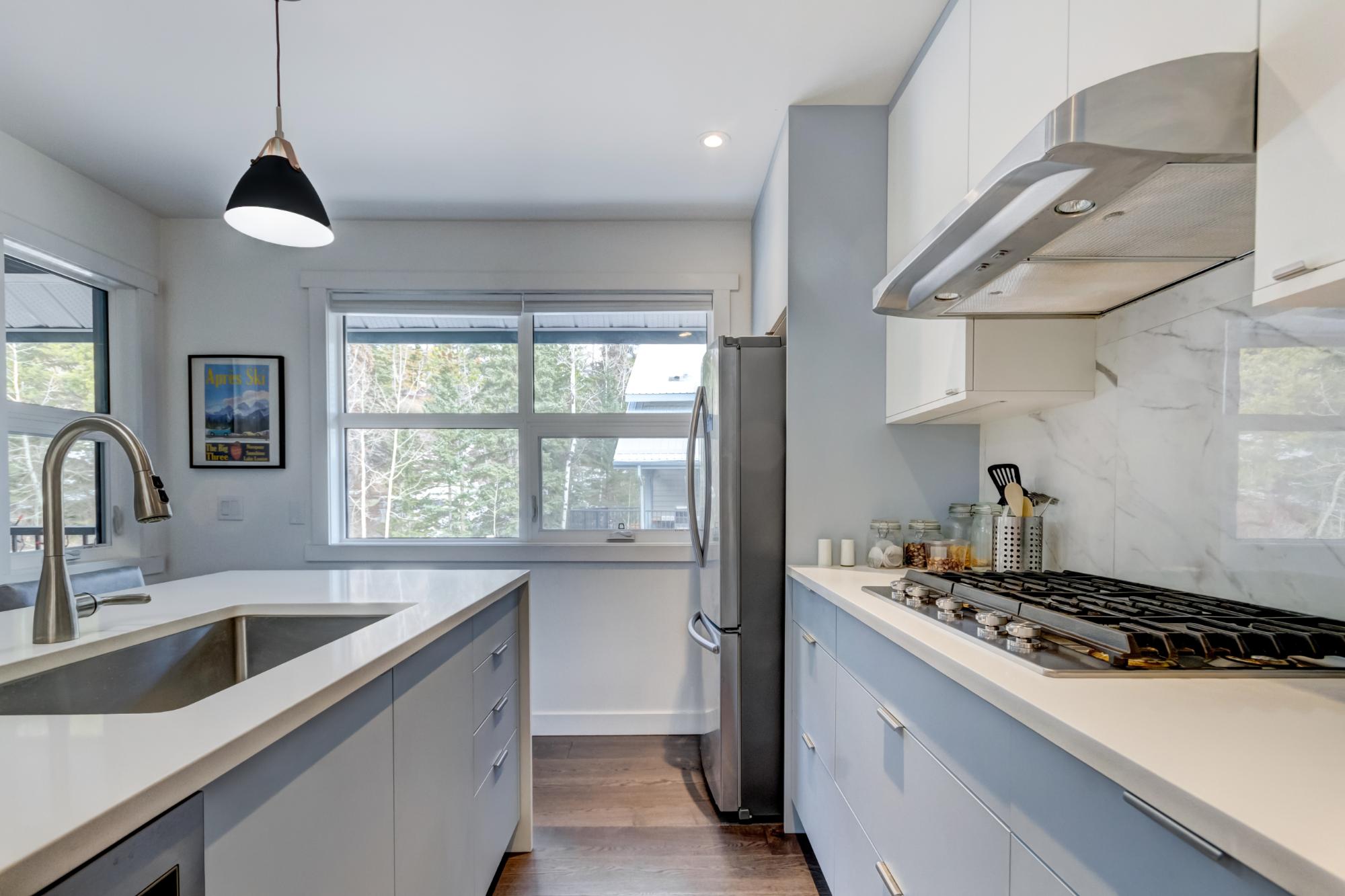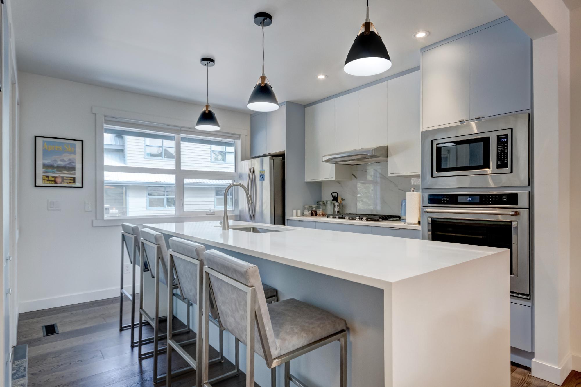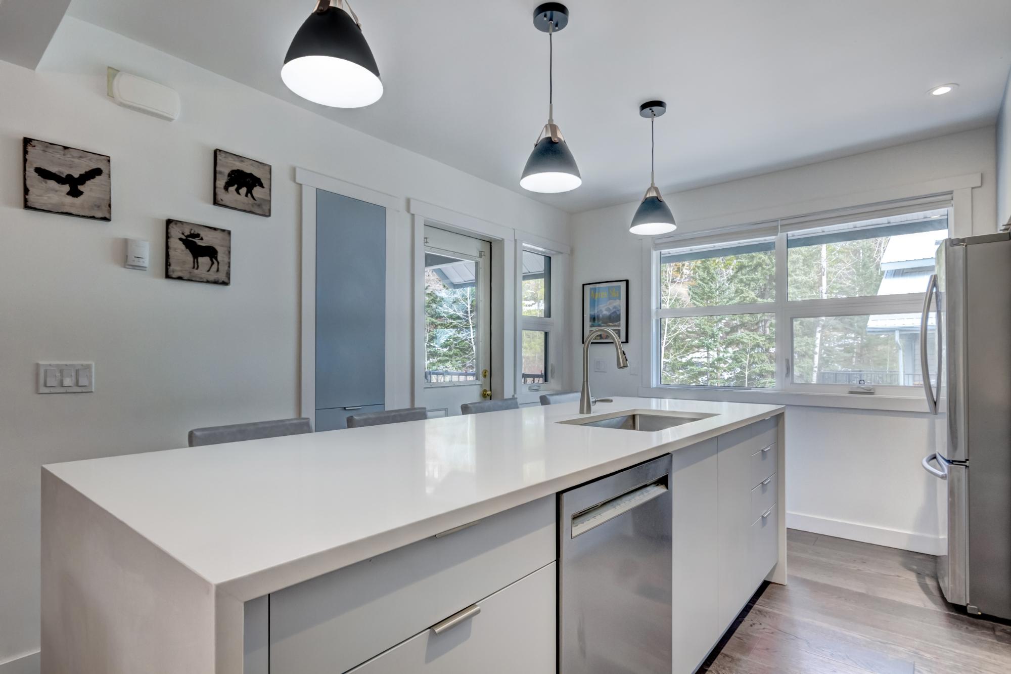 Enjoy unobstructed mountain views from both the front and back of this well designed townhouse, offering three bedrooms and two and a half bathrooms across a functional, light filled floorplan. The main level features an updated open concept kitchen, dining and living area highlighted by vaulted ceilings and expansive windows that flood the space with natural light and showcase the surrounding scenery. Step outside to a spacious deck off the living room, plus a second deck on the opposite side, perfect for enjoying sun at different times of day. Upstairs, two generously sized bedrooms each offer their own bathroom and ample closet space, creating comfortable private retreats. The lower level provides a third bedroom or flexible rec room, along with abundant storage. Located in a well managed complex on the sunny side of the valley, this home offers a desirable lifestyle with easy access to nearby hiking and biking trails, making it ideal for full time living or a mountain getaway.