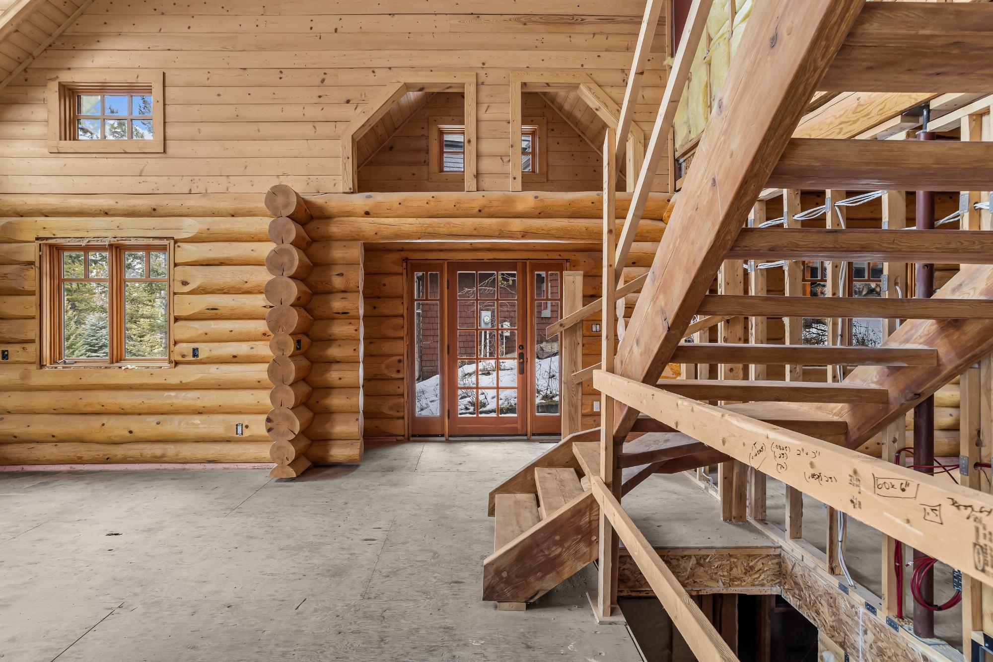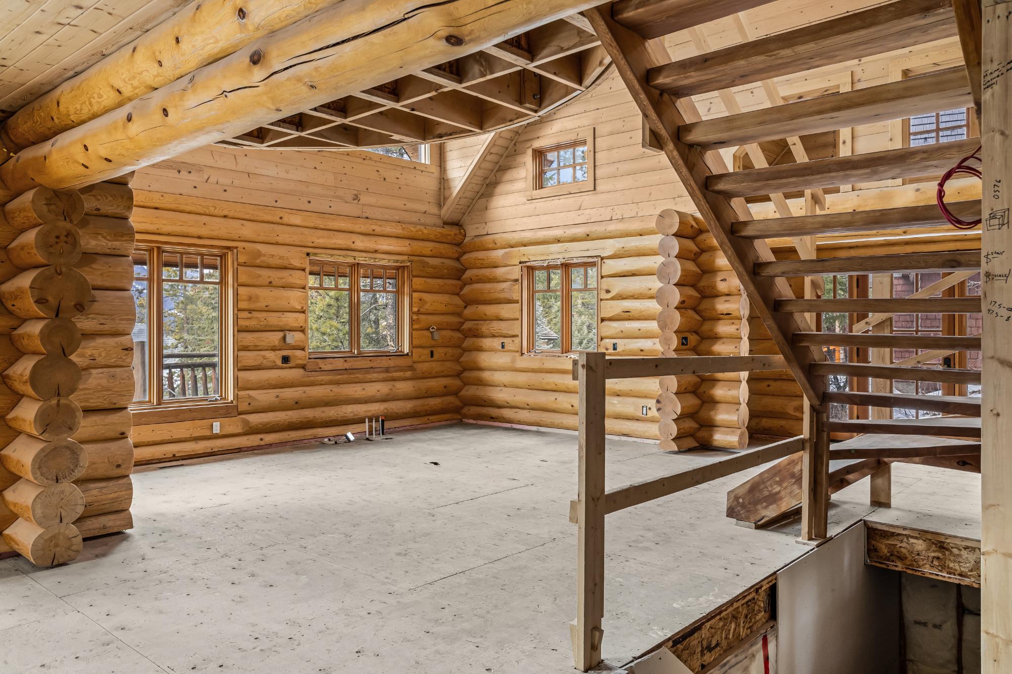 An exceptional opportunity in Silvertip, this classic log home offers +2500 of living space and is mid-transformation with major system upgrades already completed. With its vaulted ceilings and open-concept design, the main level features a spacious living room centered around a wood-burning fireplace and a striking wall of windows that fill the home with natural light while showcasing beautiful mountain views. The adjoining kitchen and dining area offer direct access to both front and rear decks. Some fixtures are currently not installed, providing an opportunity for the next owner to select finishes and complete the home to their personal style. The upper level includes two bedrooms, a loft area, full bathroom, and a second wood-burning fireplace, along with access to a sunny deck. The lower level offers a family room, laundry area, and single car garage. Dont miss the opportunity to make this home your own.
