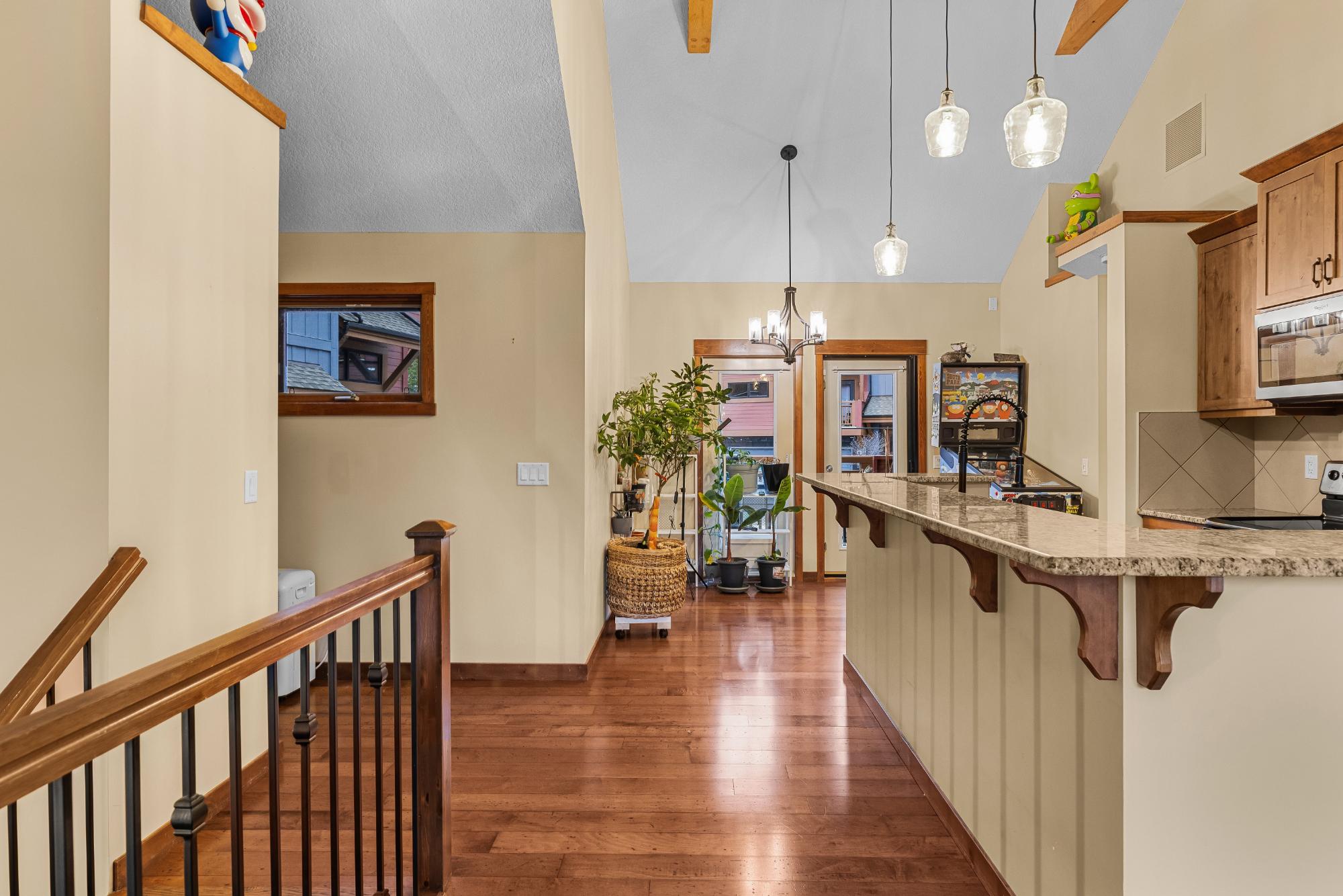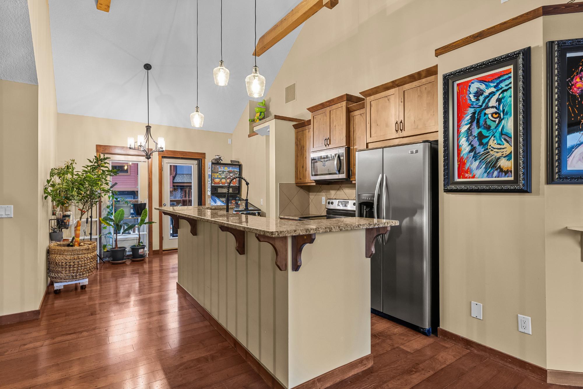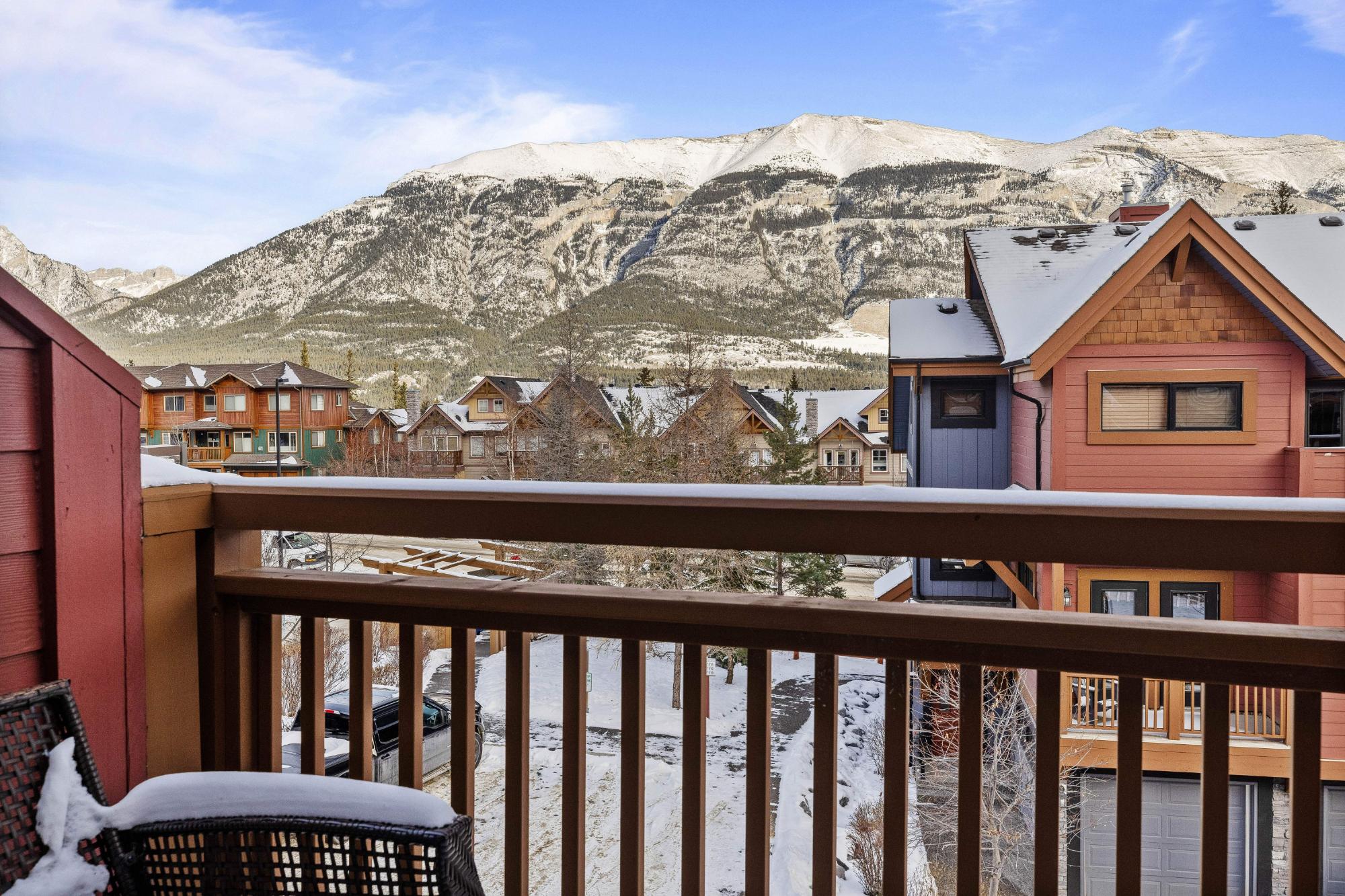 This bright top-floor, end-unit townhouse offers two bedrooms and two bathrooms with mountain views, high ceilings, and no neighbours above. Windows flood the space with natural light, creating an airy feel throughout. The living area features a cozy fireplace, while two private balconies, one off the dining area and one off the primary bedroom, offer the perfect spots for morning coffee and unwinding in the evening with mountain views. A single-car garage plus driveway parking adds everyday convenience. Ideally located just down the street from the new Gateway at Three Sisters commercial district, you’ll have easy access to shopping, groceries, and more.